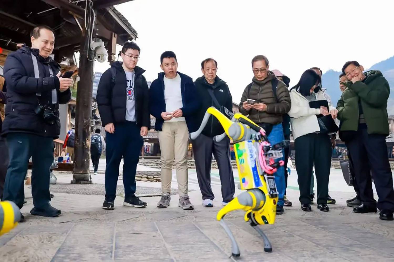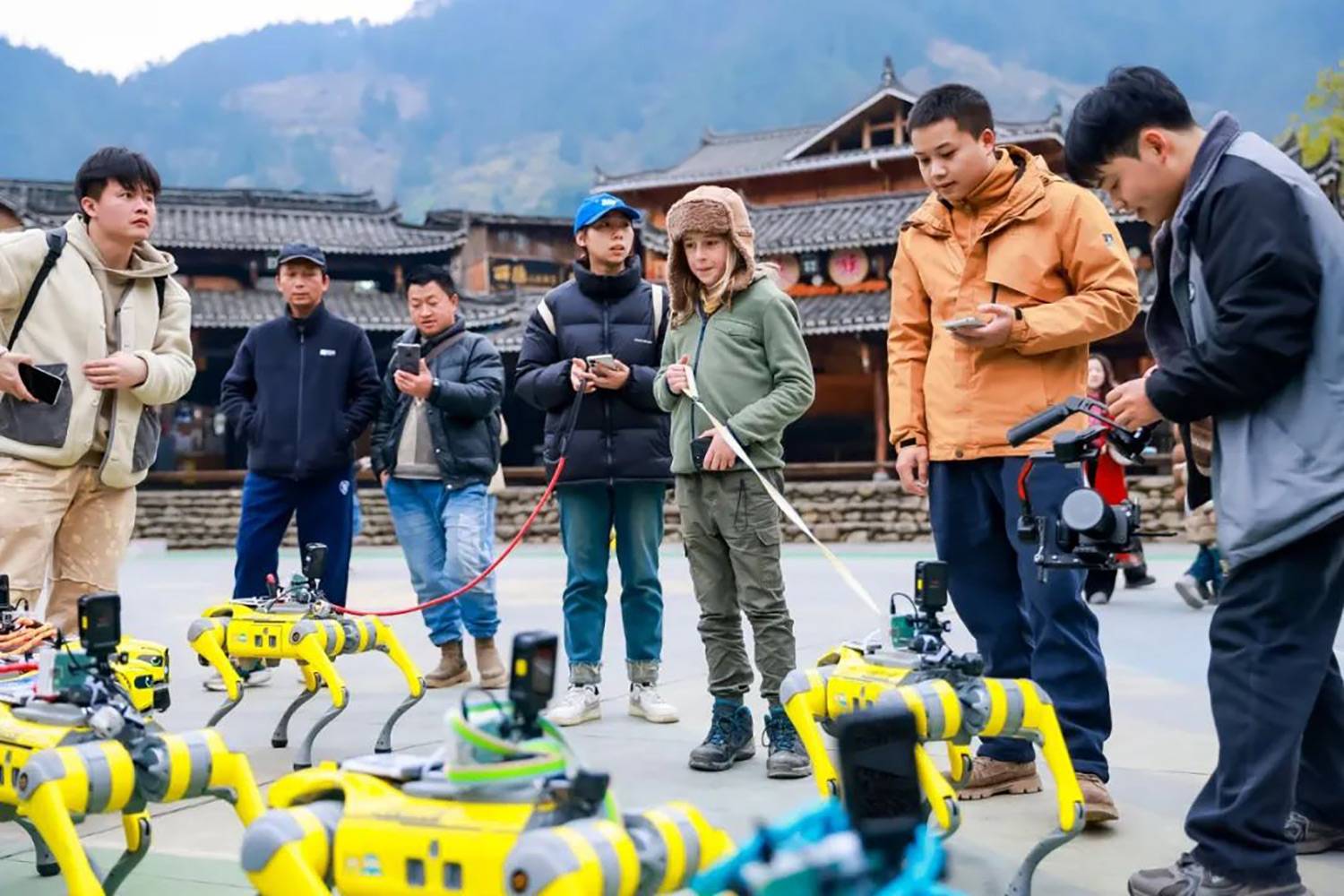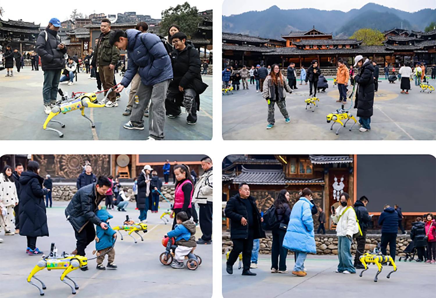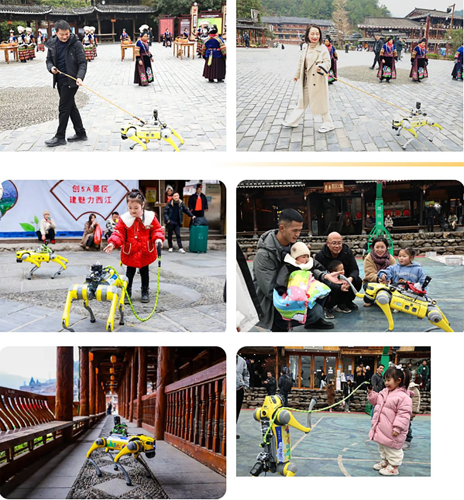 贵州西江千户苗寨景区适时地把握了科技与少数民族文化交融的宝贵时机,力求为游客创造全新独特的旅游体验,也为景区注入浓厚热烈的科技氛围。2025年1月2日,与马蜂窝旅游合作举办的 “人工智能 AI 机器狗互动体验” 展示活动在西江千户苗寨景区精彩启幕,吸引了众多游客前来参与体验。