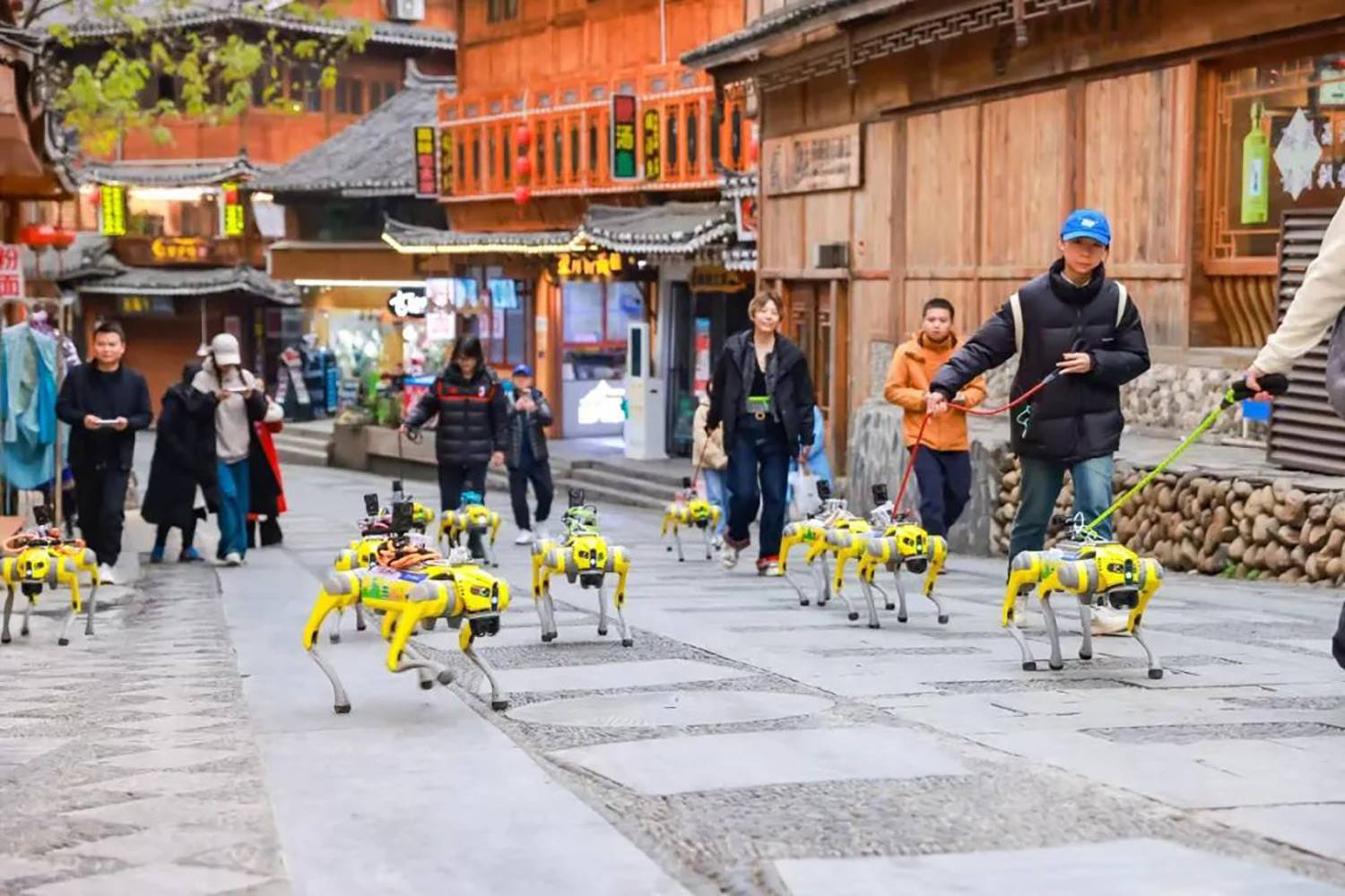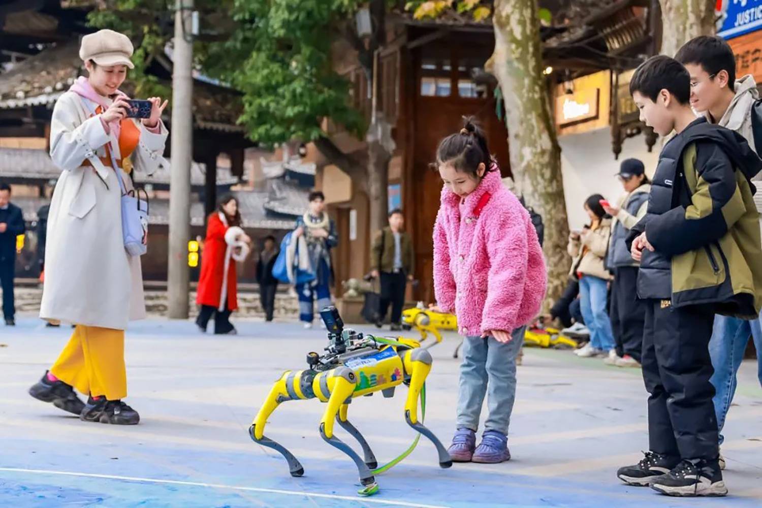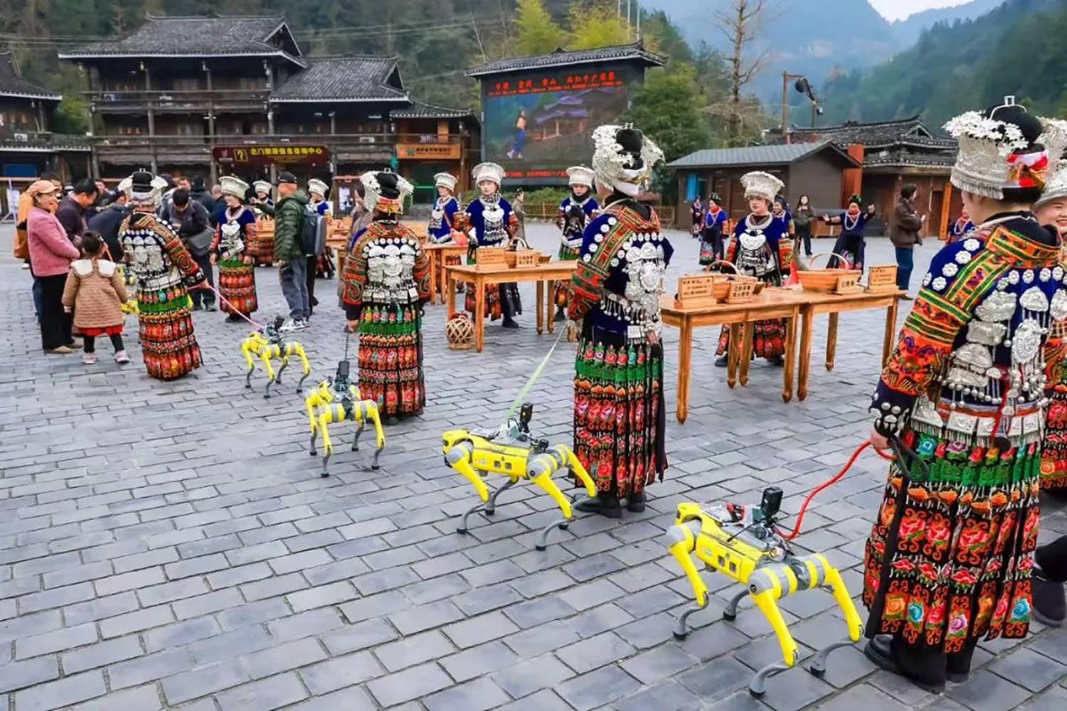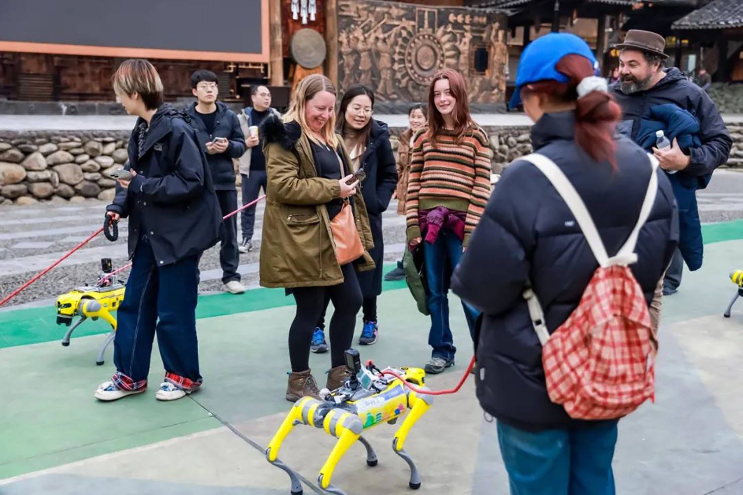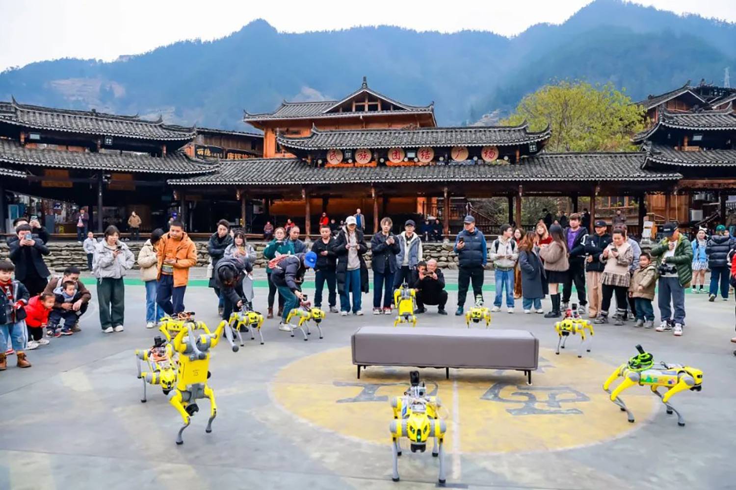 贵州西江千户苗寨景区适时地把握了科技与少数民族文化交融的宝贵时机,力求为游客创造全新独特的旅游体验,也为景区注入浓厚热烈的科技氛围。2025年1月2日,与马蜂窝旅游合作举办的 “人工智能 AI 机器狗互动体验” 展示活动在西江千户苗寨景区精彩启幕,吸引了众多游客前来参与体验。