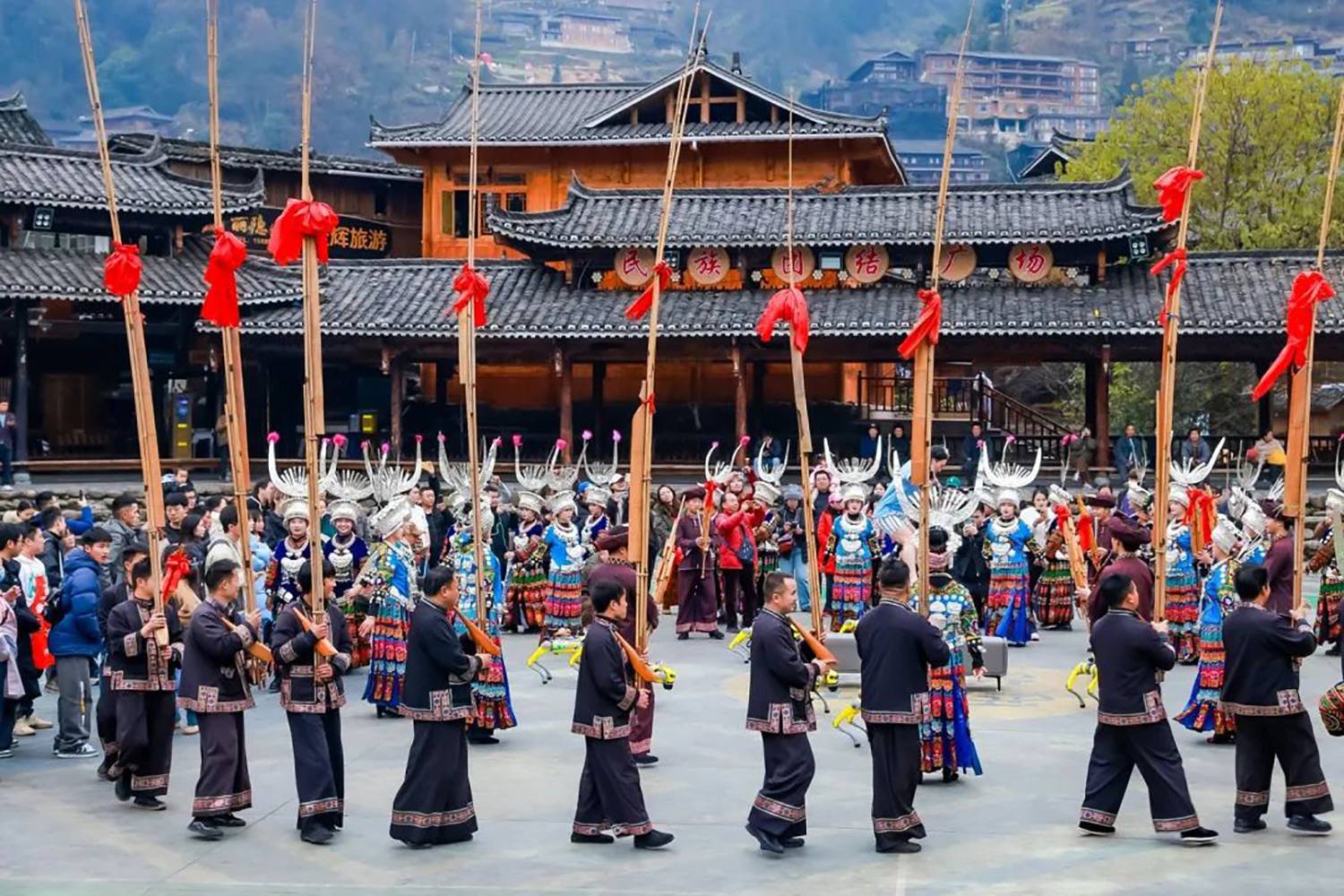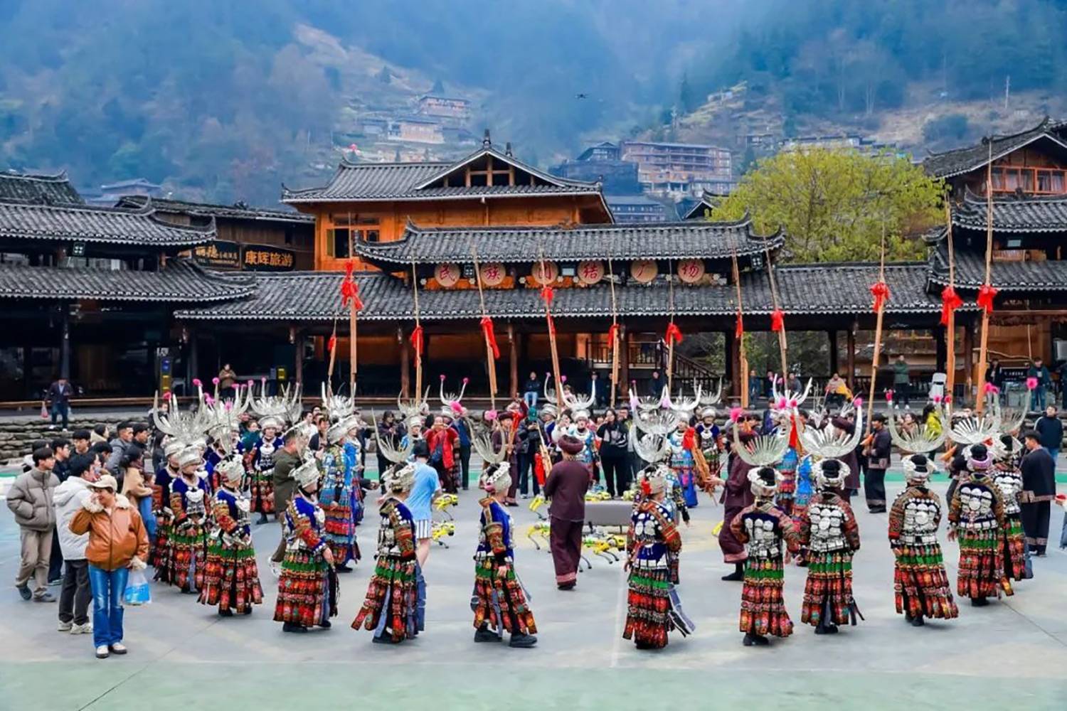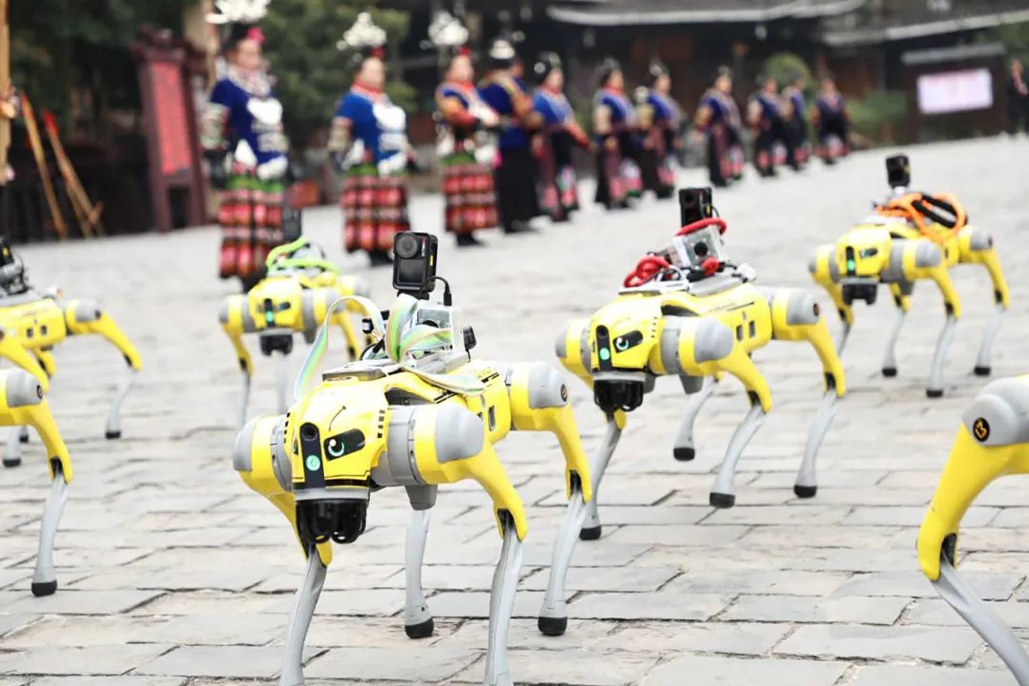 芦笙场上,苗族芦笙舞蹈展演与机器狗跳舞展示更是将活动推向了高潮,悠扬的音乐、热情的舞蹈和科技感十足的机器狗,共同组成了一场别开生面的视觉盛宴。在西江千户苗寨优美的风景下,游客们不仅了解了大量苗族文化知识,也感受到了AI人工智能技术的智能与强大。