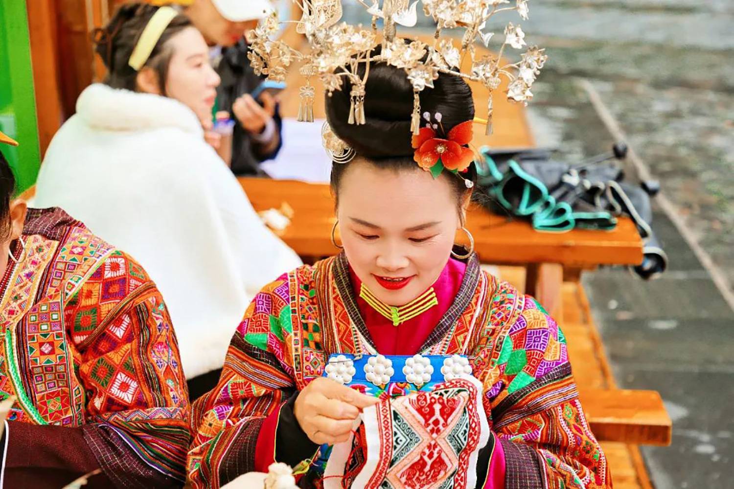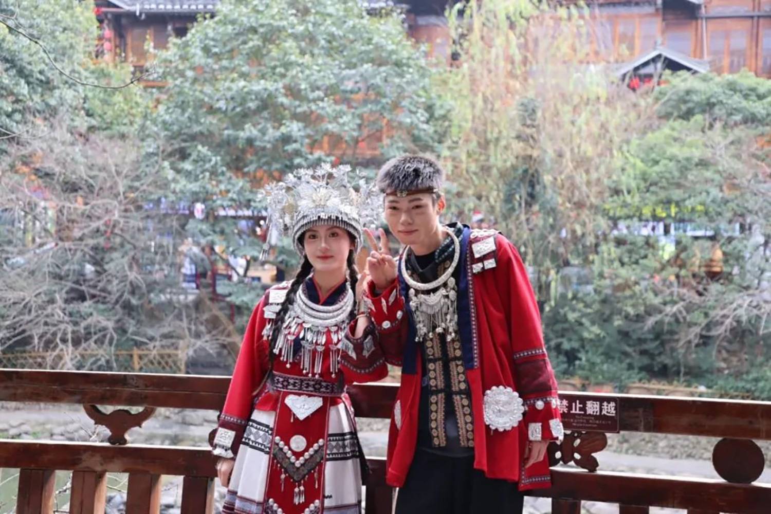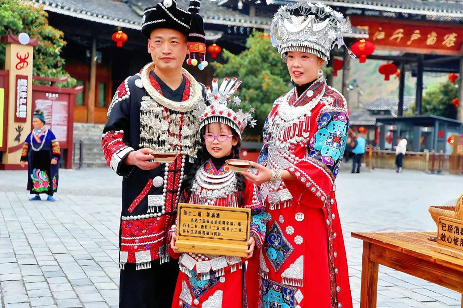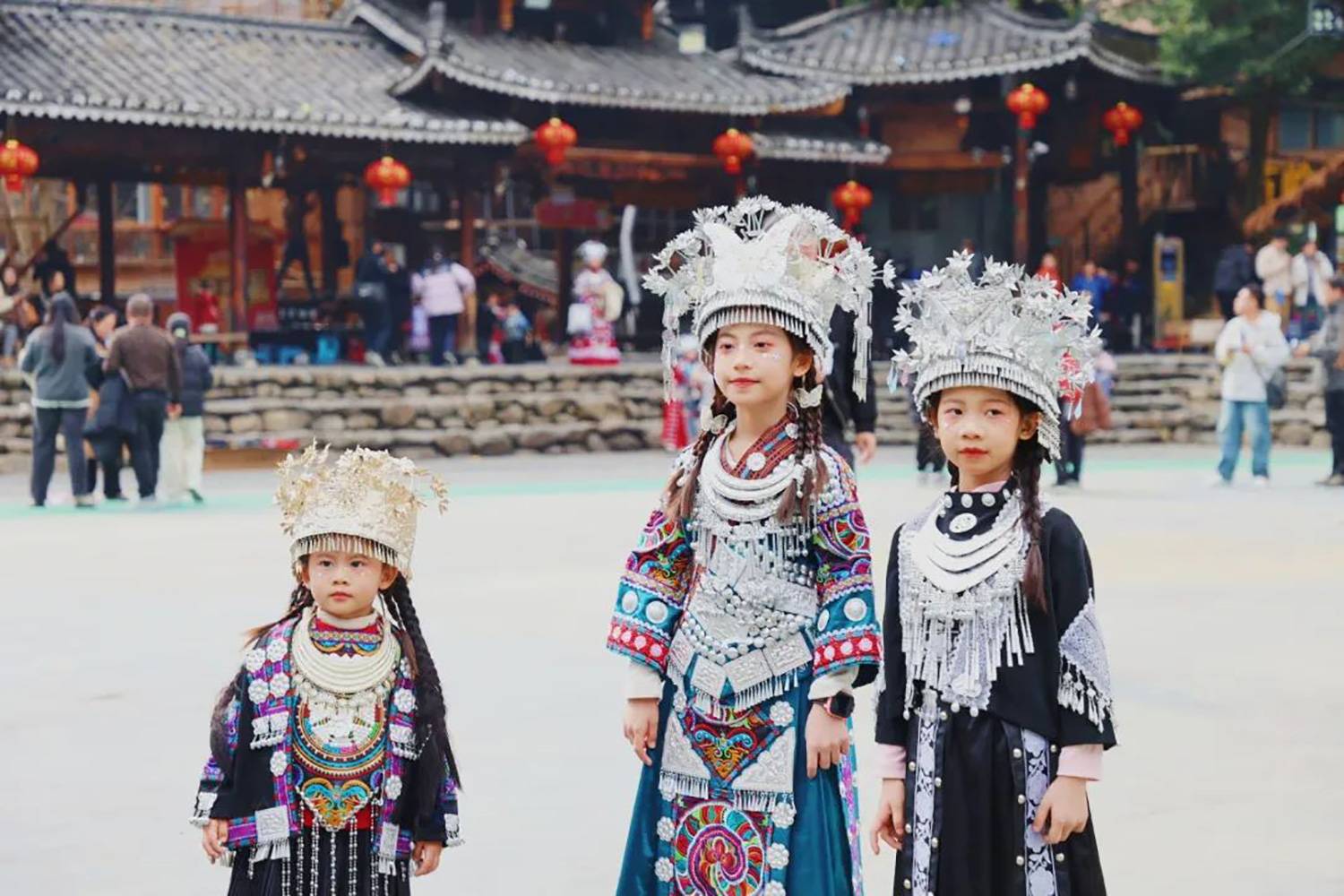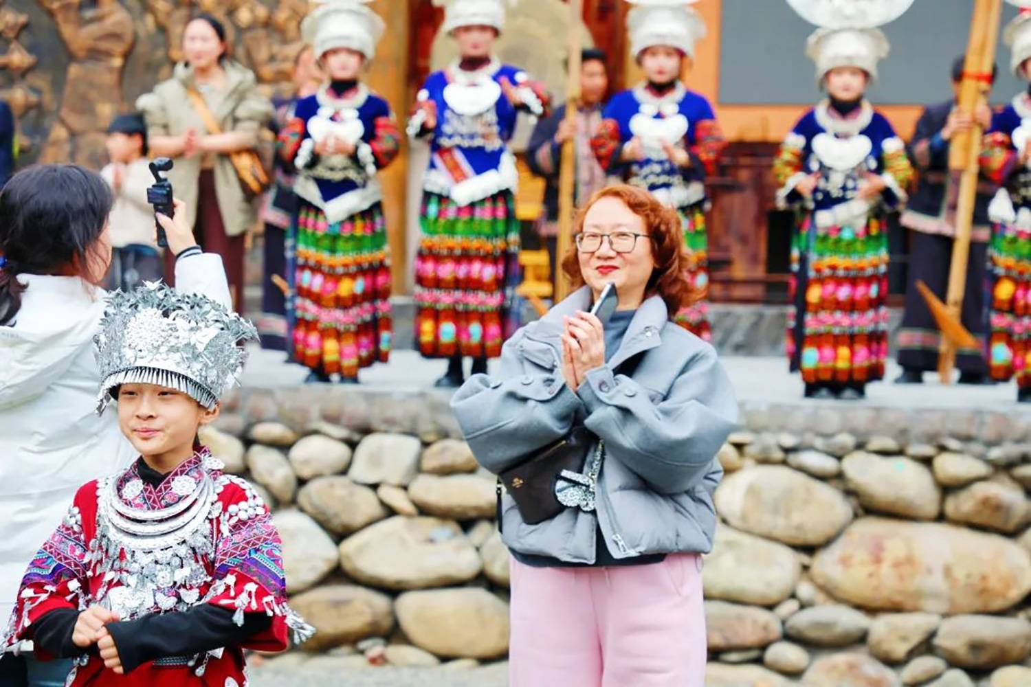 大年初一,景区内呈现出一片热闹非凡的景象。苗族同胞身着盛装,手捧美酒,热情的迎接八方游客。芦笙场上,苗族小伙和姑娘们载歌载舞,游客们欢声笑语交织一片。与此同时,非遗体验区人气爆棚,游客踊跃参与苗绣、蜡染等非遗项目,亲手实践,领略苗族非遗文化的博大精深 。整个西江千户苗寨景区沉浸在欢乐祥和的氛围中,游客们穿梭其间,感受着浓郁的民族风情,成为蛇年新春一道亮丽的风景线。