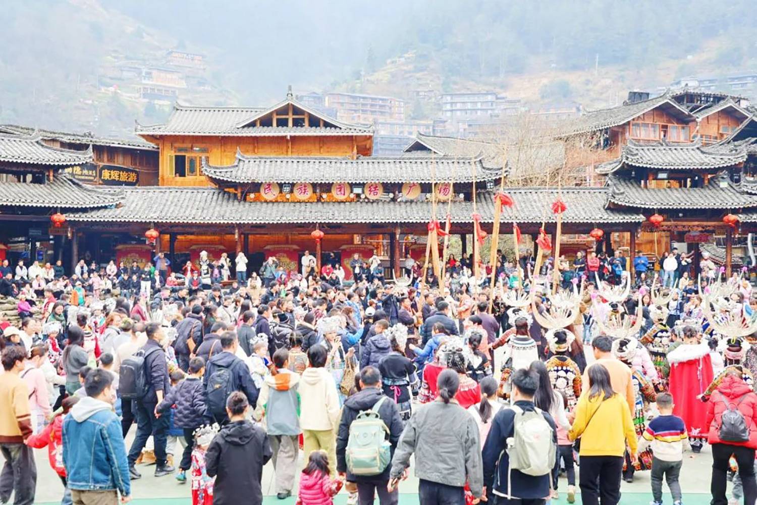 西江千户苗寨大年初一喜迎开门红,共贺新春佳节