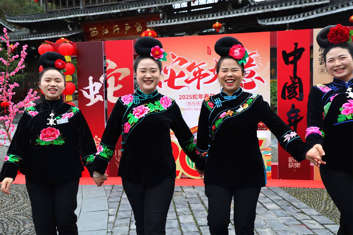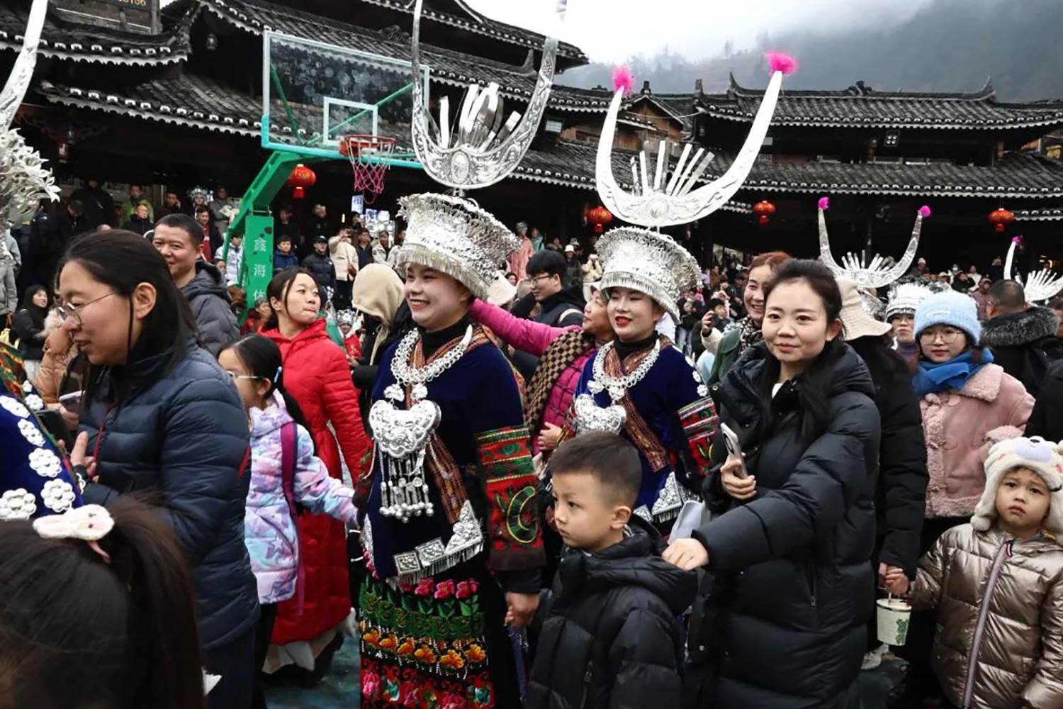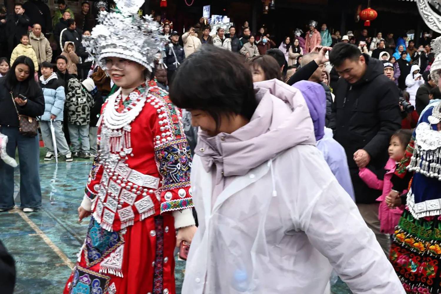 在这春节的喜庆氛围中,芦笙场的每一天都如同藏着盲盒般,充满了不期而遇的惊喜。游客们的欢声笑语此起彼伏,交织成一曲欢乐的乐章,他们尽情地沉浸其中,用心感受着深厚的春节传统风俗,享受着这充满年味的美好时光 。