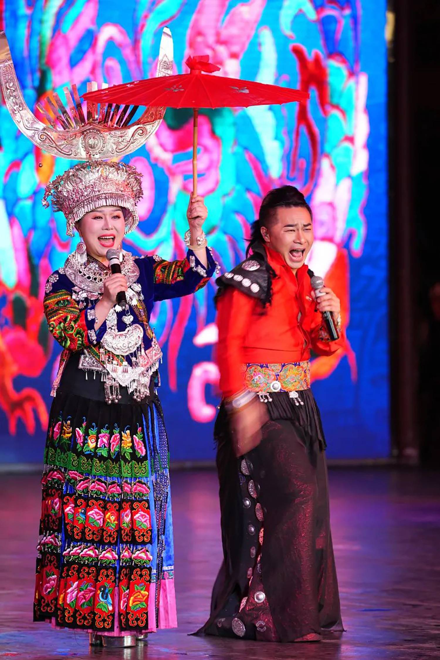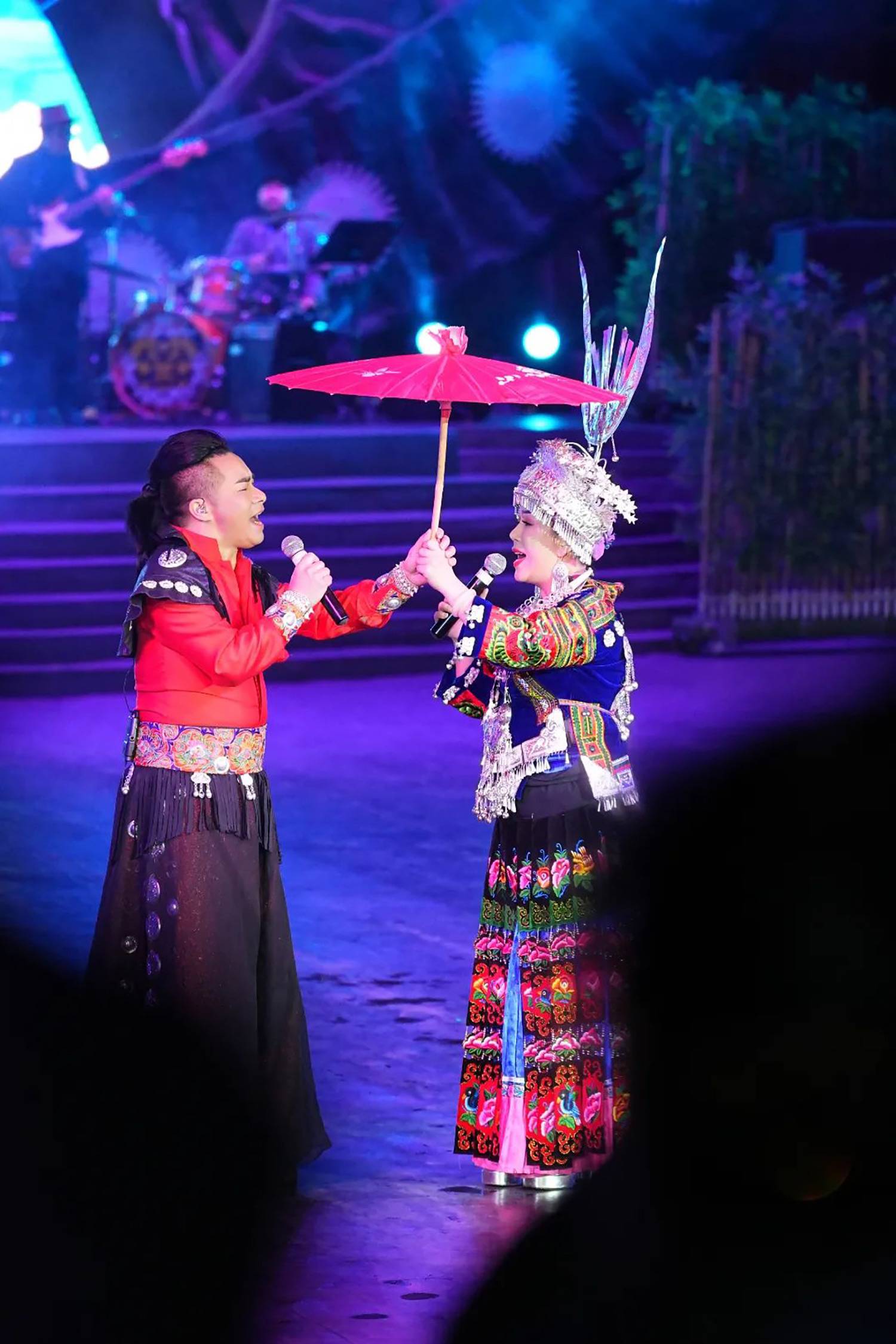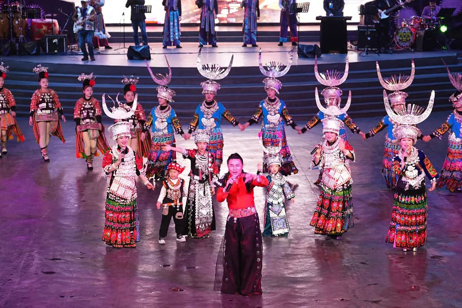 美丽西江“蝶·苗韵”演唱会!美丽西江“蝶·苗韵”演唱会——苗族歌王蝶当久在西江千户苗寨美丽西江表演场震撼开唱,举办专场演唱会。蝶当久凭借其极具感染力的嗓音,演绎着一首首饱含苗族风情的歌曲,吸引游客前来观看。演唱会还融入了苗族传统歌舞表演,舞者们身着华丽精美的苗族服饰,舞步轻盈灵动,用精湛的舞蹈演绎出苗族的风情画卷。