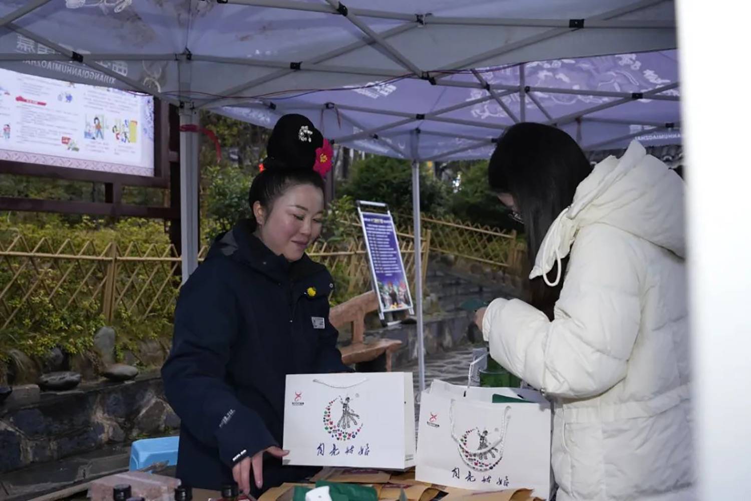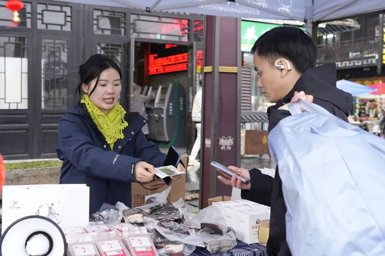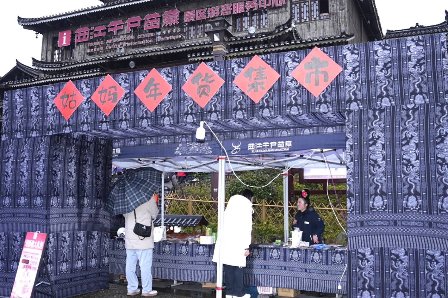 在这热闹非凡的氛围中,“姑妈年货集市” 年味满满,琳琅满目的民族特色产品,让游客们在感受年味的同时带走专属“西江记忆”。