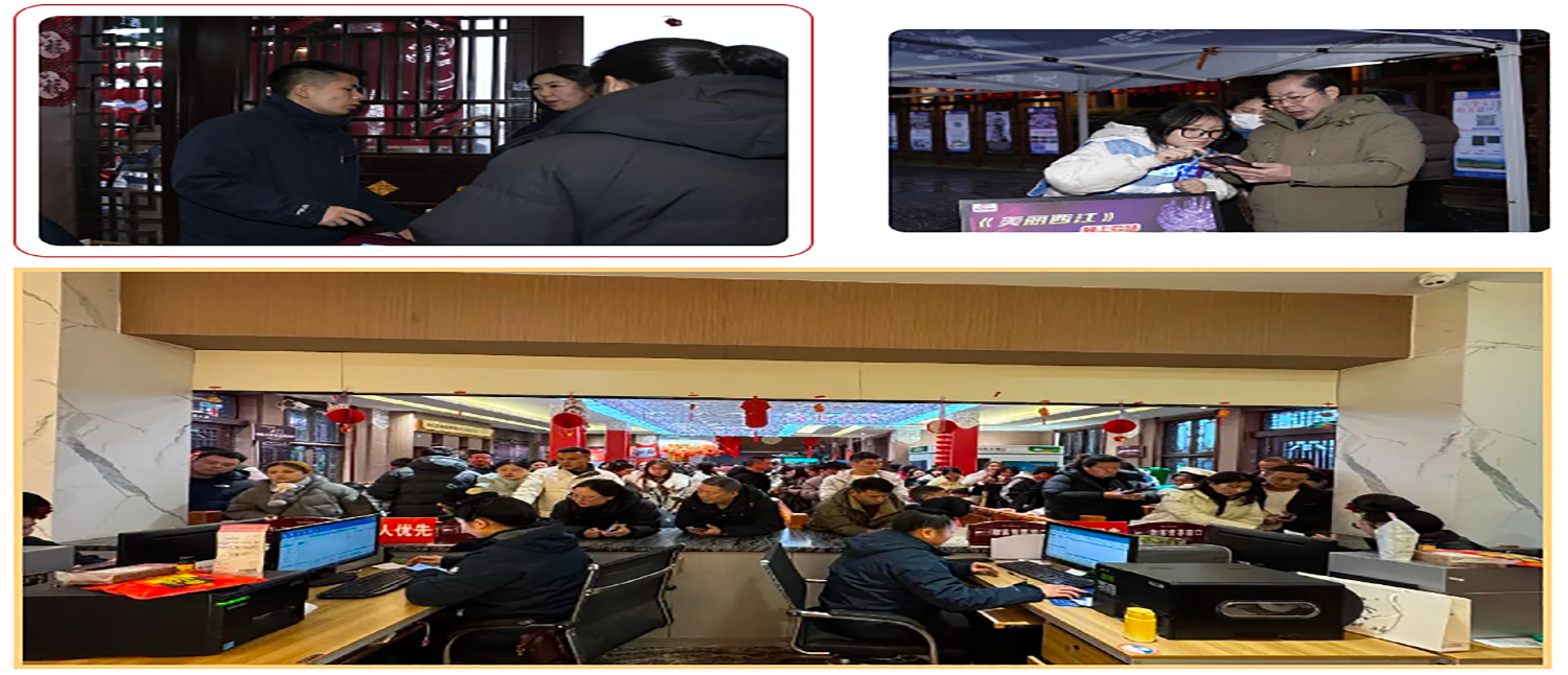春节期间,西江千户苗寨景区工作人员全员坚守岗位,检票员、管理员、秩序维护员、驾驶员、导游各司其职,默默付出。景区还提供自助寄存、热水、轮椅、拐杖等贴心服务,收获游客一致好评。漫步其间,耐心咨询、失物招领等文明行为随处可见。这些服务提升了景区形象,营造出人人讲服务、处处重质量的优质旅游环境 。
