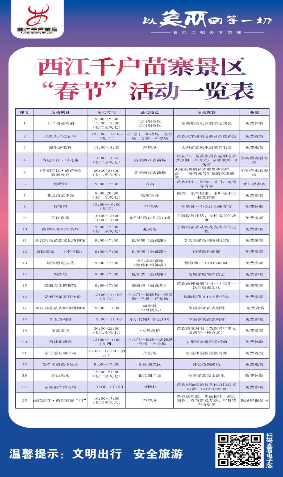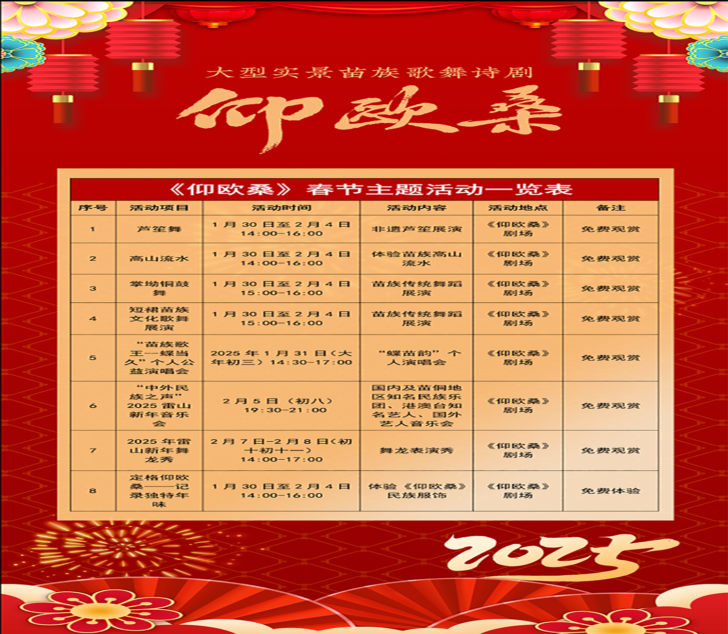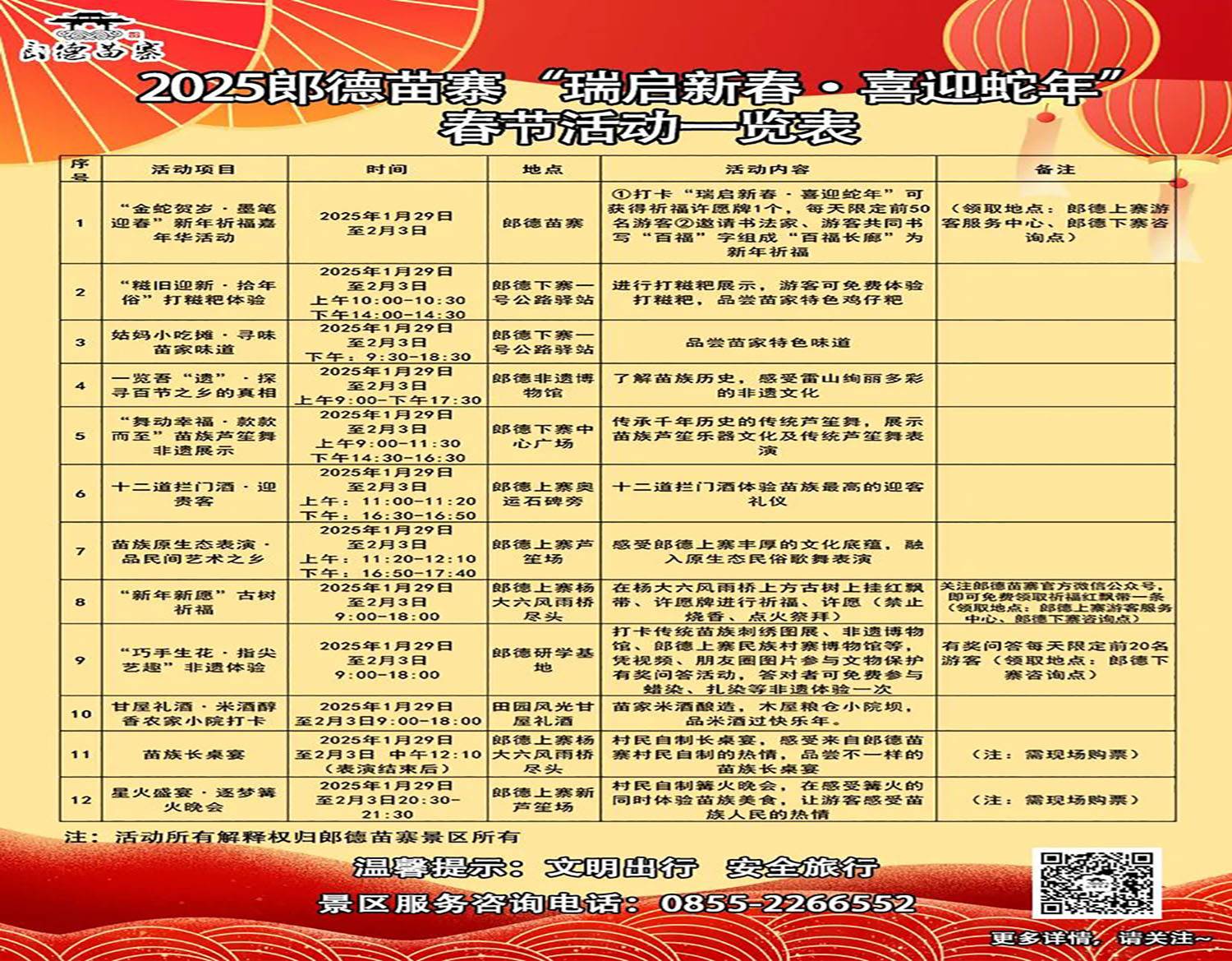— —郎德苗寨“瑞启新春·喜迎蛇年”春节活动一览表— —