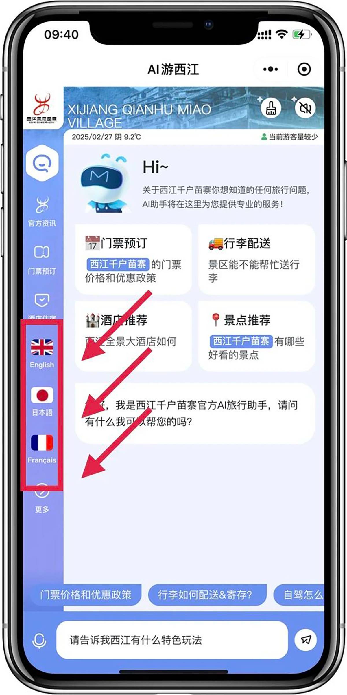 西江千户苗寨官方AI旅行助手「AI游西江」1月16日正式上线,全球游客免费使用,不管是旅行前还是旅行中,都将成为你西江旅途中的好搭子。