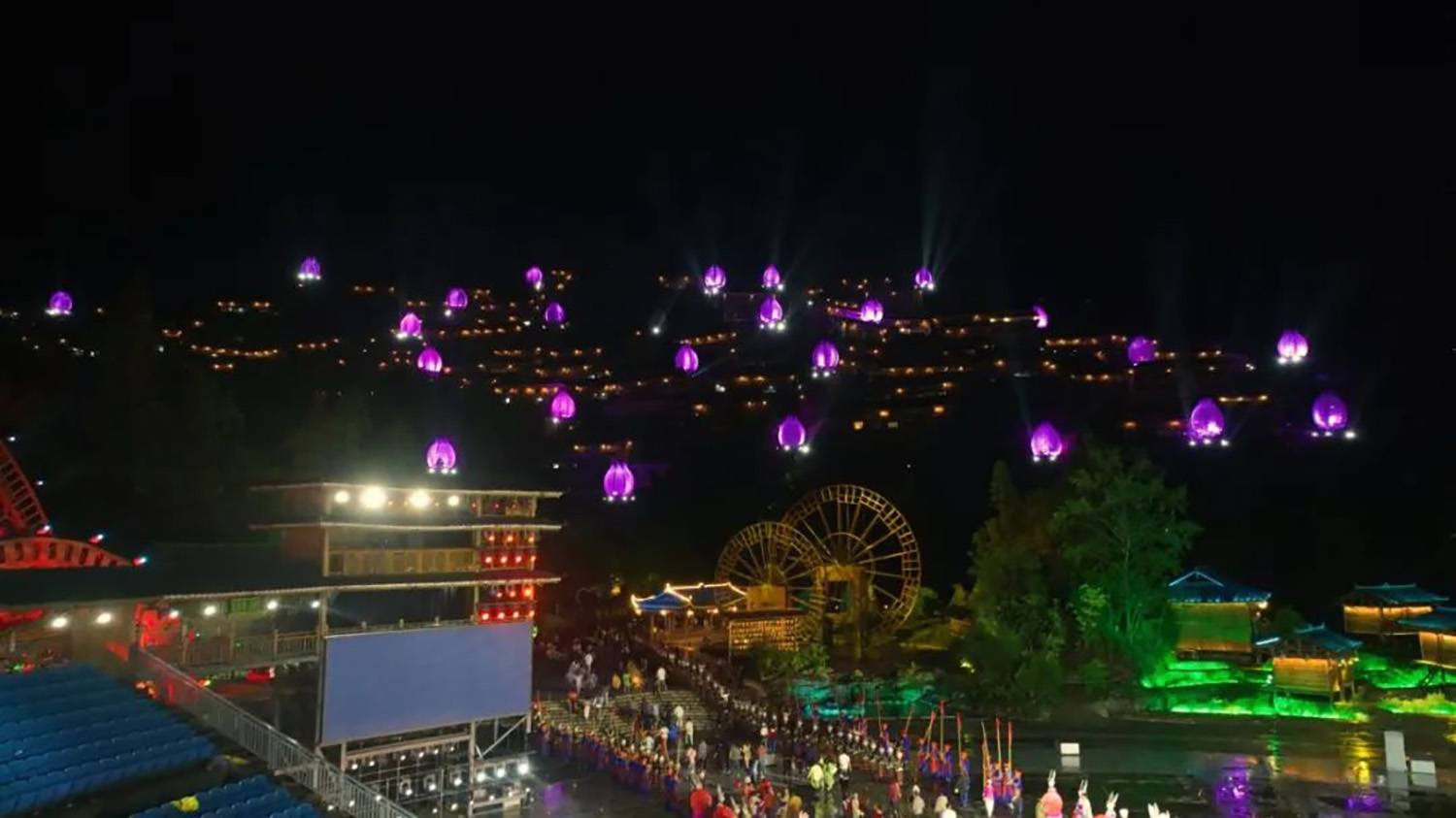此次修改提升,增加了50台无人机。无人机编程形成的蝴蝶妈妈、蝗虫等不同形象,带给观众强烈的视觉冲击。
