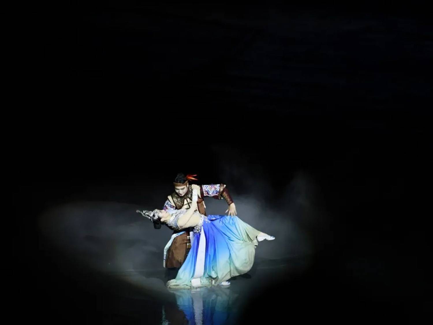 在《纵情去游方》一场,游方群舞演员增加队形变化并整体往前区提,使群舞更加富有活力和层次感。男女主双人舞部分增加流动感强的旋转和托举呈现,这些动作的设计体现男女主之间的深情厚谊,增加舞蹈的观赏性和艺术性,使观众能够更好地感受到角色之间的情感交流。