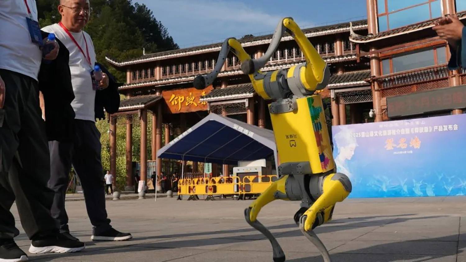 发布会上,北京蚂蜂窝网络科技有限公司围绕“AI智能游西江文旅融合” 展开深入演绎,其中令人瞩目的是AI智“机器狗”与游客的互动。