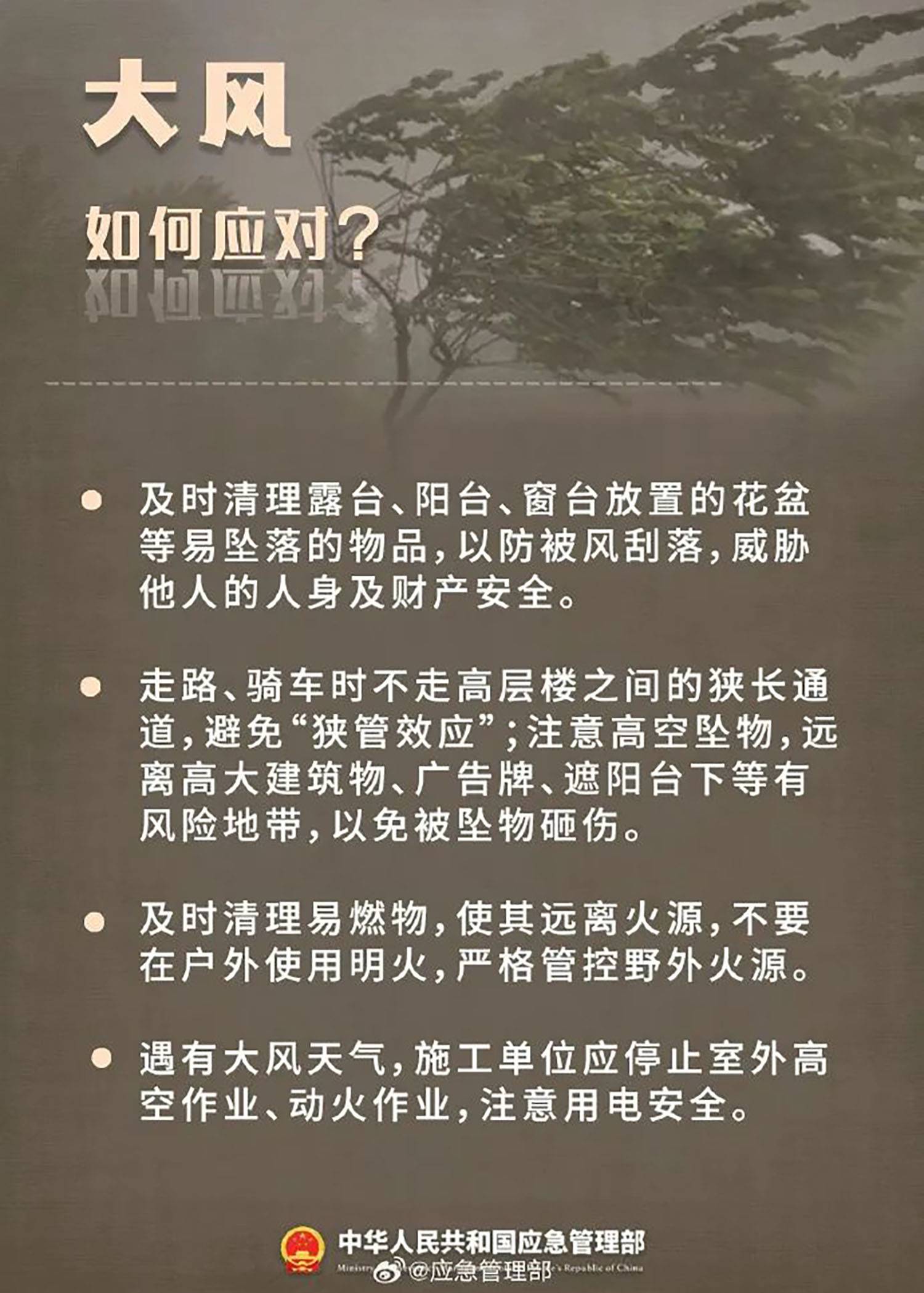 外出时尽量不要在玻璃门窗、广告牌附近逗留,注意楼房瓦片掉落,选择靠外侧或空旷区域通行;