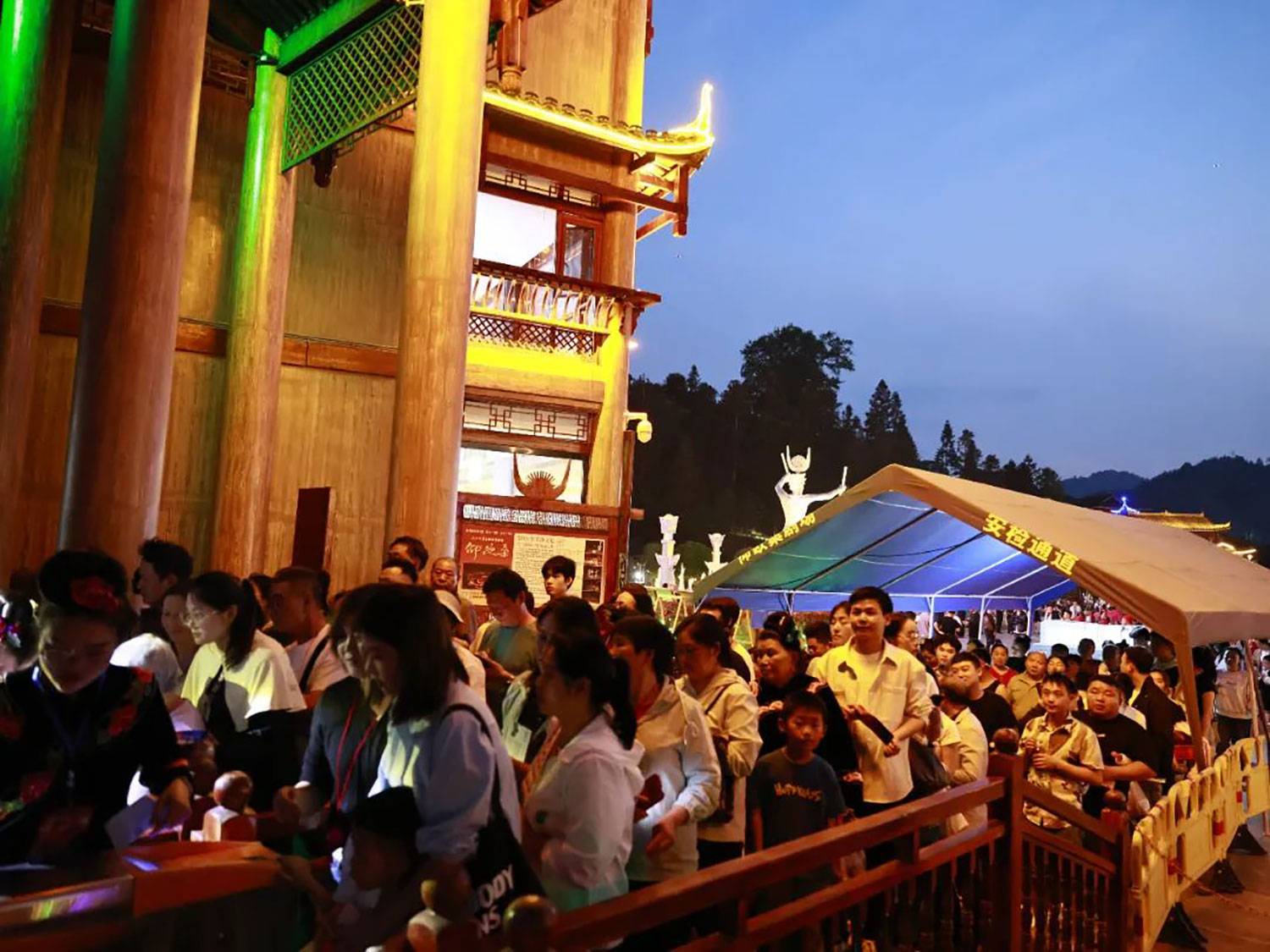 随着剧情展开,苗族美神仰欧桑的史诗故事在演员们精湛的演绎下,如诗如画般呈现在观众眼前。舞台上,灯光与山水交融,歌舞与故事共鸣,让每一位观众都仿佛穿越时空,走进了神秘而浪漫的苗族世界。尽管这是收费项目,但凭借其独特的魅力,依然吸引了大量游客购票观赏,成为五一假期当之无愧的文化大餐!