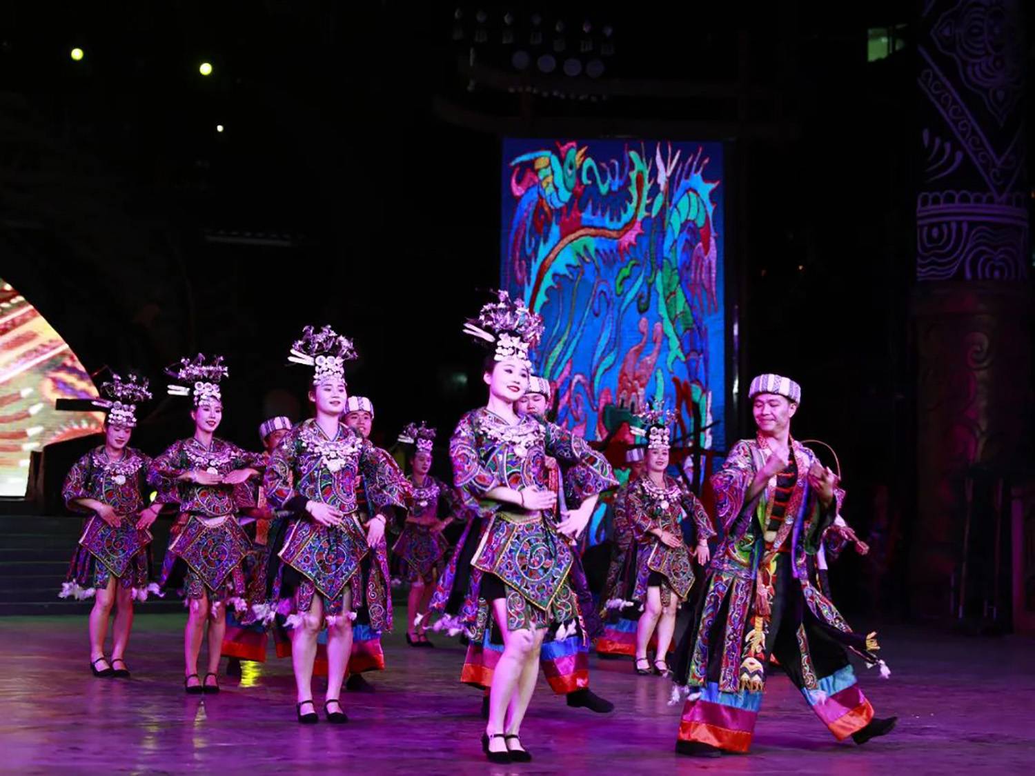 非遗技艺体验区,以及各博物馆内关于苗族历史、服饰、节日等文化展示,让游客深入探寻苗族文化内核。美丽西江表演场,从白天的婚俗文化表演、巡展,到夜晚美轮美奂的歌舞晚会,不同形式的演出为游客带来视觉与听觉的双重享受,让人沉浸在苗族文化的独特魅力中。