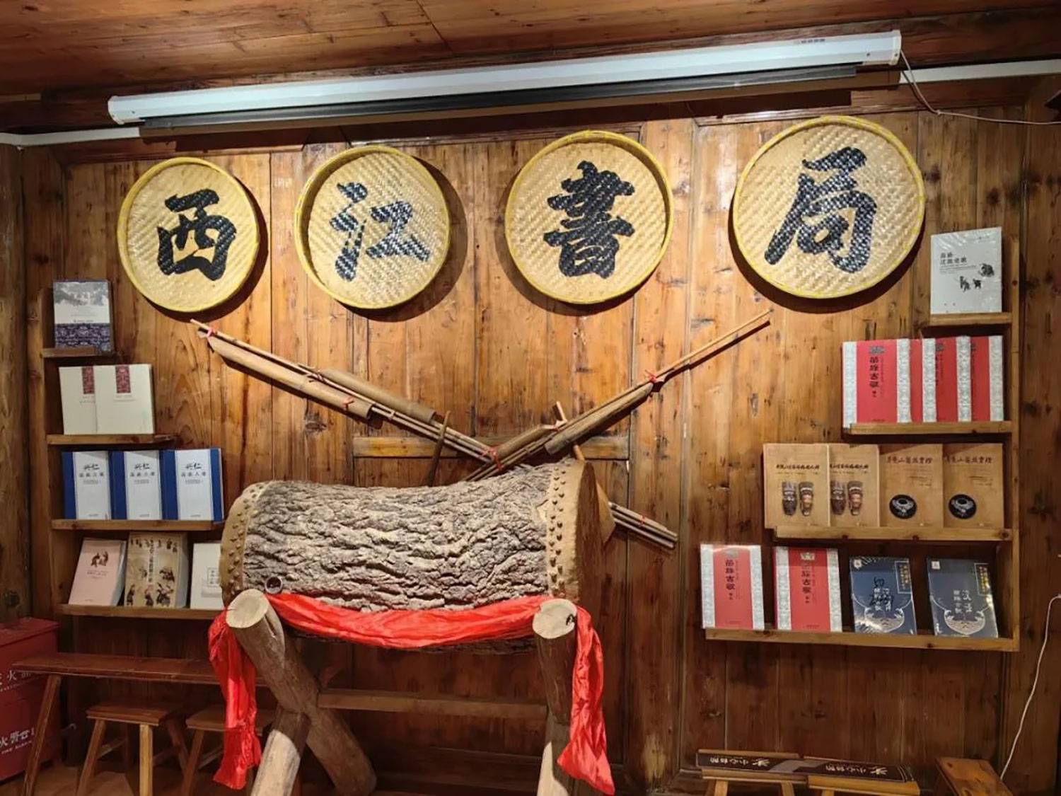 西江书局由雷山县西江千户苗寨文化研究院、贵州省西江千户苗寨文化旅游(投资)集团有限公司、贵州民族大学西江教学实践基地联合打造,总藏书量超万册,聚焦少数民族文化典籍、中华优秀传统文化著作及地方文献,涵盖苗绣、银饰、民俗、历史等多个主题。书局建筑融合苗族吊脚楼元素与现代设计理念,既是文化空间,也是游客体验苗寨人文底蕴的重要窗口。