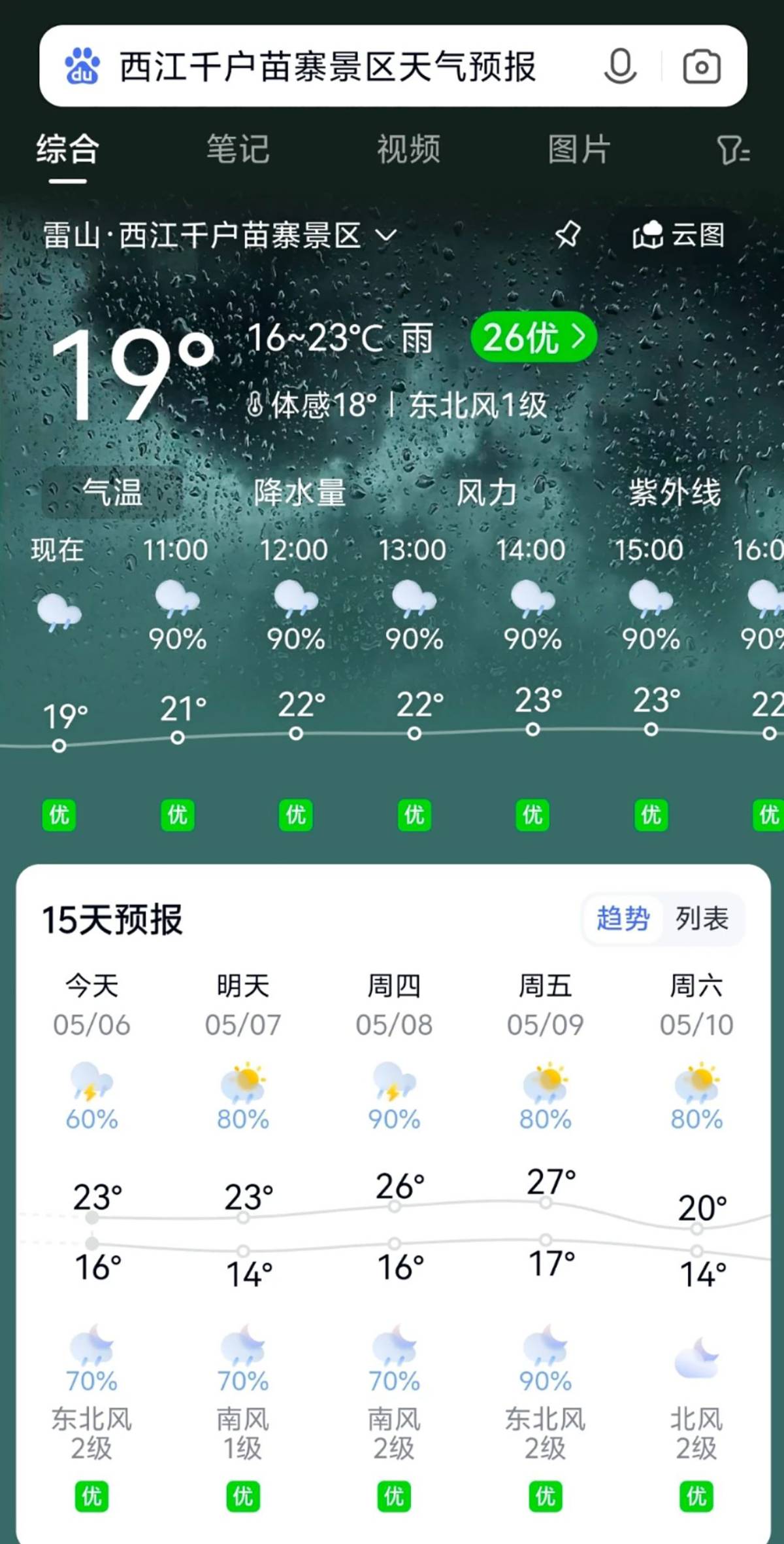 雷山县气象台2025年5月6日8时发布早间天气预报: