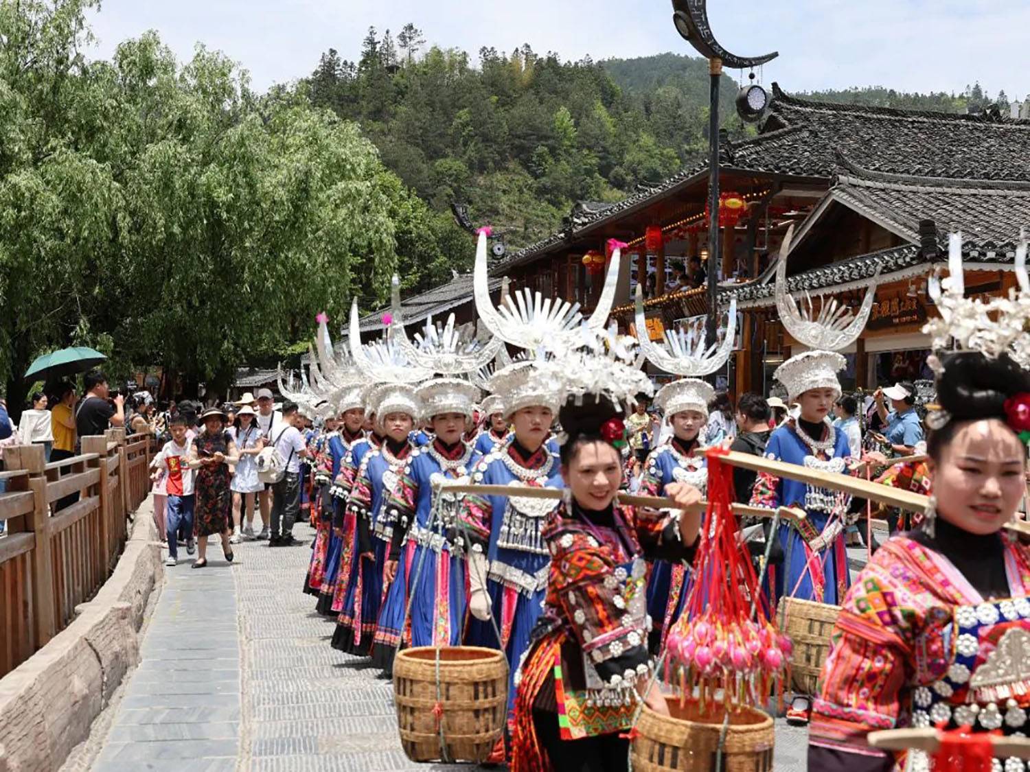 西江千户苗寨景区2025年“五一”假期旅游工作圆满收官。期间,西江千户苗寨景区以浓郁的民族风情、暖心的旅游服务,成为众多游客的热门打卡地。据统计,西江千户苗寨景区五一期间接待游客18.1万余人,同比增长15.07%,旅游市场持续火爆,绘就出一幅热闹非凡的假日画卷。