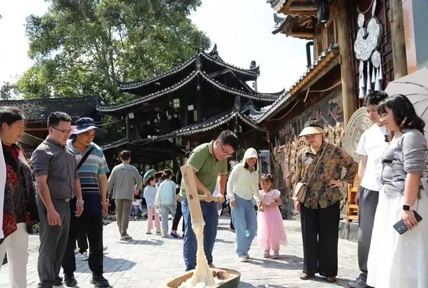 五一期间,西江千户苗寨的民俗活动丰富多彩,游客们沉浸在浓郁的苗族文化氛围中。十二道迎宾酒喜迎八方游客,原生态歌舞表演、非遗技艺体验、《情定西江·讨花带》、《美丽西江》歌舞晚会、西江苗族博物馆、西江书局、蜡染坊、鼓藏文化博物馆等常规多项民俗活动和苗族文化展示点基础上,增设了苗韵茶香之旅、苗族迎亲送亲、满月回门酒文化巡展热闹非凡、打糍粑比赛、挑稻草接力赛、姑妈篮球赛。让游客们近距离感受苗家民俗的热闹与活力,尽显民族风情。