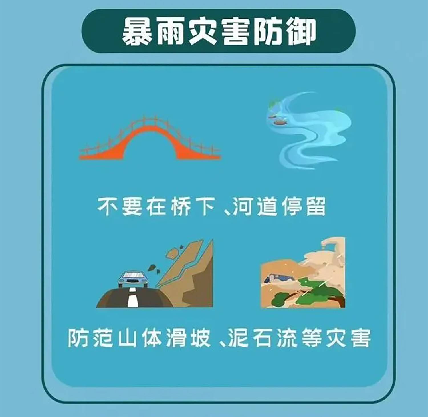 六、注意防汛安全:在山区、河谷以及临水、临崖等区域要防范山体滑坡、落石、泥石流、山洪暴发等安全风险,游玩途中及时关注天气变化及最新预报预警信息。谨慎参与划船、漂流等涉水活动,不在没有安全保障的水域游玩。