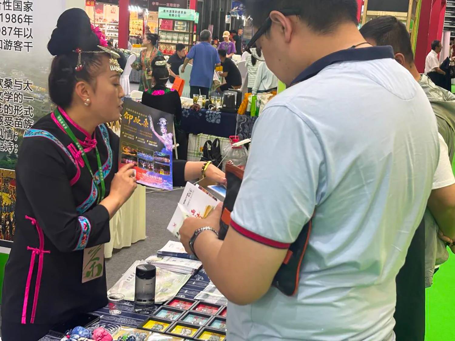 展会期间,雷山县带来的不仅是舌尖上的美味,更有震撼心灵的文化视觉盛宴。大型实景苗族歌舞诗剧《仰欧桑》的推介活动,《仰欧桑》源自贵州省黔东南一带的古代叙事长诗,讲述了仰欧桑与太阳感天动地的爱情故事,2008年入选国家级非遗,“仰欧桑”意为清水姑娘,是苗族心中象征冰清玉洁的美神。2025版《仰欧桑》全面升级,剧情更富张力,舞美融合传统与科技打造奇幻视觉;感受苗族独具特色的歌舞、非遗与民俗文化。遇见仰欧桑,遇见苗乡侗寨的别样风情;走进仰欧桑,走进镌刻着族群记忆的千年史诗。