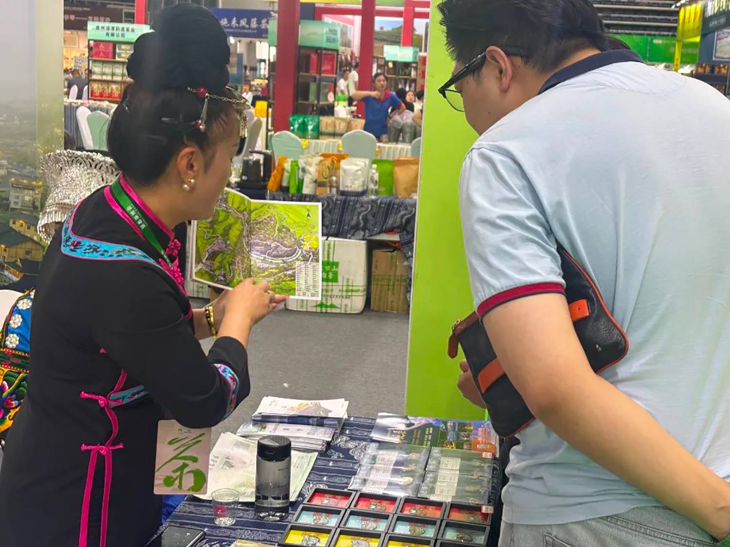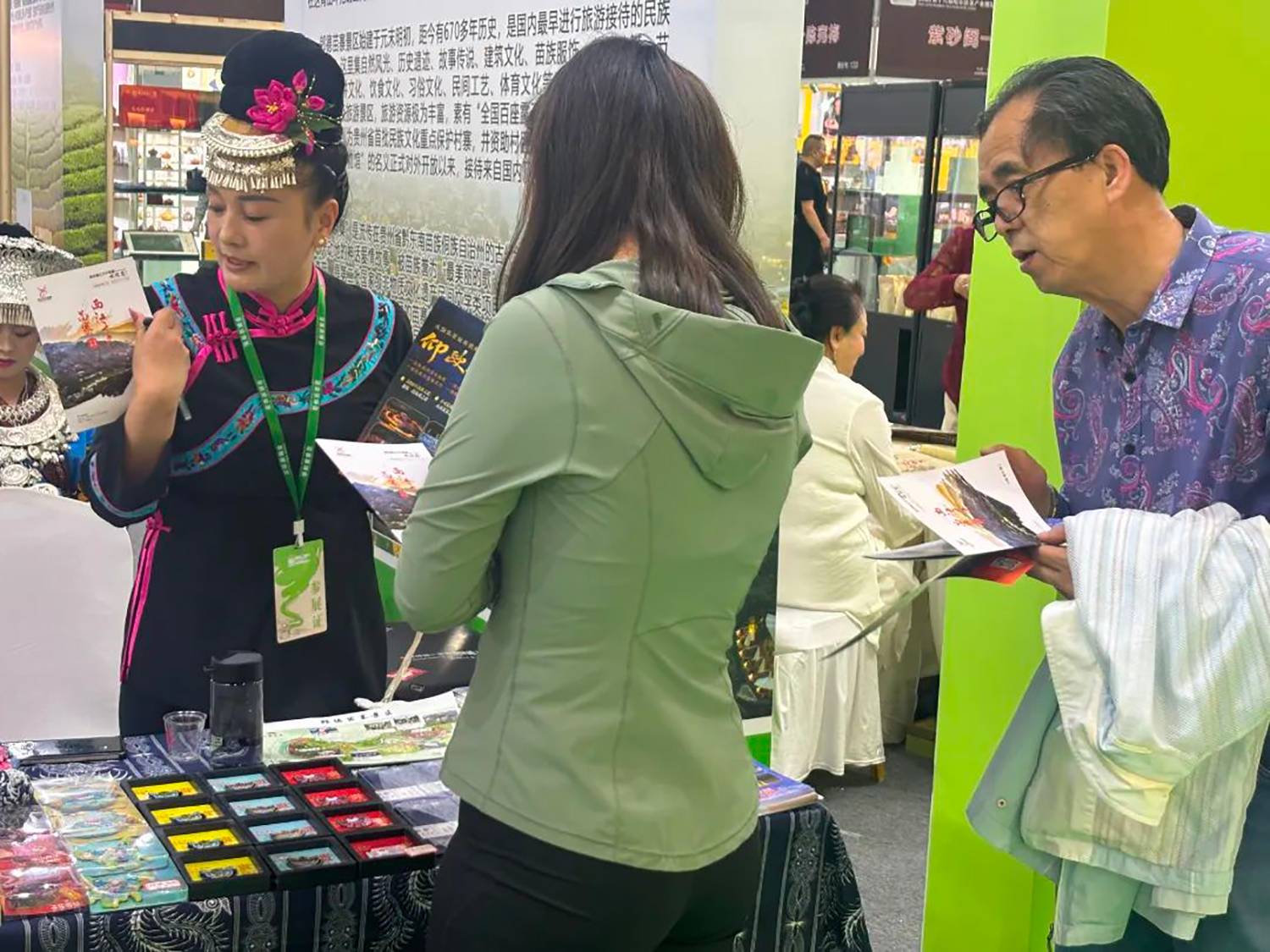 此外,本次茶博会上,雷山银球茶展团还对国家AAAA景区西江千户苗寨的文旅特产和旅游文创产品进行详细介绍。西江千户苗寨是全世界最大的苗族聚居村寨,苗族多彩民俗和山水风光在此处交织,热情好客的苗族同胞会以醇香的“十二道拦门酒”相迎,邀你共饮“高山流水”,原汁原味的苗族歌舞精彩呈现,“长桌宴”上苗家特色美食垂涎三尺。独特建筑吊脚楼随着地形的起伏变化,层峦叠嶂、鳞次栉比,夜晚,千户灯火次第亮起,漫山遍野的暖黄色灯光,勾勒出一幅绚丽的光影画卷。