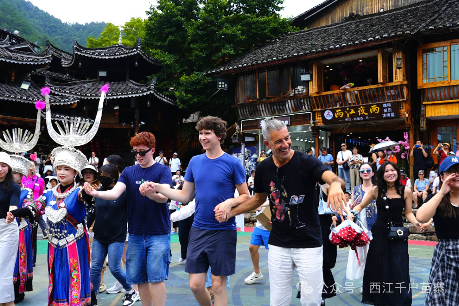 7月13日,“山海无界,乐传全球”——中欧艺术交流全球传播活动采风团走进贵州西江千户苗寨,来自欧洲的音乐人深入体验苗族民俗文化,在吊脚楼的层叠光影里,开启了一场跨越山海的音乐对话。米酒的甘醇、芦笙舞的灵动、古歌的悠远,让来自欧洲的音乐人们沉醉其间,更碰撞出奇妙的艺术火花!