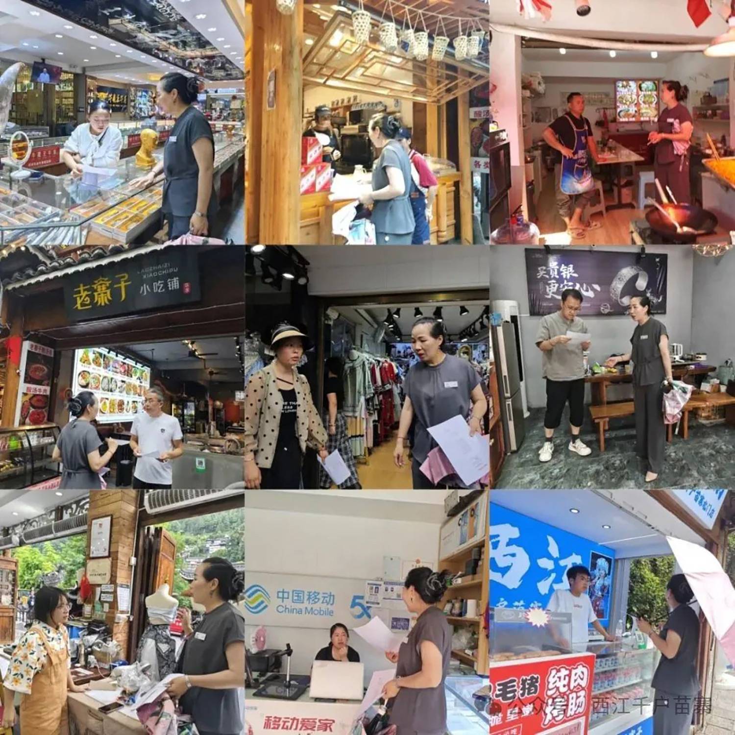 针对市场经营秩序,西江旅游集团相关部门向承租户传达《关于全面规范西江千户苗寨景区旅游市场秩序的通告》,提醒禁止超门面经营、禁止占道经营,确保游览道路畅通与景区整体风貌。