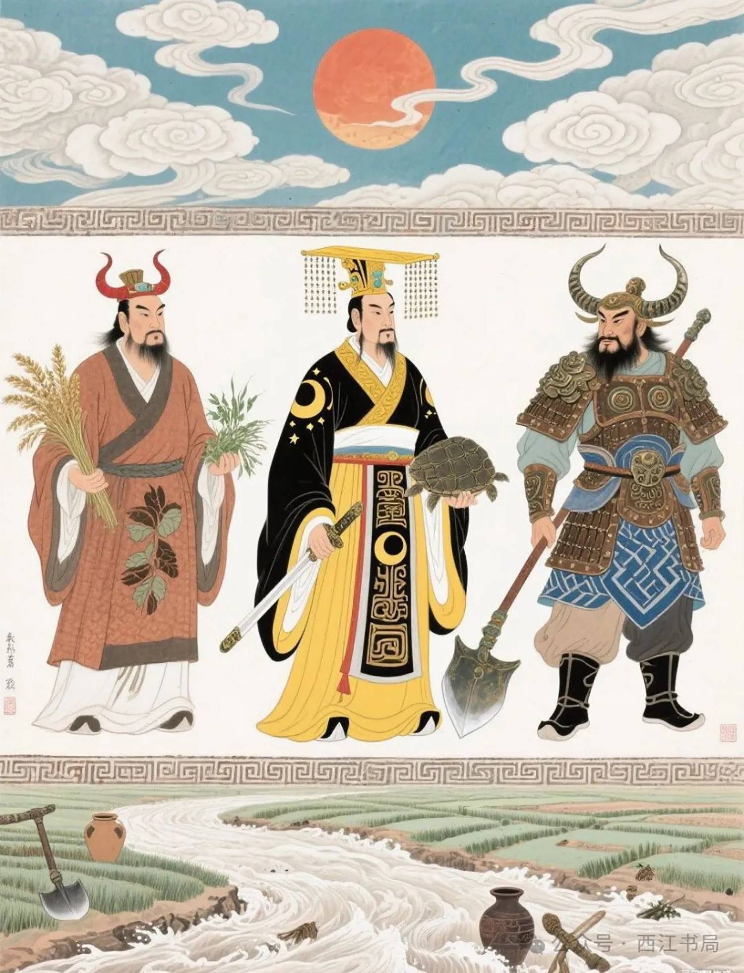 上古时期炎帝、黄帝、蚩尤复原图(AI绘制)