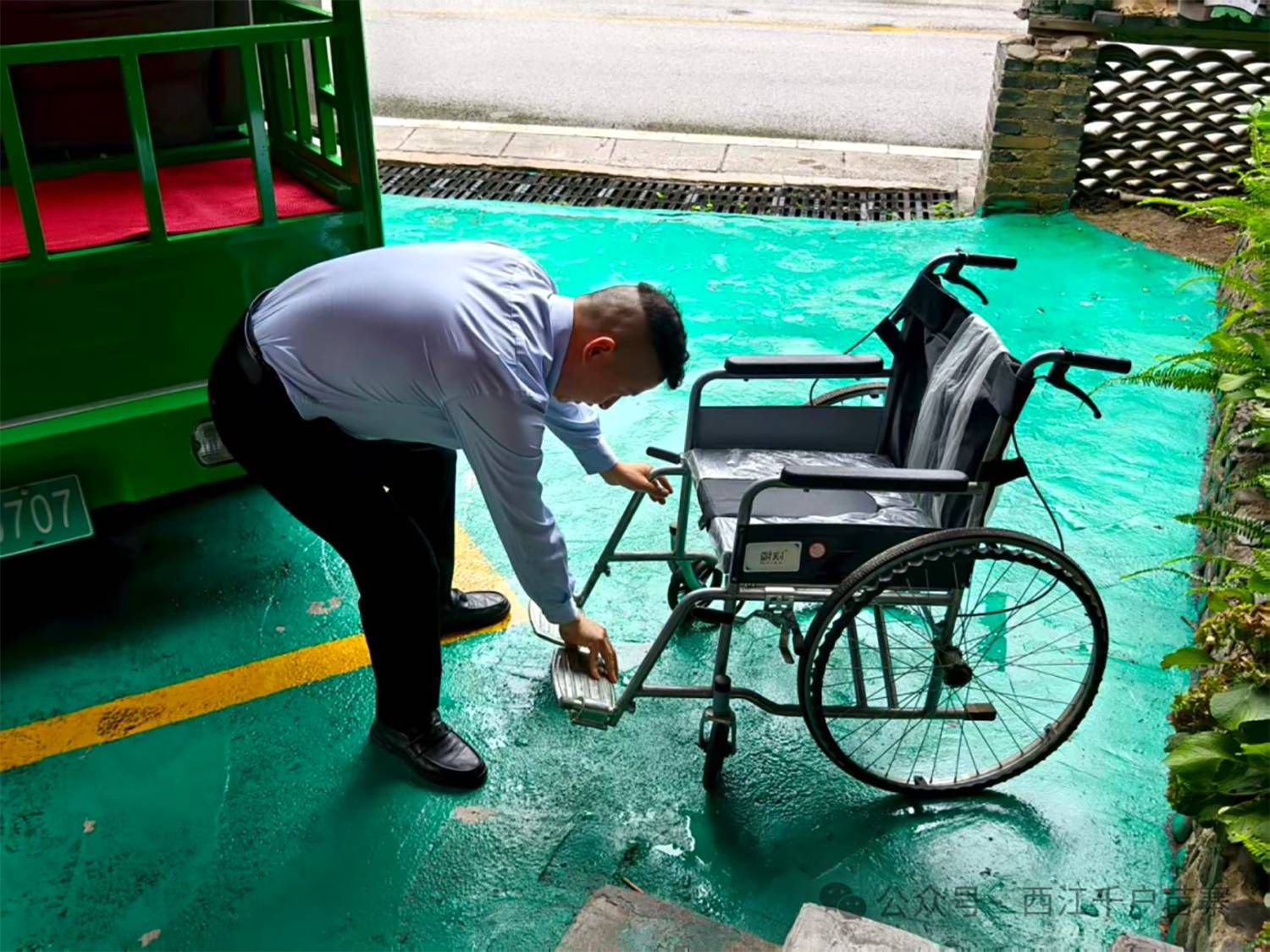 西江旅游集团行李配送中心程运文师傅在得知一名四川籍游客因腿部严重受伤,无法行走的情况后,立即赶往游客所在地点,主动背起游客,小心翼翼地从半山路将其安全护送下来。随后,他又细心地安排游客乘坐行李配送车,一路护送直至景区大北门,确保游客得到进一步的妥善安置。