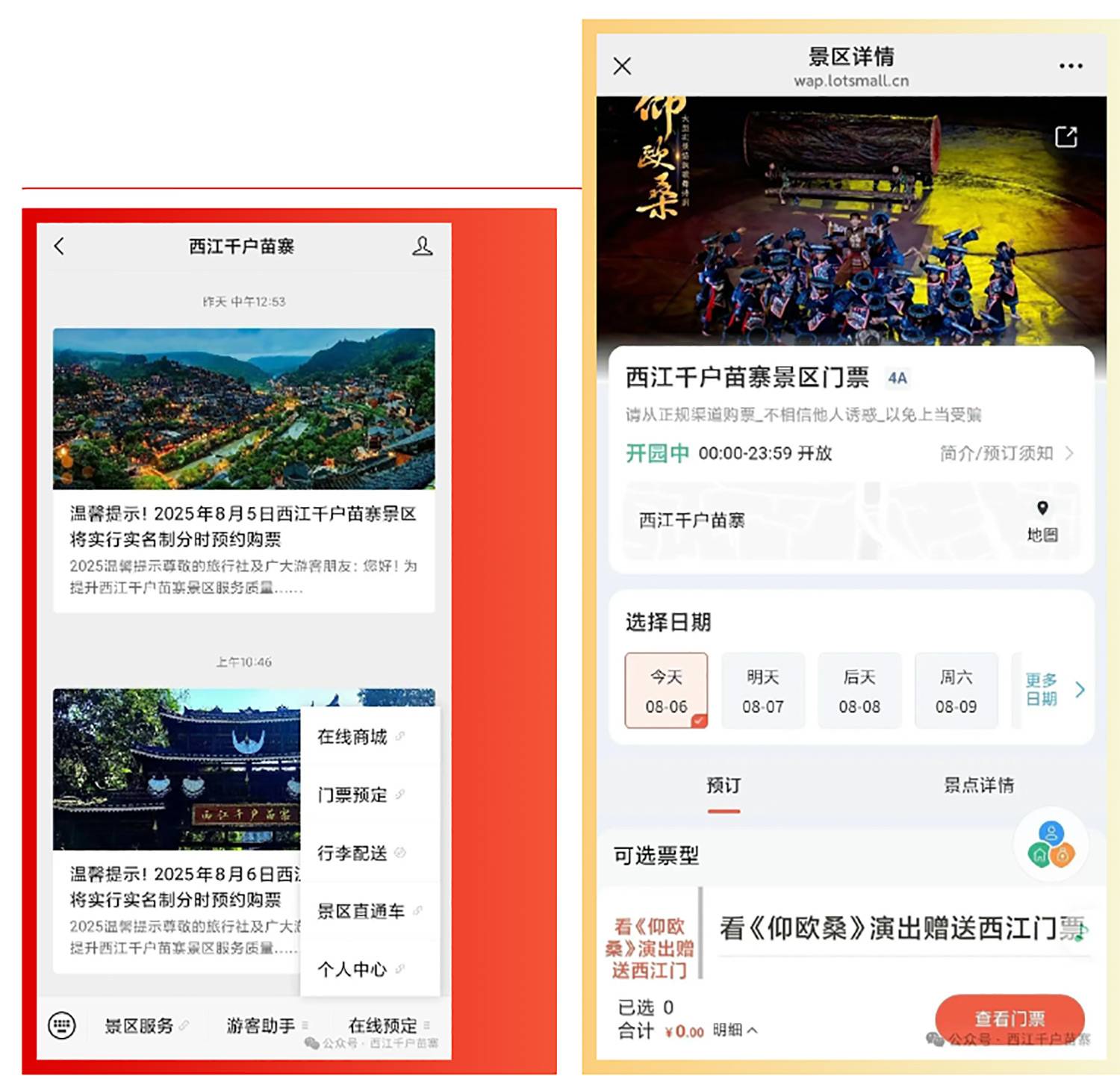 为了获得更好的游玩体验,建议您出行前关注西江千户苗寨景区微信公众号,了解官方最新公告,提前预约景区门票!