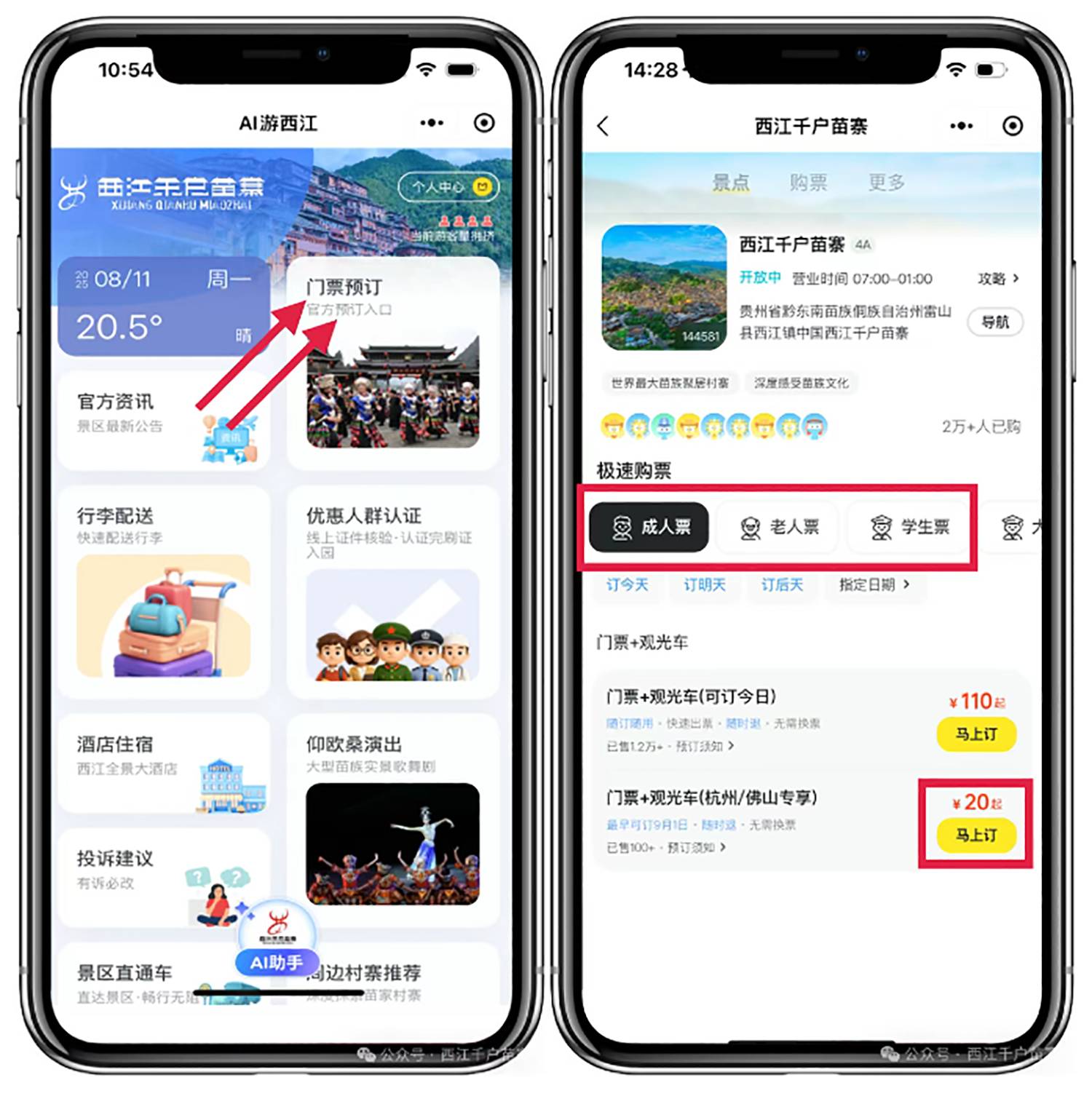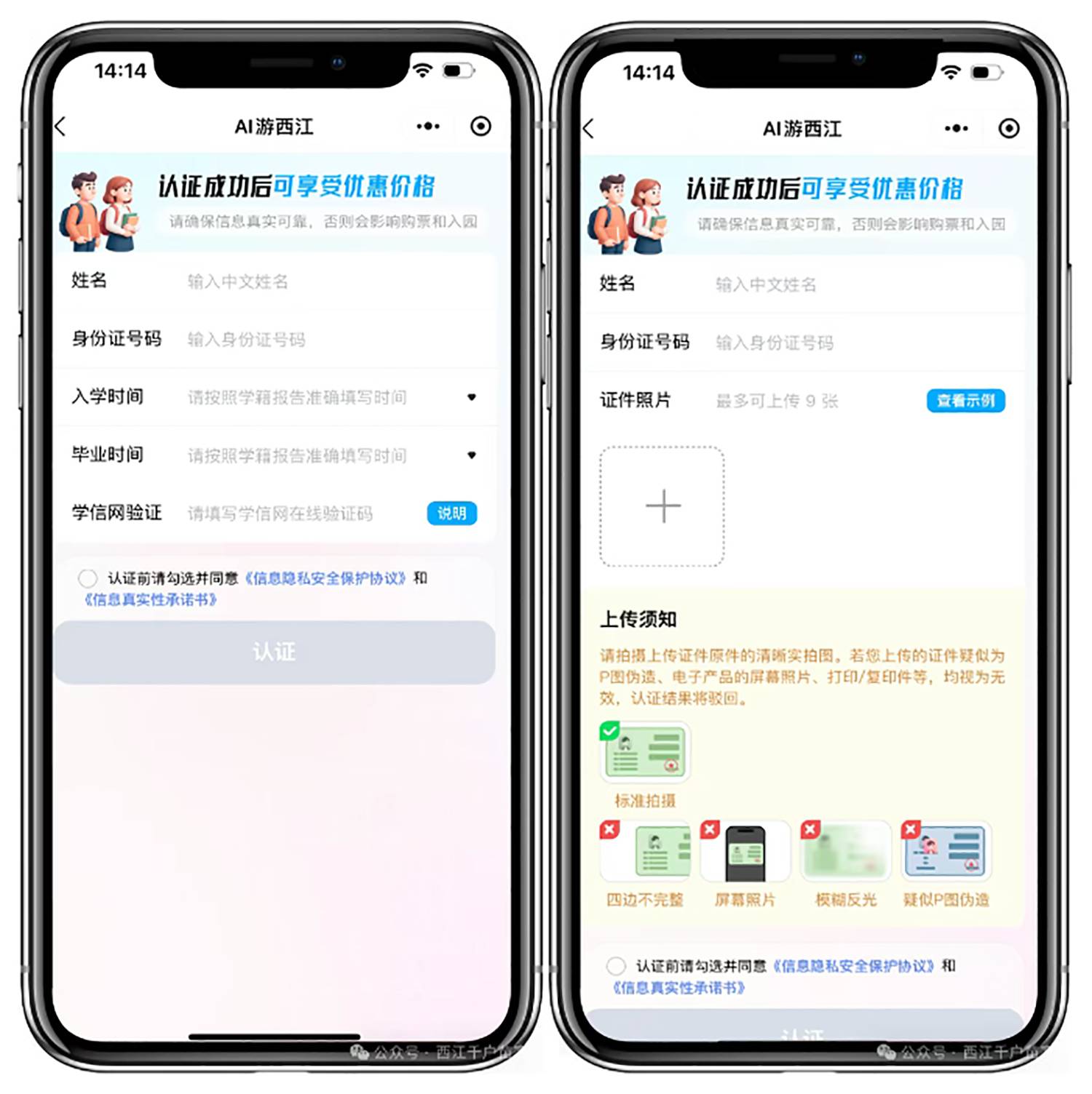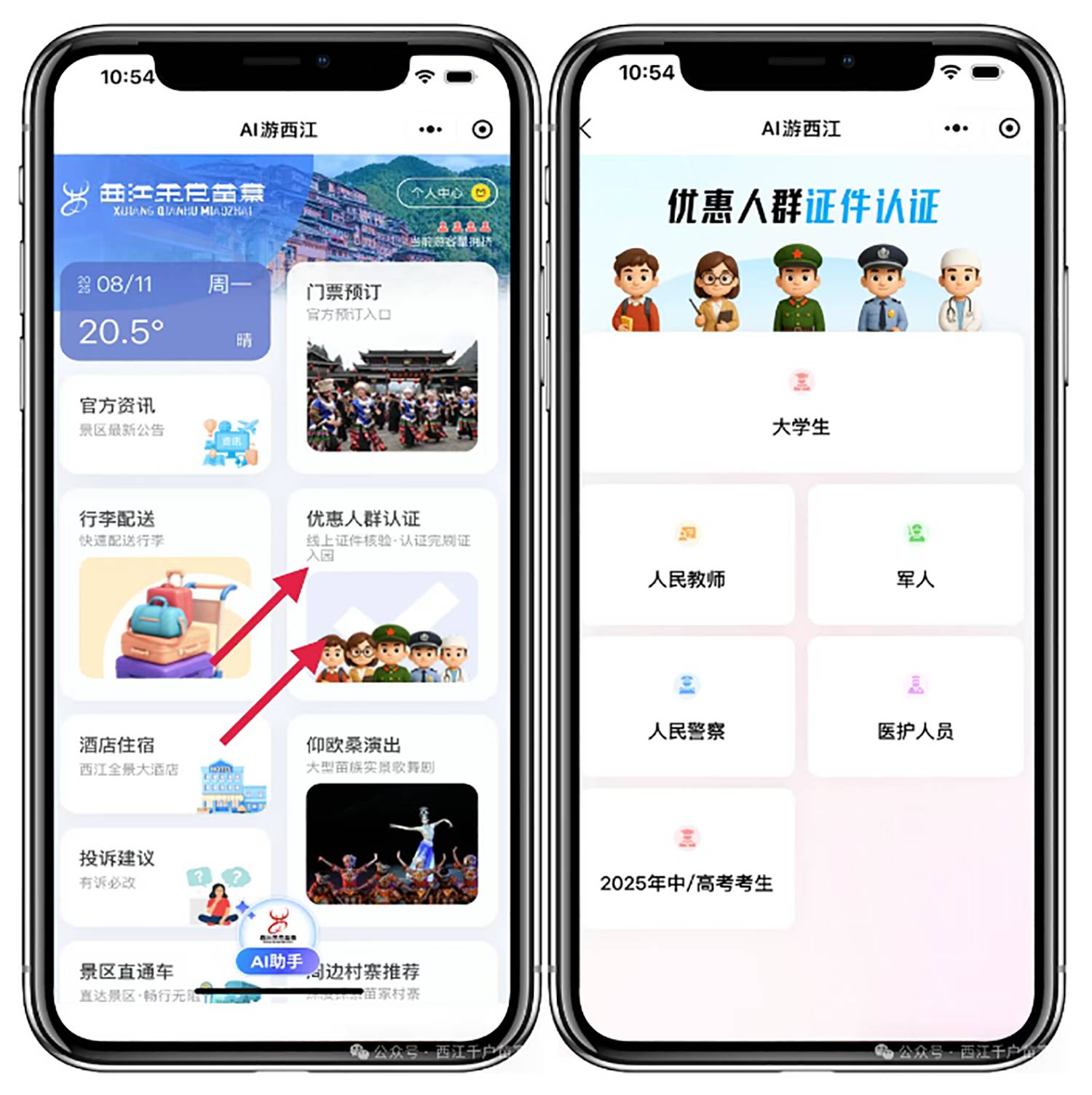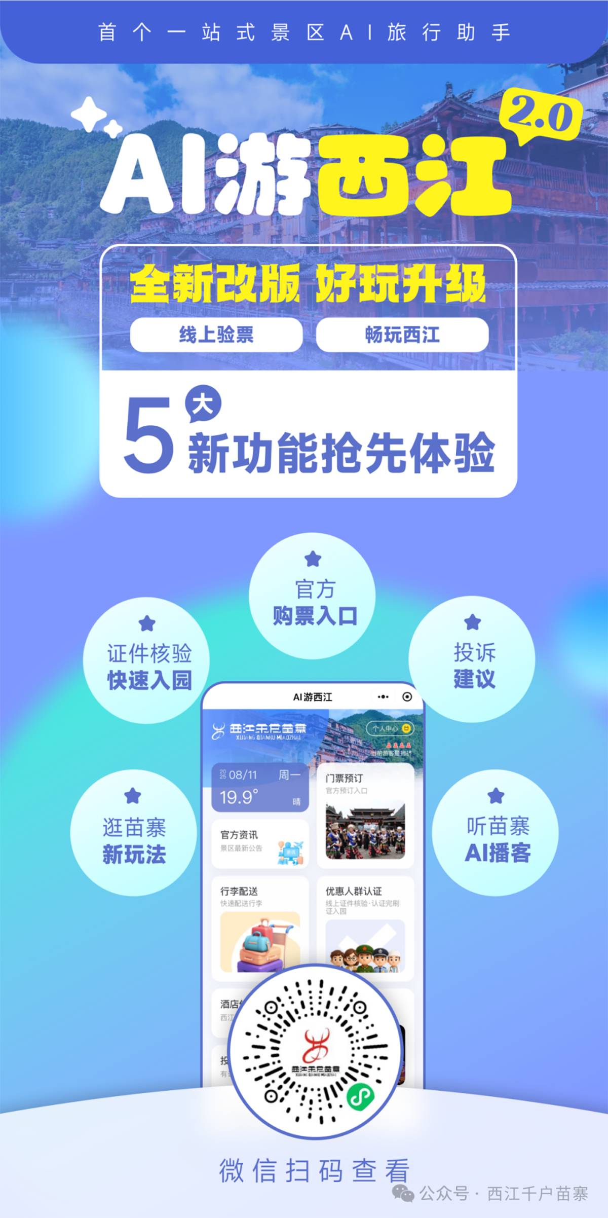 只需一部手机,通过“AI游西江”小程序,即可足不出户完成认证、预约购票、刷证入园,全程无需线下排队,真正实现“免票不排队,入园快如风”!