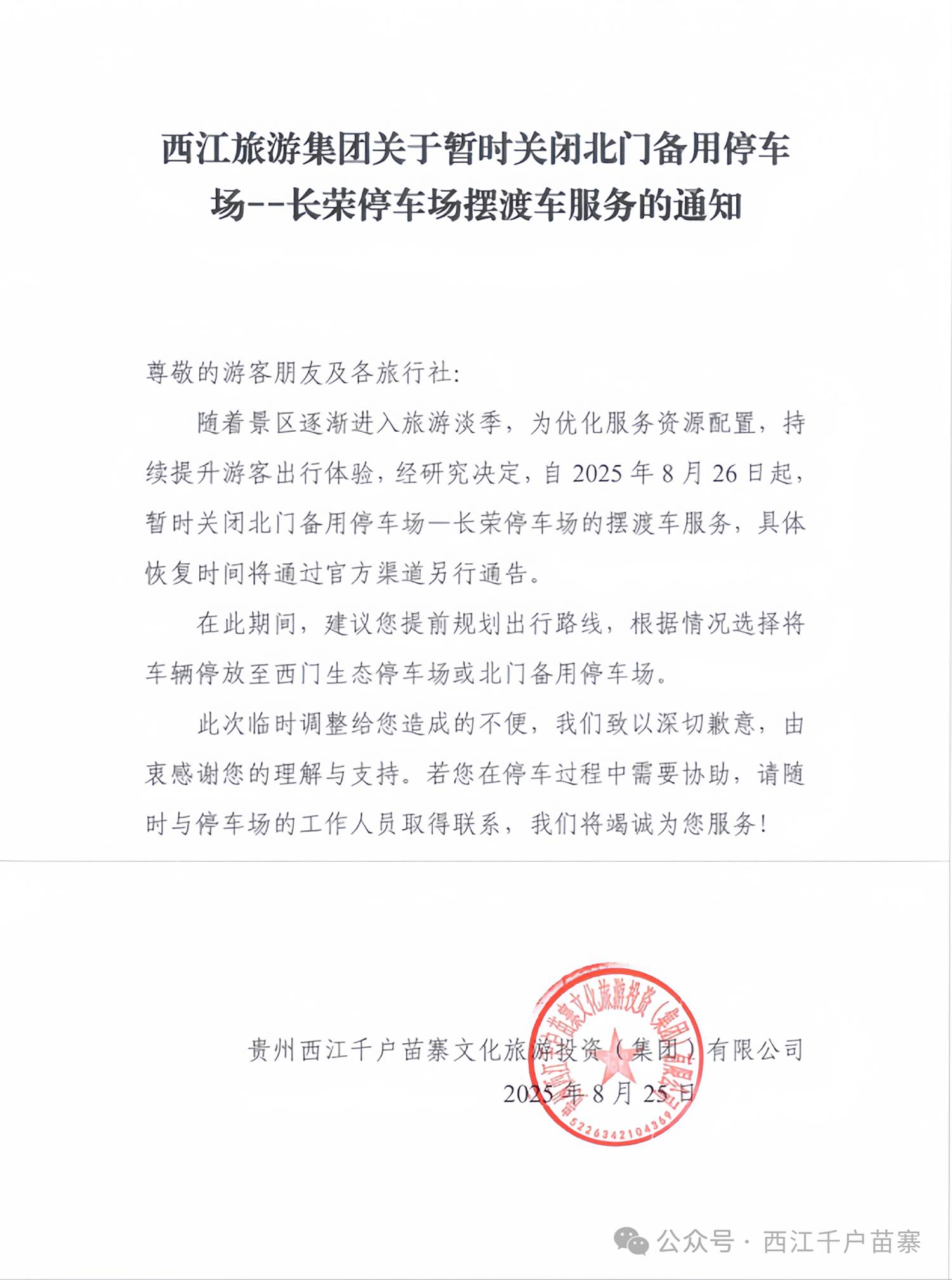 关于暂时关闭北门备用停车场——长荣停车场摆渡车服务的通知