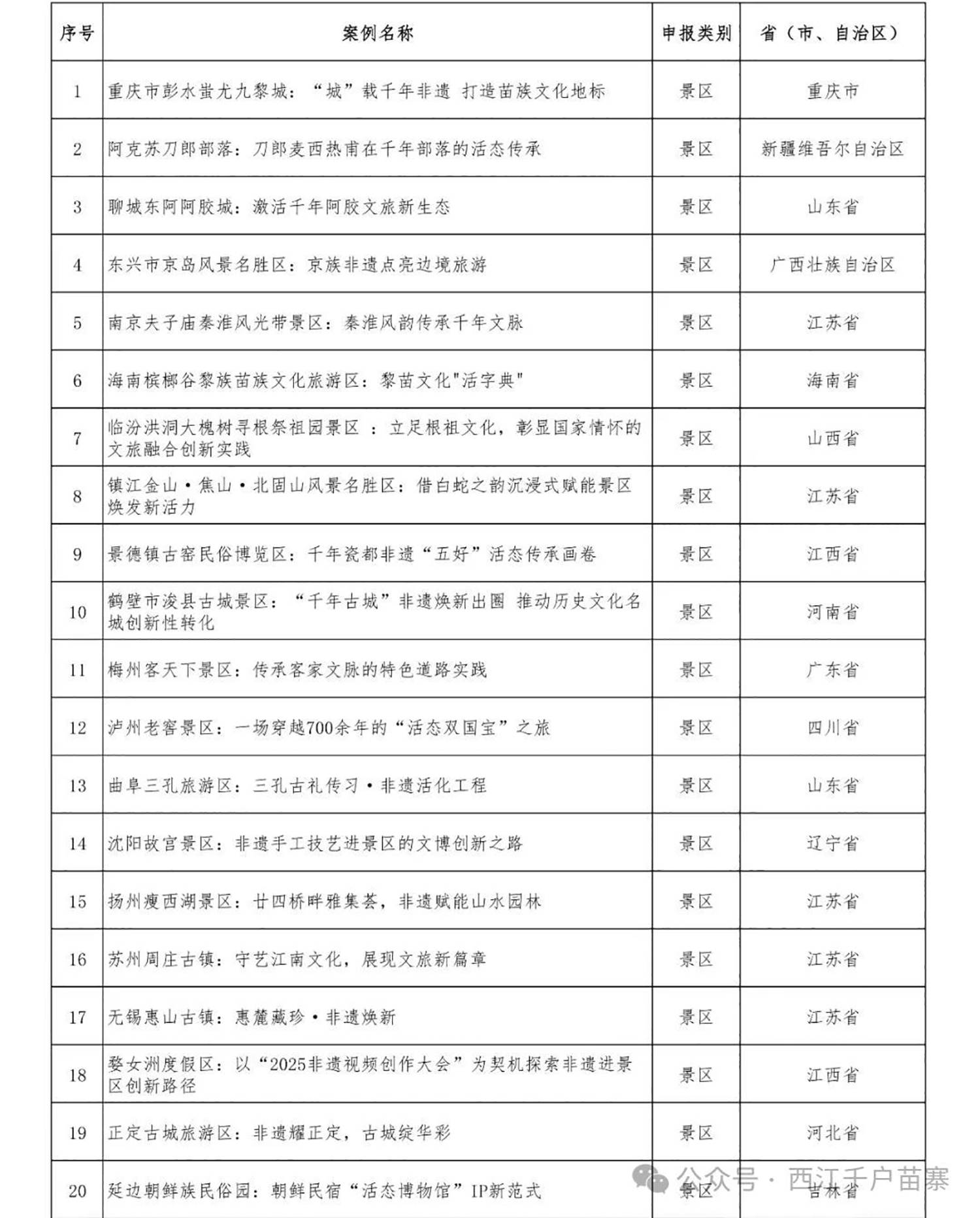 48个!正在公示!“黔东南西江千户苗寨:芦笙+苗绣开拓千年非遗活化路径”案列入选2025年非遗进景区“五好”案例名单