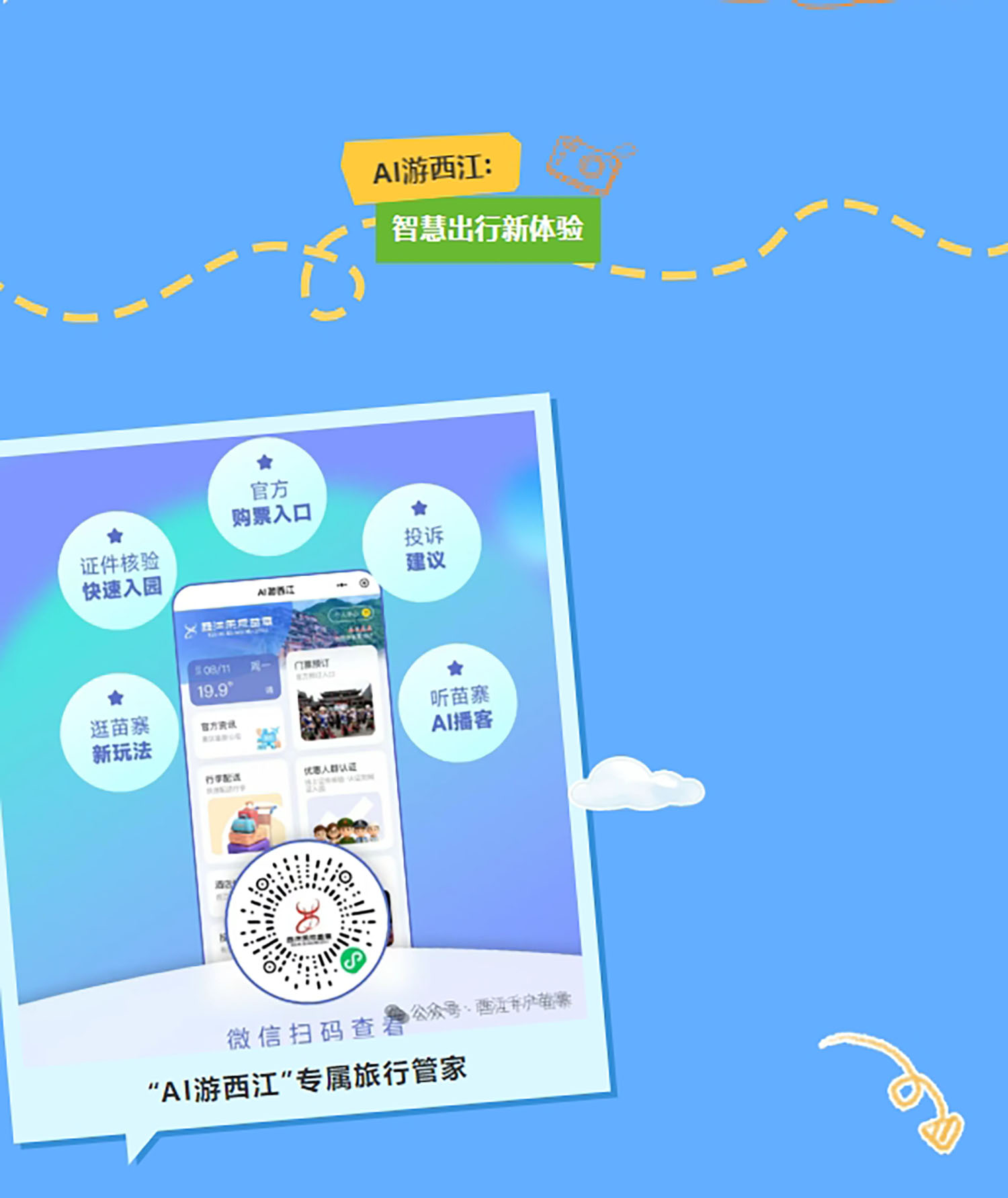 8天长假,是远方的邀约,更是文化与团圆的契机。“AI 游西江” 已备好贴心方案,门票、住宿、避峰路线一键搞定,助你专注体验。无论是沉浸解锁非遗、带娃文化研学,还是中秋寻团圆仪式感,西江千户苗寨都能满足期待。双节别犹豫,收拾行囊走进黔东南烟火里,让吊脚楼、苗歌与厚重文化,为你留下温暖记忆。西江千户苗寨,等你来赴约!