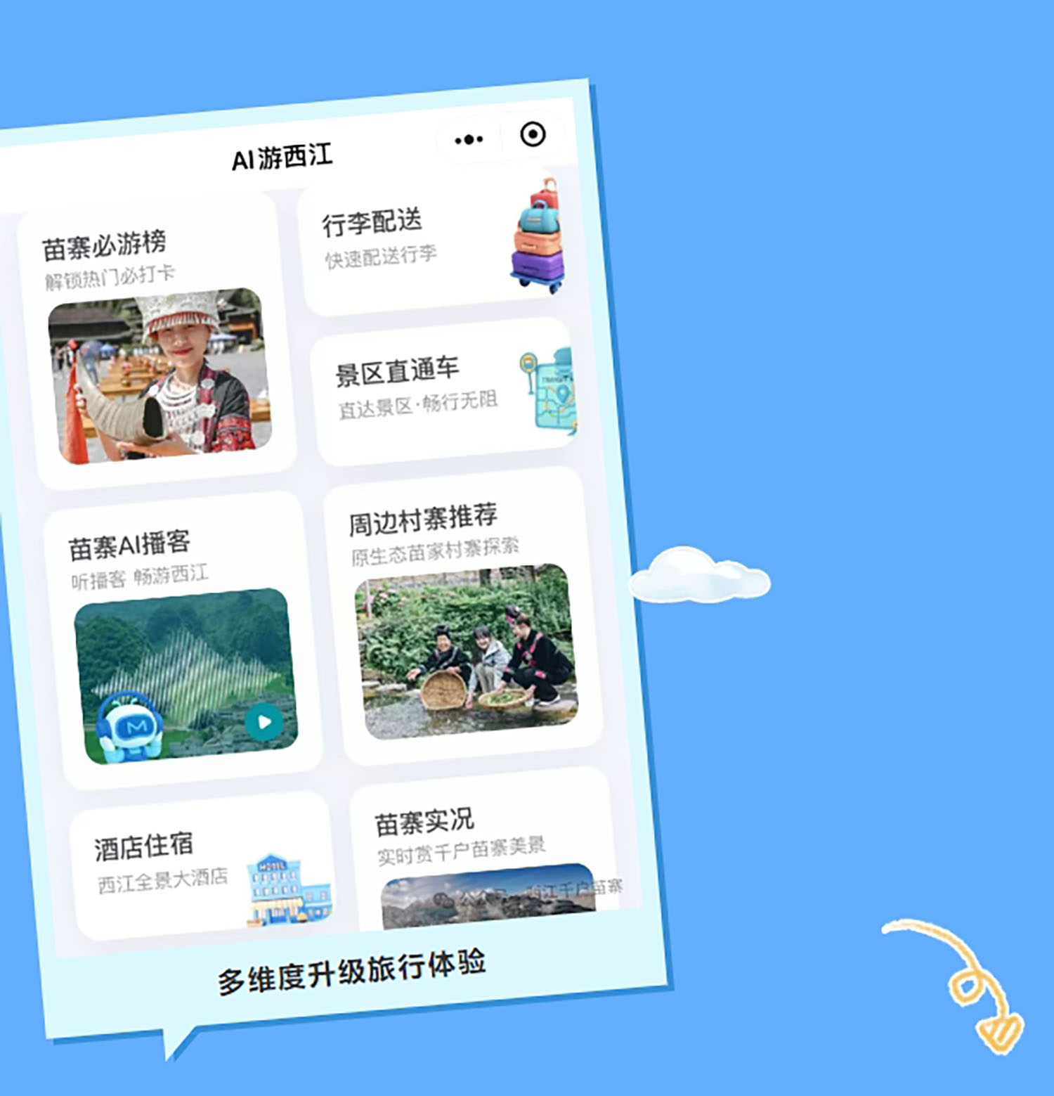 周边村寨推荐功能深度整合马蜂窝攻略,挖掘雷山小众村寨资源;自驾游或通勤时,AI播客功能会以双人对话模式,为你提供实时客流避峰路线、隐藏打卡点推荐和方言版美食介绍,让你在旅途中轻松获取实用信息。让你远离人潮,体验更原生态的民族特色玩法。无论是想打卡热门景点,还是想解锁小众秘境,“AI游西江” 都能为你提供个性化服务。