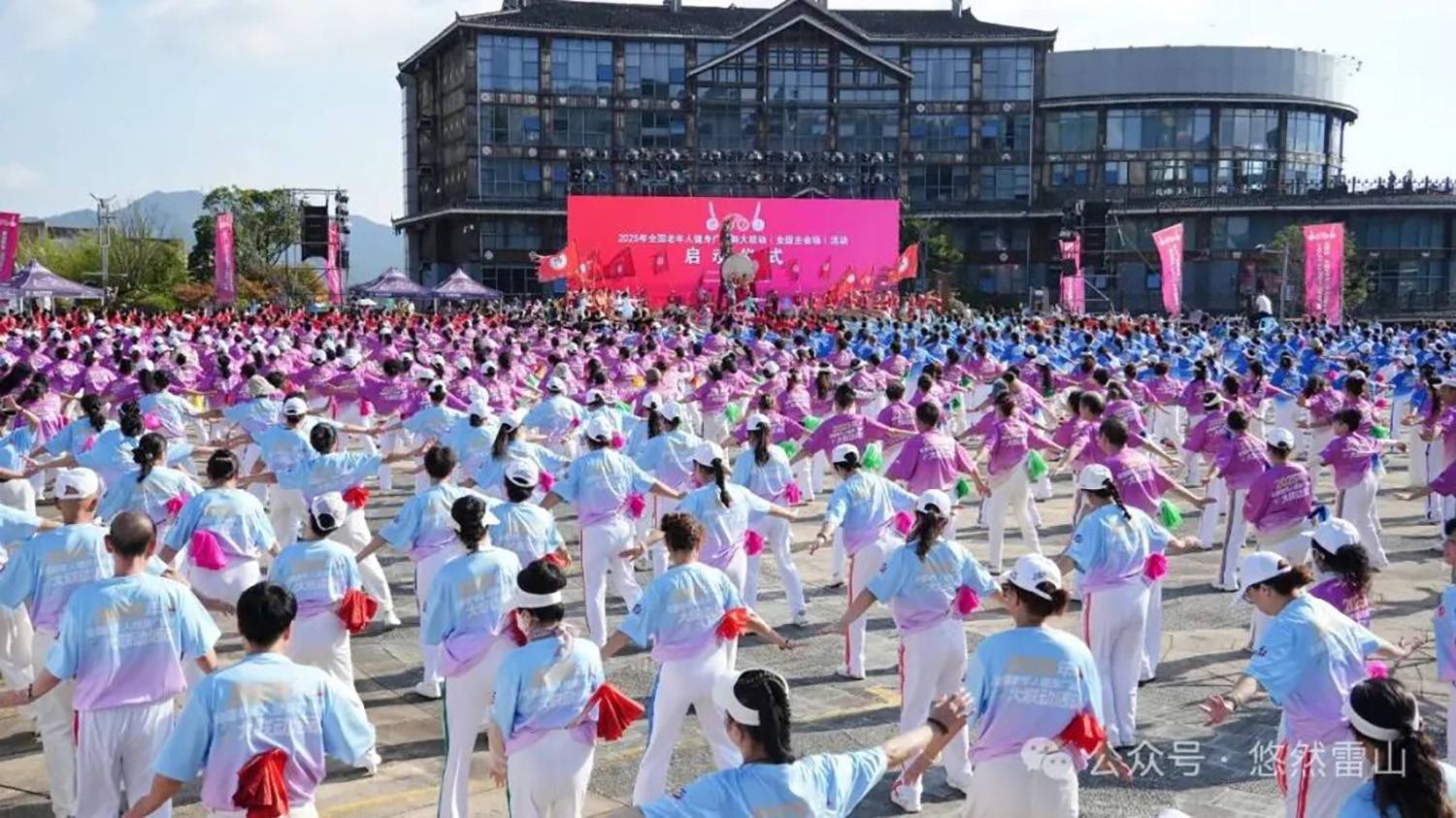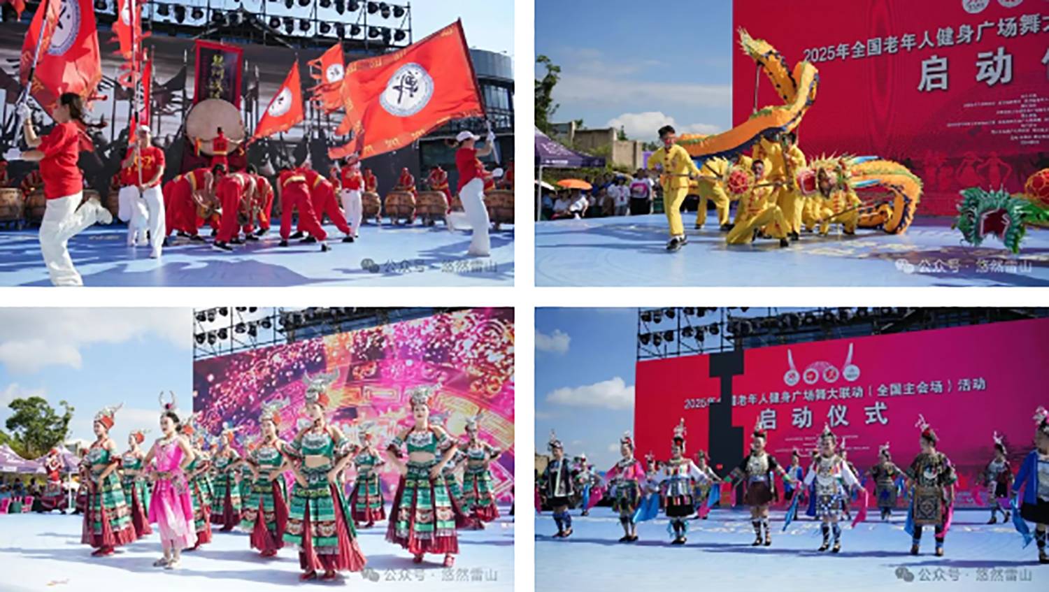 9月15日,2025年全国老年人健身广场舞大联动(全国主会场)活动启动仪式在我县举行。本次活动共吸引了来自全国13个省(区市)及行业老体协的21支代表队、400名老年广场舞爱好者参与。他们与黔东南当地近2000名老年人携手,以热情为笔、以民族风情为墨,在雷山的山水之间,生动展现新时代老年人昂扬向上的精神风貌和健康自信的生活态度。中国老年人体育协会主席雷军,中国老年人体育协会特邀副主席、贵州省老年人体育协会第六届委员会主席龙超云,中国老年人体育协会副主席、广场舞专委会主任温文,贵州省老年人体育协会副主席王建忠,贵州省老年人体育协会副主席姚亚非,州人民政府副州长王建华,州老年人体育协会主席邓锦光,黔东南州文旅局二级调研员龙辉,县委副书记、县长黎琨,贵州省体育局四级调研员王坤出席仪式。
