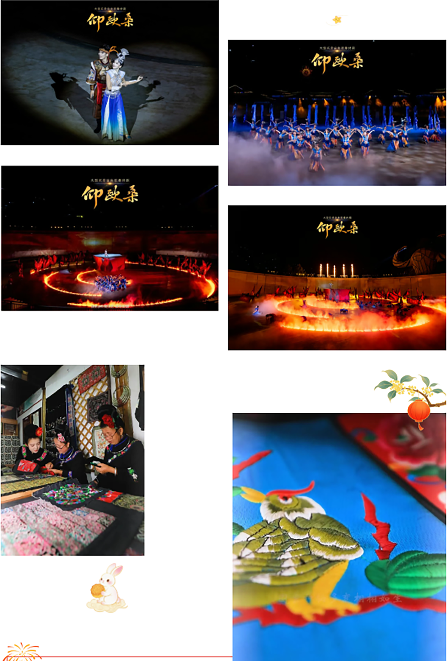 到西江别只逛苗寨,还有苗寨文化的终极浪漫《仰欧桑》;看完《仰欧桑》,再到剧场外的“乡村风貌”“苗寨变迁”“剧目风采”三个展区,剧场周边设置了美食区和非遗展示区,提供苗族特色美食和刺绣、银饰等,邀请苗族厨师和非遗大师现场展示苗族美食和非遗项目的制作过程,游客也可以参与体验,亲手制作银饰和苗绣。