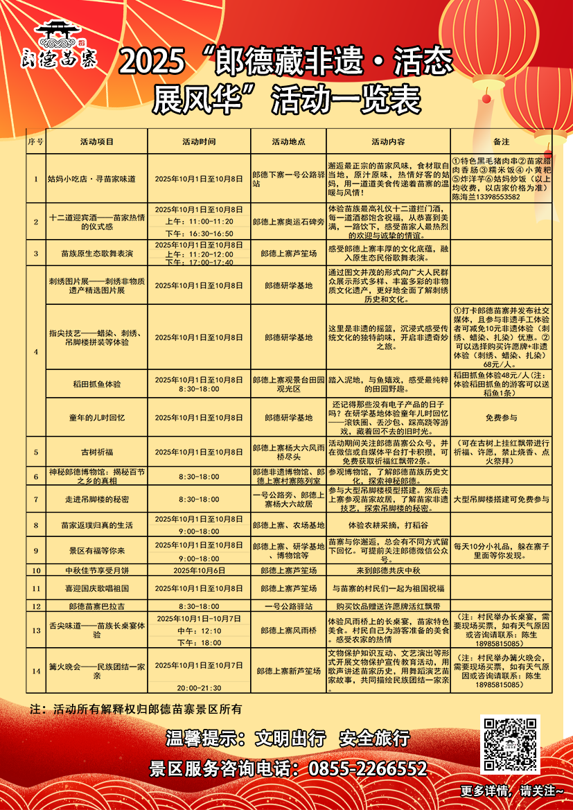 中秋遇国庆,与其在人潮里奔波,不如来郎德上寨赴一场苗家团圆宴,国庆的热闹更添滋味。“打卡文保郎德的故事”活动里,能听村民讲苗寨的千年历史;这里没有喧嚣的人潮,只有慢下来的时光,能让你好好感受苗文化的厚重与双节的温情。