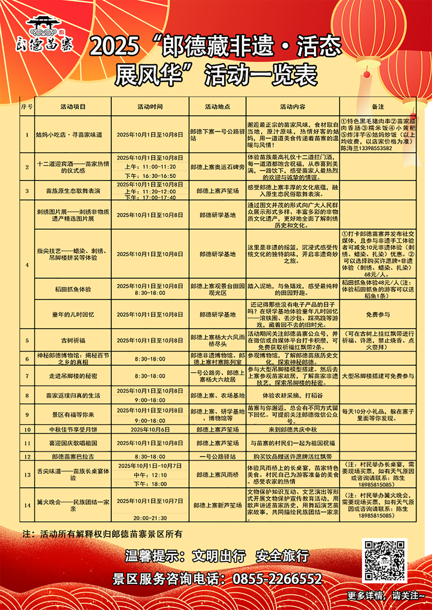 国庆假期将至,为了让广大游客度过一个欢乐祥和的假期,西江千户苗寨景区温馨提示如下: