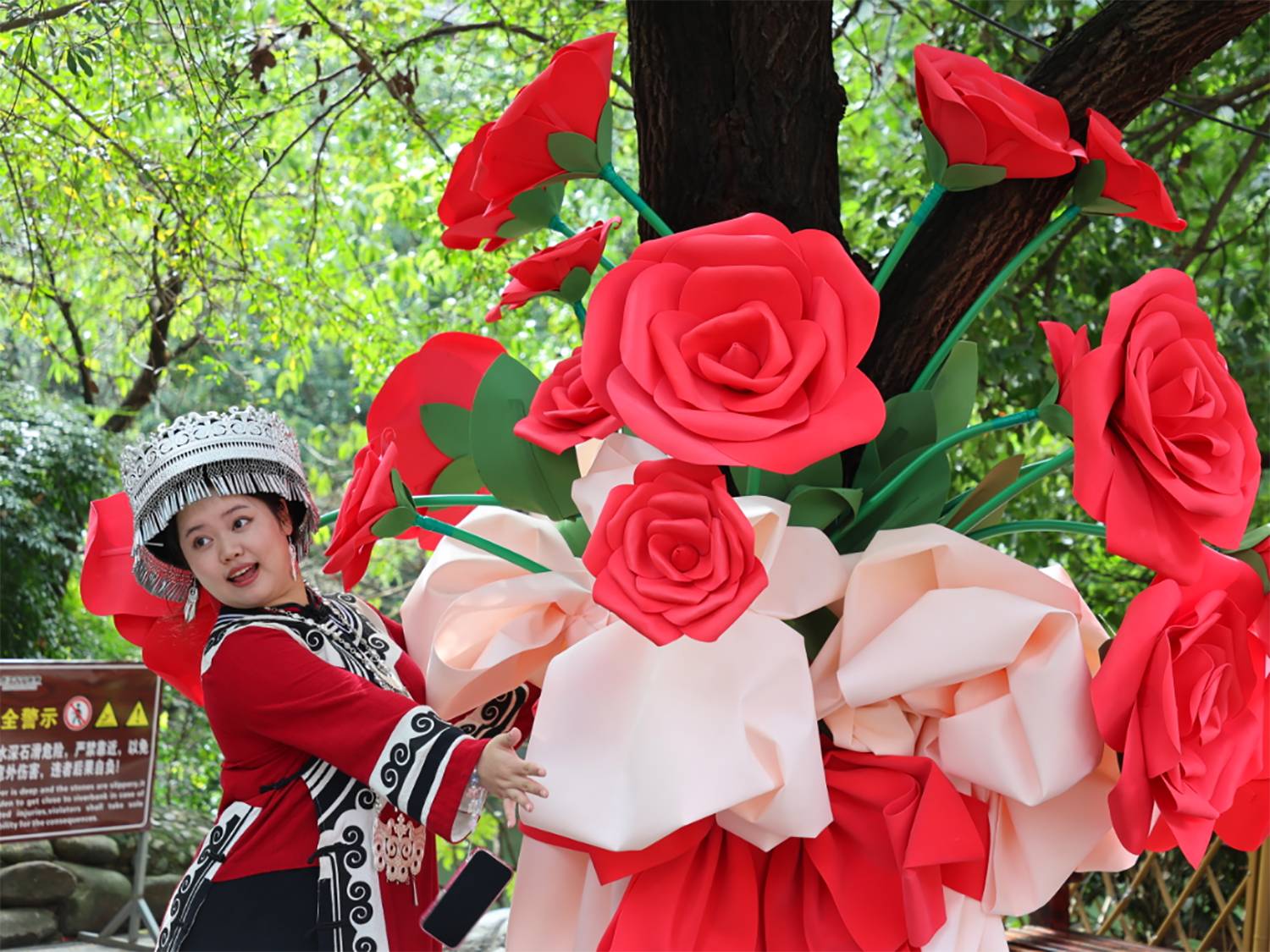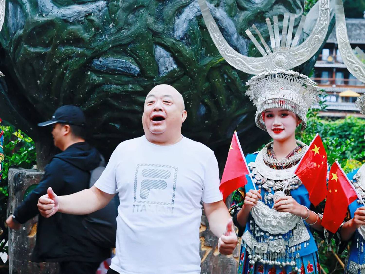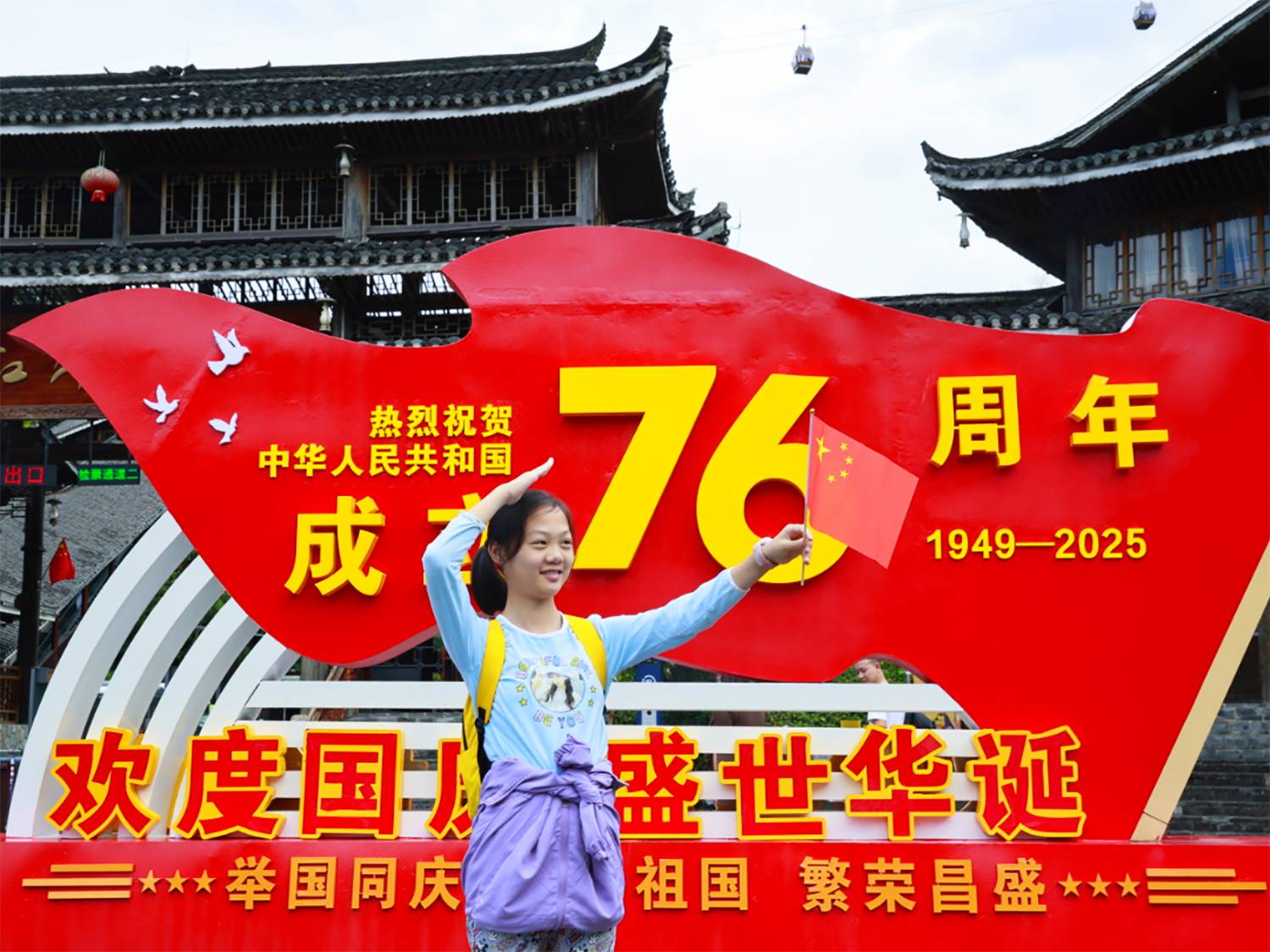 国庆节首日,西江千户苗寨的吊脚楼群被 “中国红” 装点得格外喜庆,景区喜迎国庆开门红,八方来客循着苗家歌声踏入这片千年秘境。游客漫步在白水河畔的石板路,身着银饰盛装的苗家姑娘笑意盈盈,十二道拦门酒的醇香与 “高山流水” 的敬酒欢歌交织,将苗家人的热忱洒满寨门。景区各处的国庆主题打卡点前,游客们纷纷合影,镜头里的吊脚楼群、民俗欢腾与游客快乐身影相映成趣,处处洋溢着家国同庆的浓厚氛围。