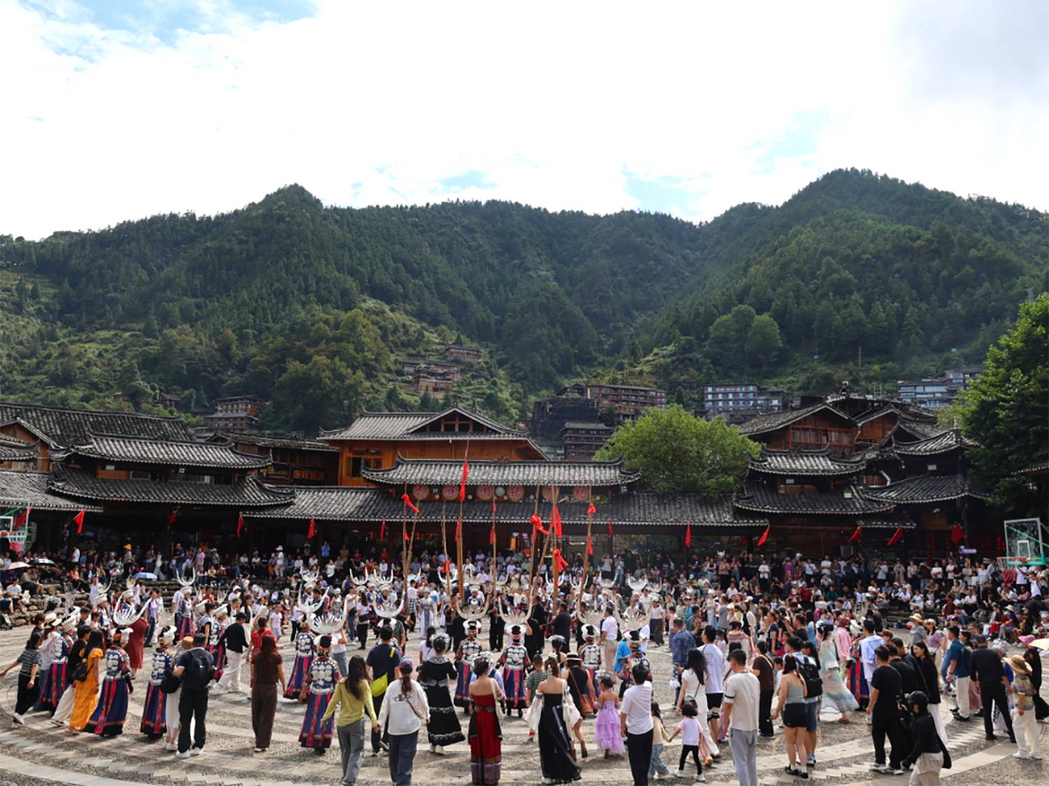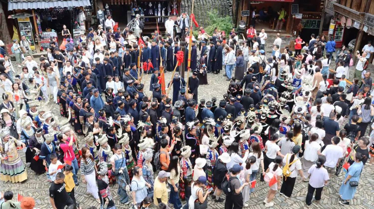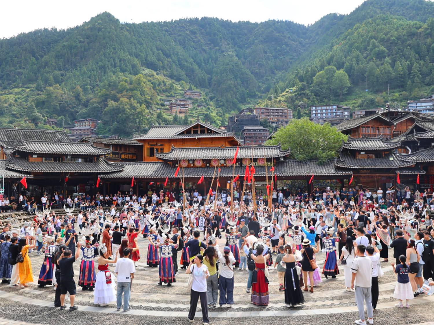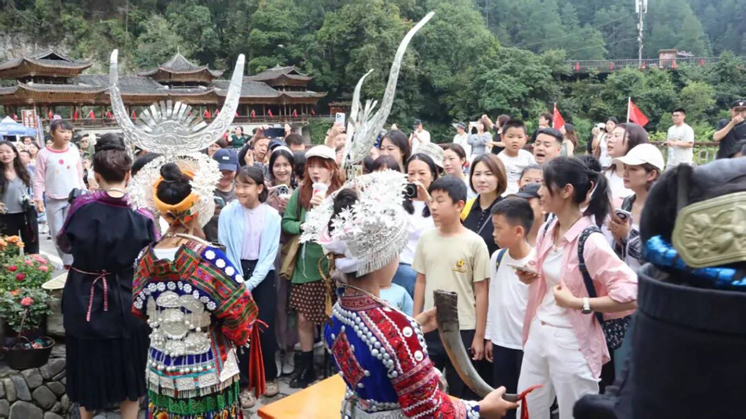 与此同时,国庆假期首日,郎德苗寨景区烟火气十足,吸引众多游客前来感受苗家传统生活气息……