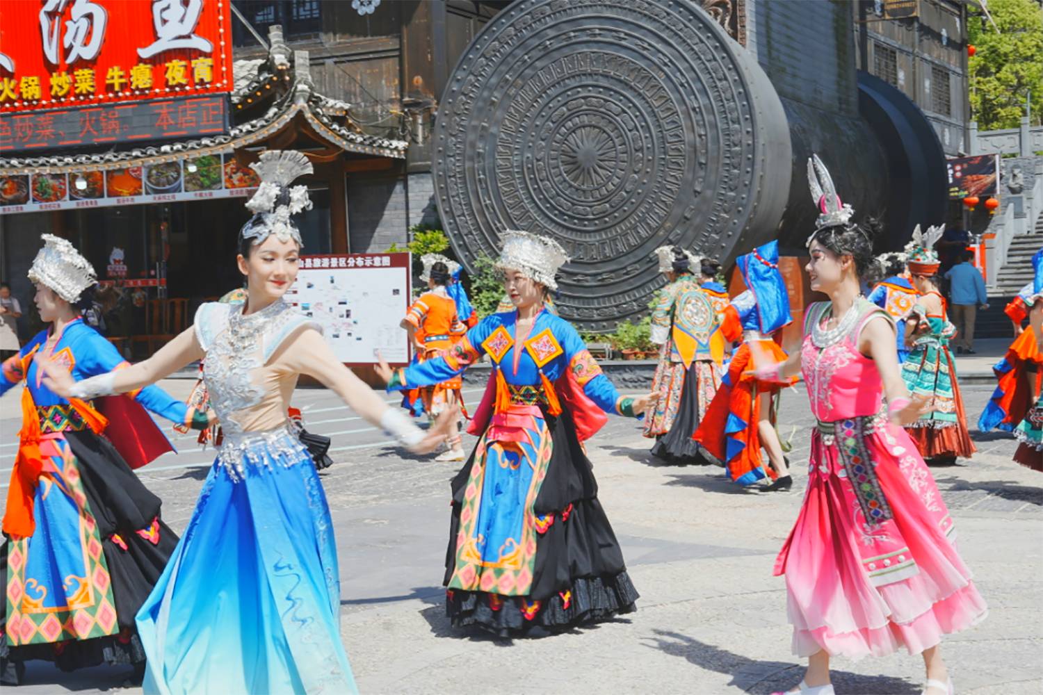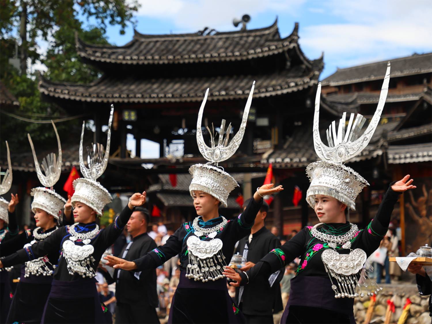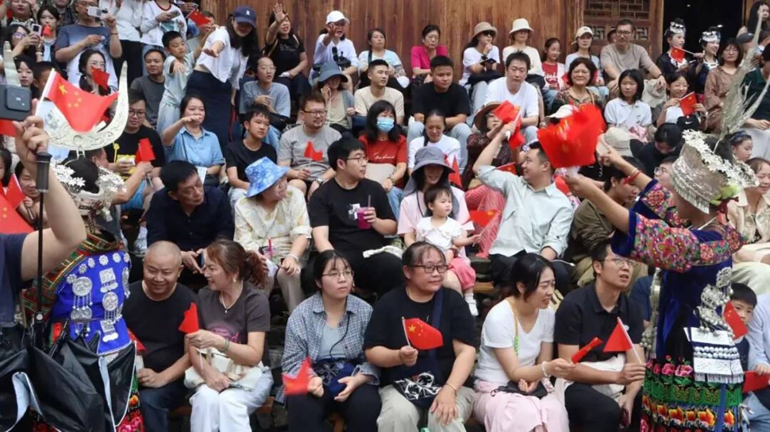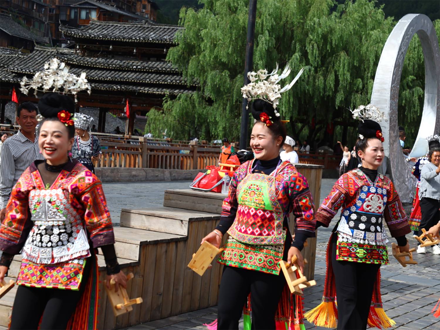 与此同时,国庆假期首日,郎德苗寨景区烟火气十足,吸引众多游客前来感受苗家传统生活气息……
