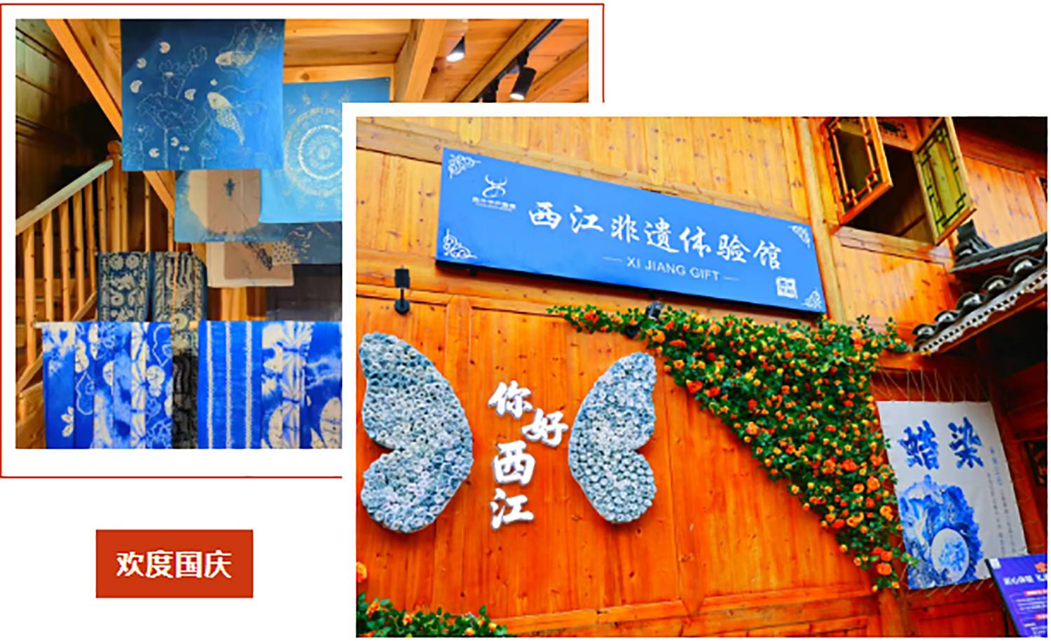 喜欢沉浸式体验的游客,可以在非遗体验馆亲手蜡染,在各式小众博物馆里了解苗绣、锻银饰,在家国同庆中感受苗家生活的热情欢腾。