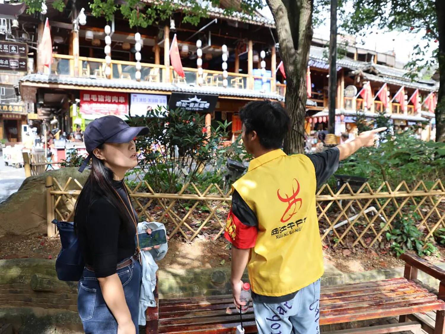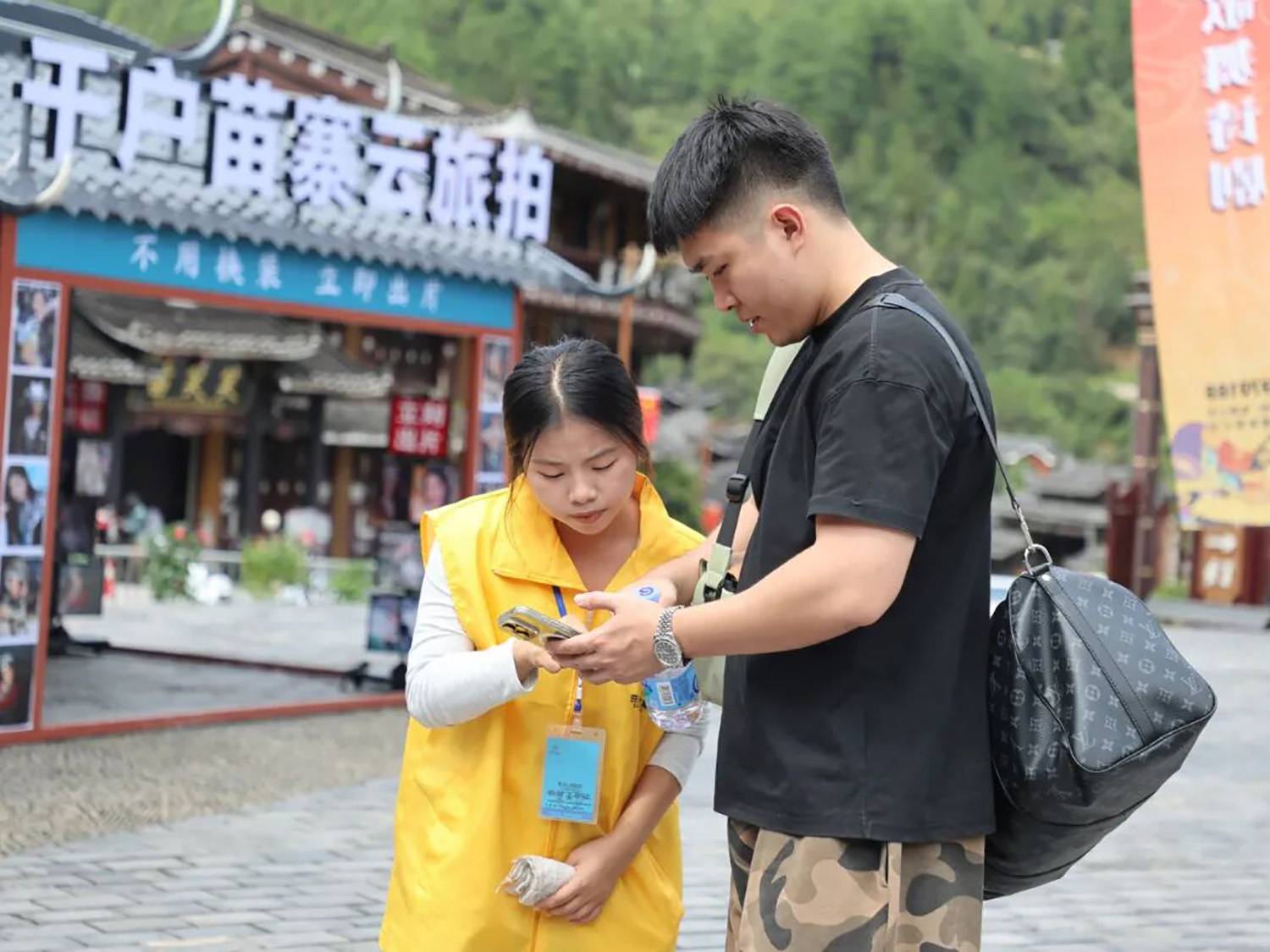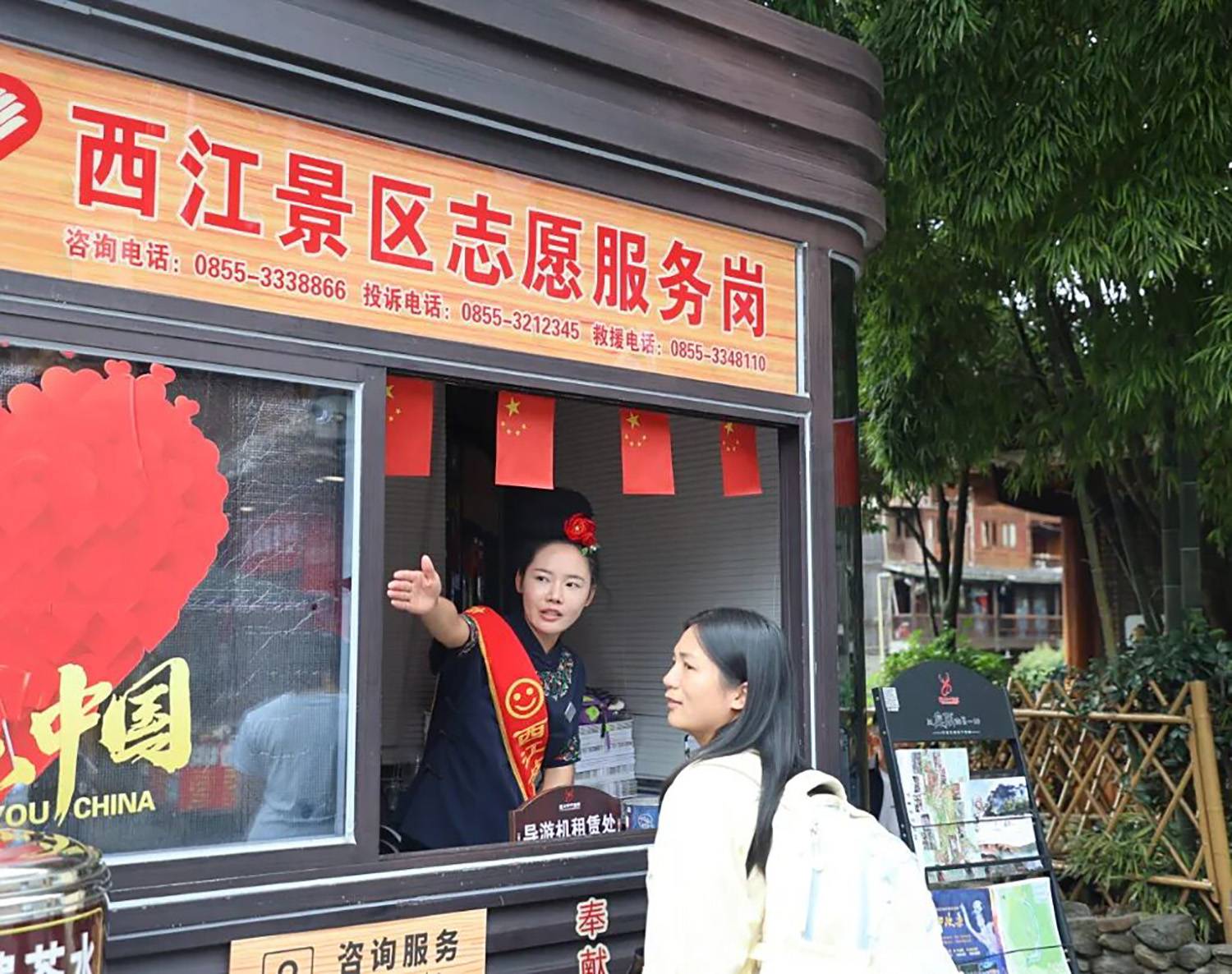 为让游客乘兴而来、尽兴而归,西江千户苗寨景区已备好全方位服务保障。在原有的志愿者服务岗亭基础上,增设了7个旅游咨询服务点在景区游览路线上,抽调公司70余名二线人员支援一线工作,同时招聘临时工作人员271人、志愿者29人。此外,更值得一提的是遍布景区各处的“黄马甲”引导员,从路线指引到应急帮助全程响应。景区还通过实名制分时购票系统精准调控客流,这个国庆中秋双节假期,在苗寨的山水与人文中,安心与欢乐同样丰盈。