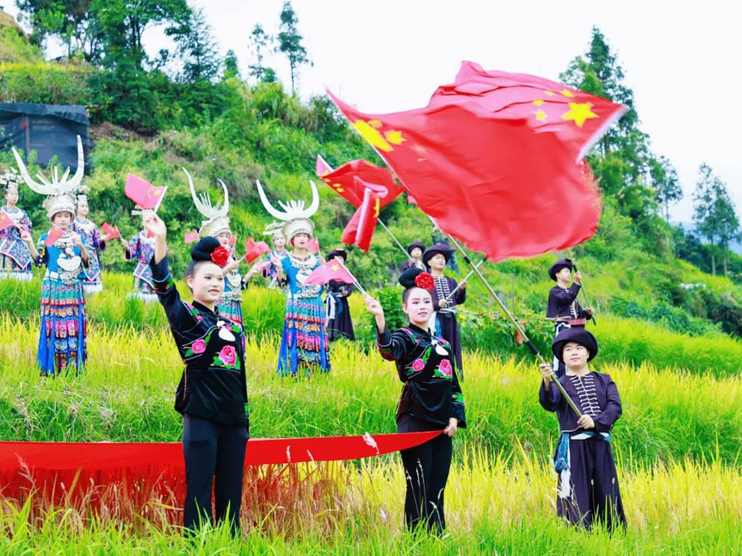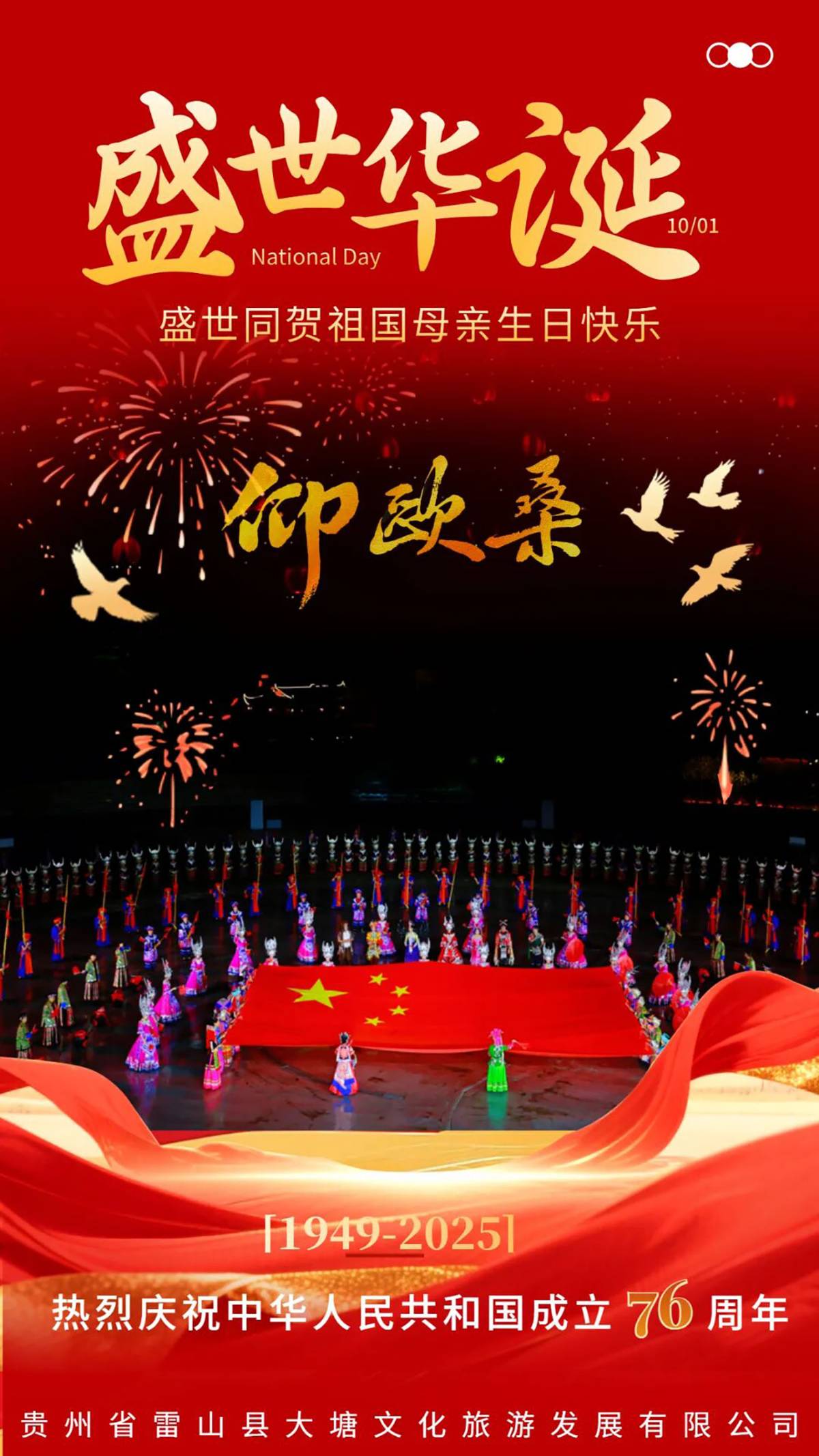 苗族竹竿舞将敲响欢庆节拍,邀您共踏鼓点;田园观光区治愈系风光,绘就诗意画卷;大型实景苗族歌舞诗剧《仰欧桑》也将璀璨演绎千年苗家传说。更有 “歌唱祖国” 活动,待万名游客与苗寨儿女为祖国唱赞歌,齐颂祖国山河锦绣、繁荣昌盛!
