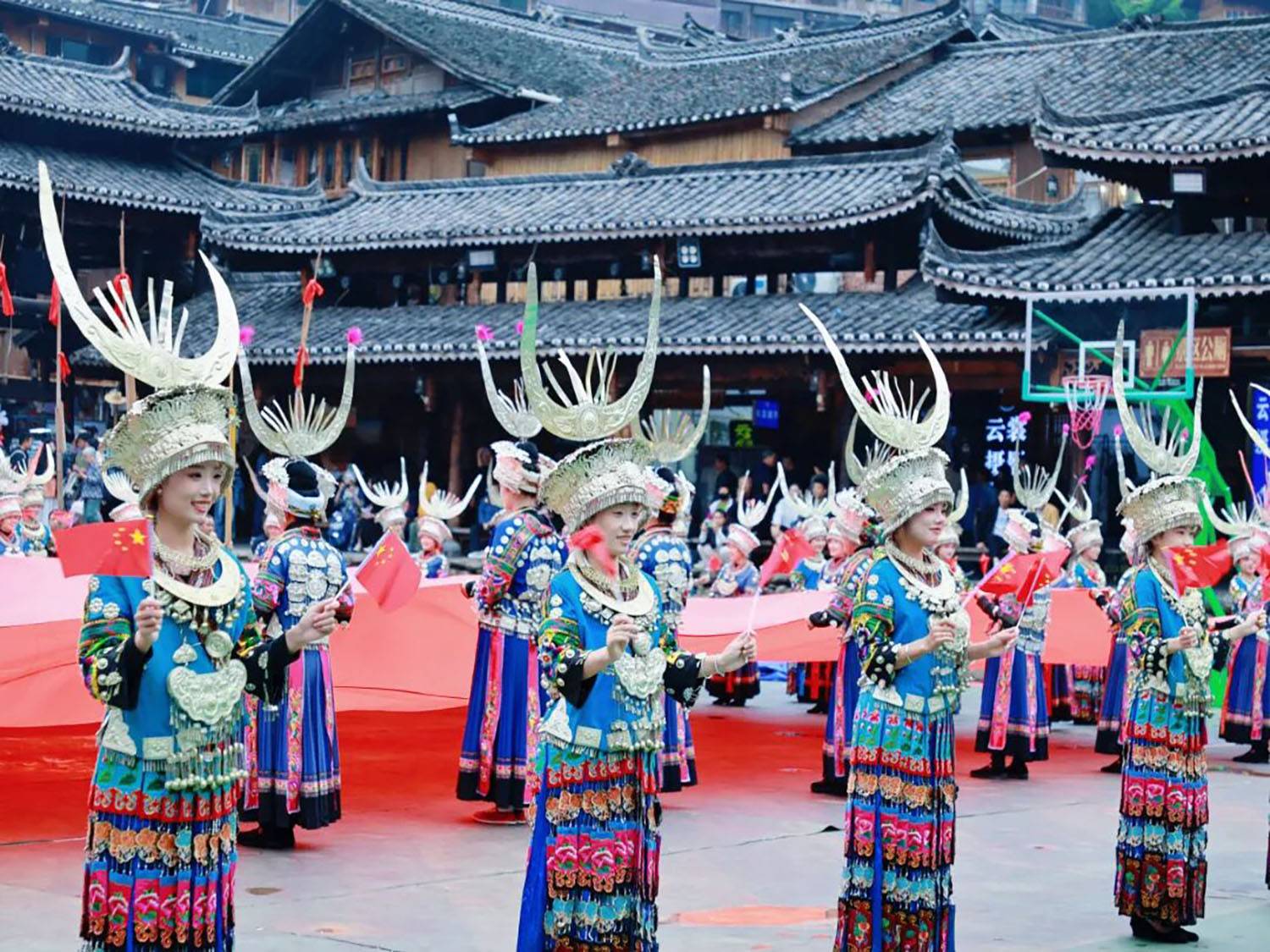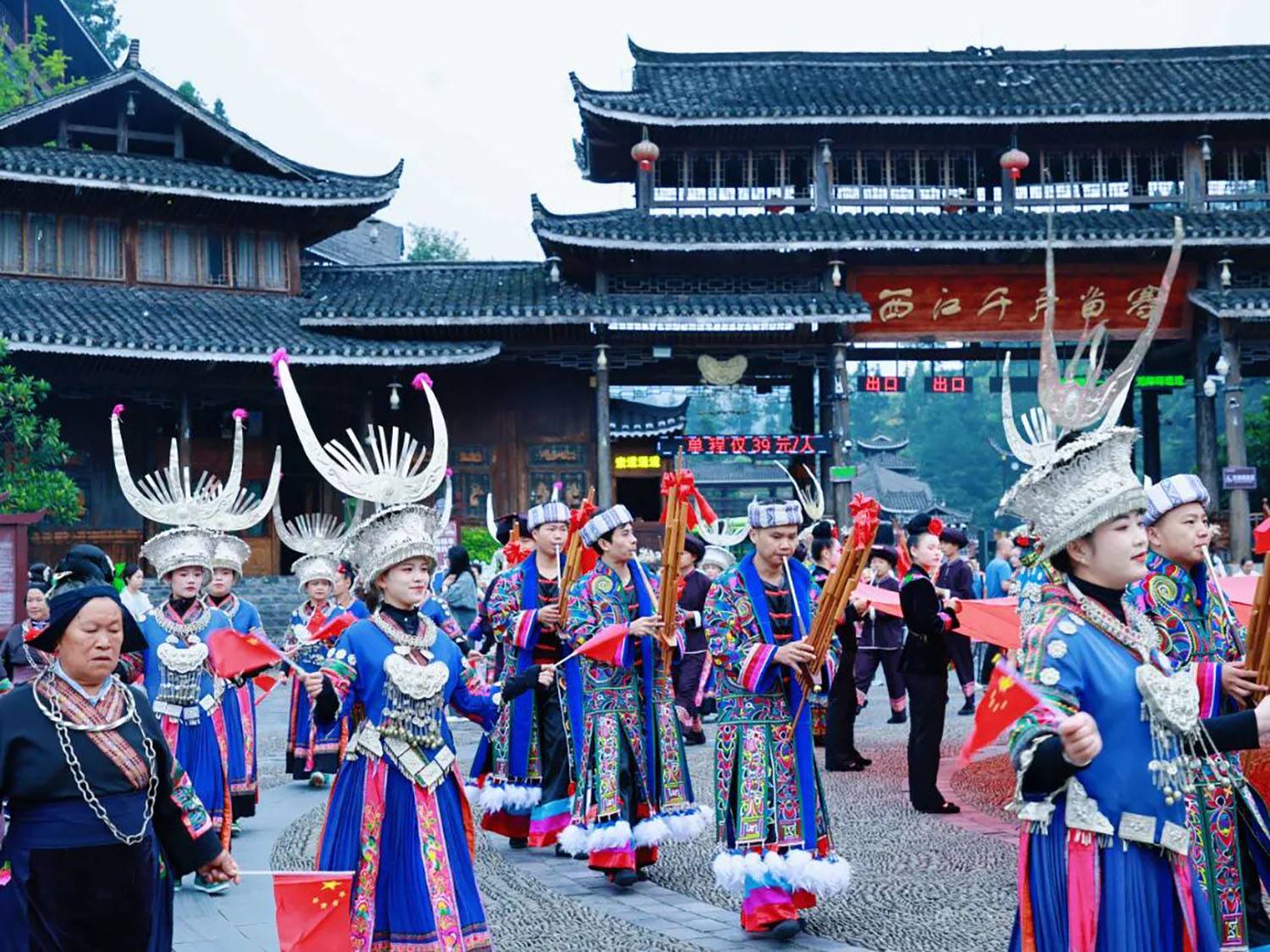 这个国庆,西江千户苗寨景区以中国红与苗家韵,