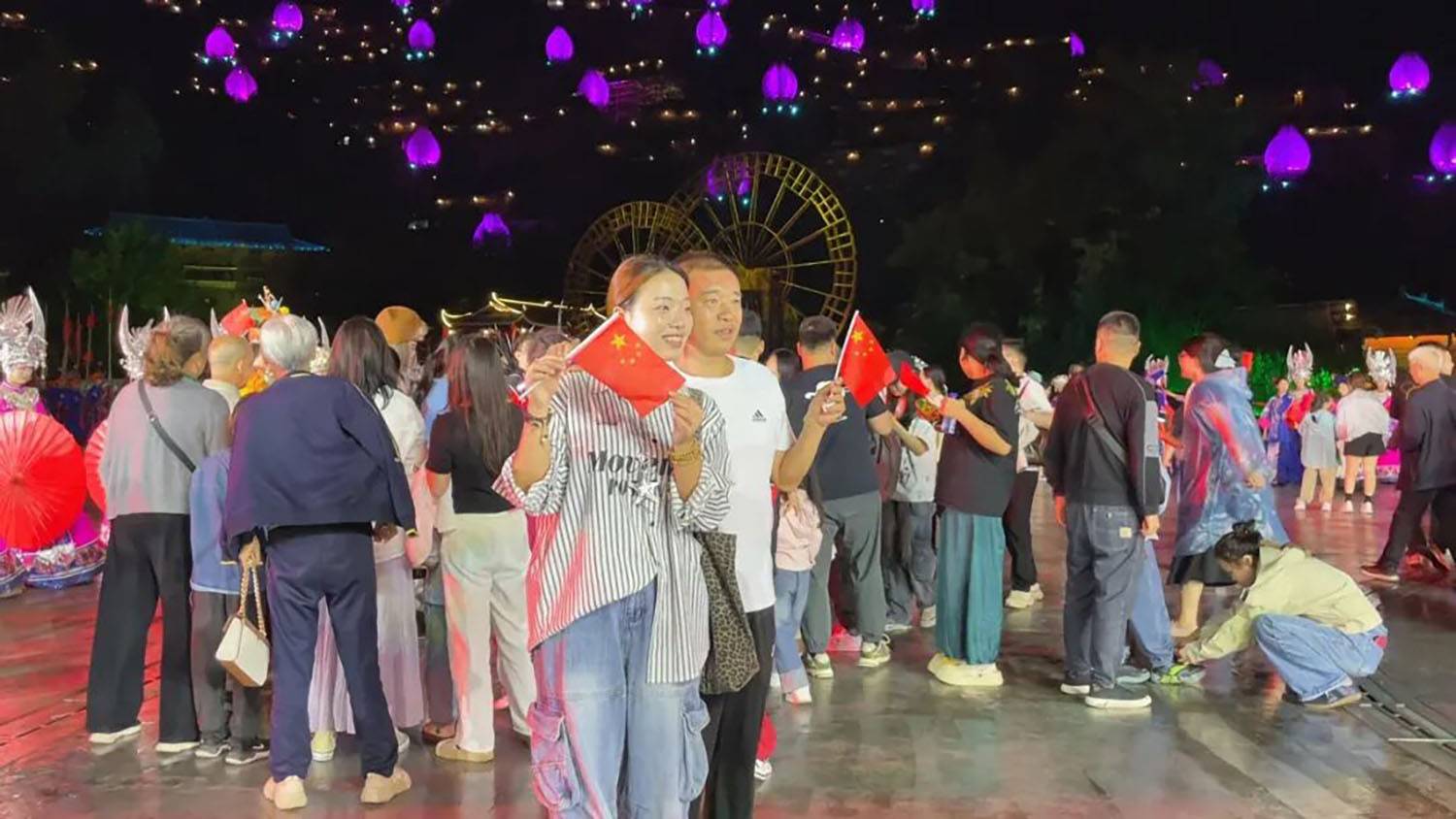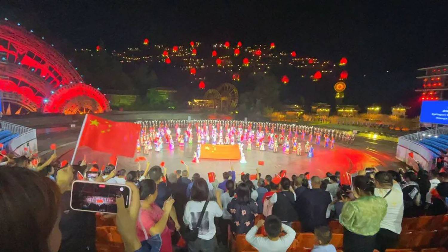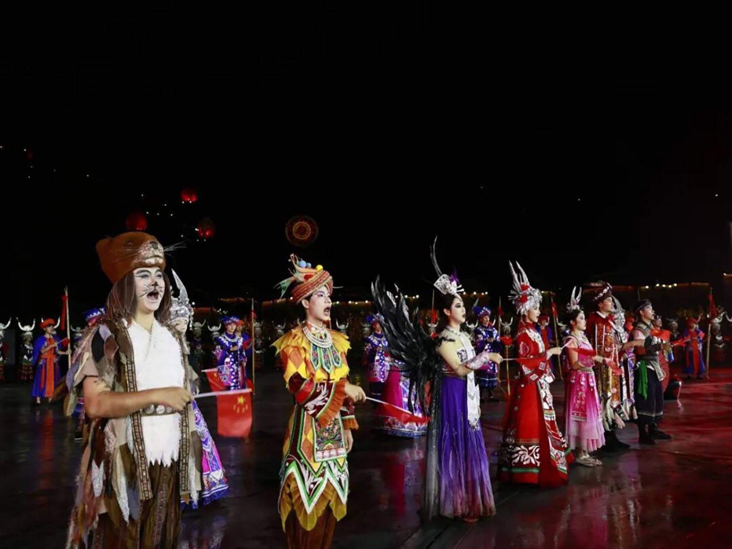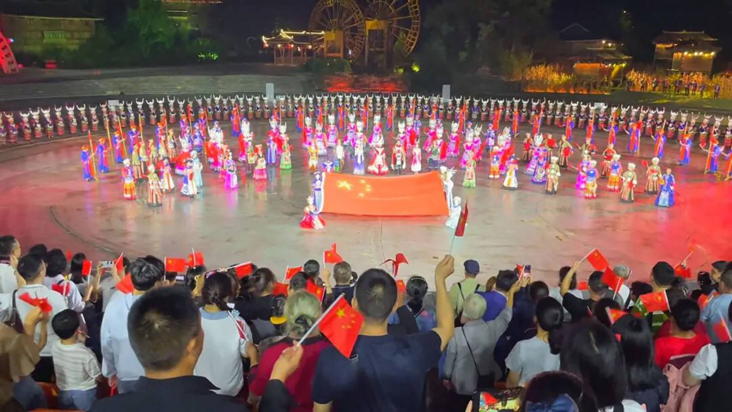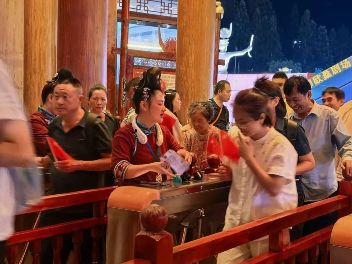 值得关注的是,演出特别融入国庆主题元素,在尾声环节组织全体演职人员与观众共同高唱《歌唱祖国》,手拿中国旗汇成红色海洋,将节日氛围与家国情怀推向高潮,实现了民族文化传承与爱国主义教育的有机结合,获得游客广泛好评。