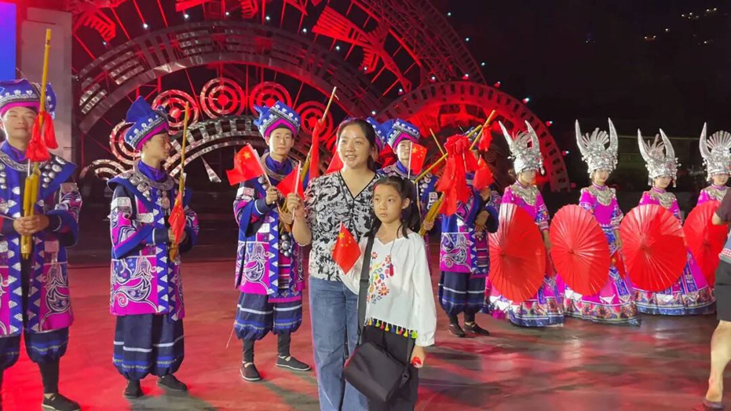 本次国庆演出,《仰欧桑》依托多样化互动形式,实现了观众从“被动观看”到“主动参与”的沉浸式体验升级。活动不仅让苗族优秀传统文化得到鲜活传播,更将节日的爱国情怀融入其中,为各地游客呈现了一场兼具文化内涵与节日氛围的视听盛宴。