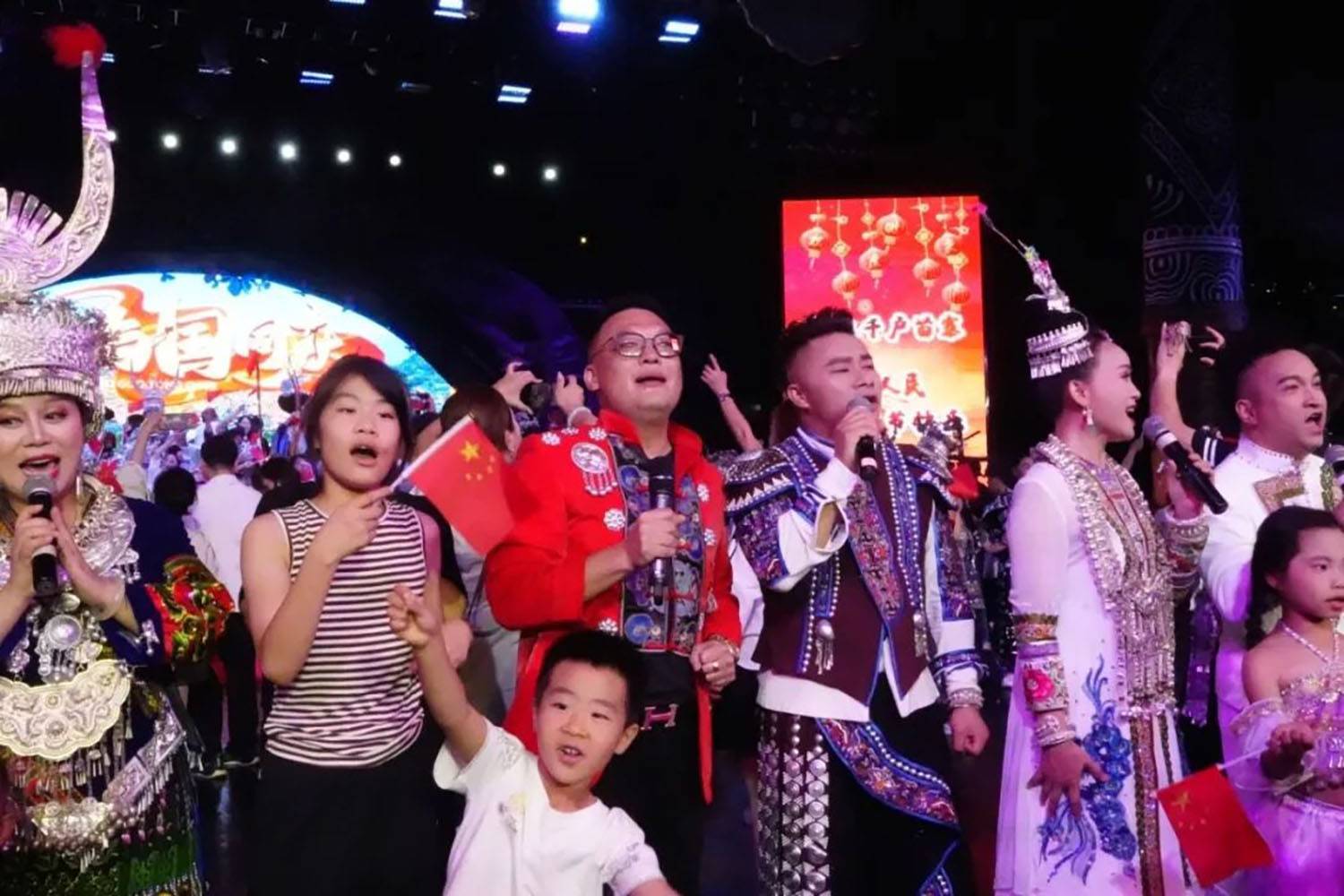 演出临近尾声,舞台上巨幅五星红旗缓缓展开。《歌唱祖国》的激昂旋律一经响起,现场观众便自发起立,走向舞台与演员手挽手、肩并肩共唱。来自湖南的游客李先生感慨道:“在苗寨和五湖四海的同胞同唱爱国歌曲,既沉浸式感受到国庆的爱国热忱,又体会到民族文化的交融之美,这样的体验格外温暖人心。”