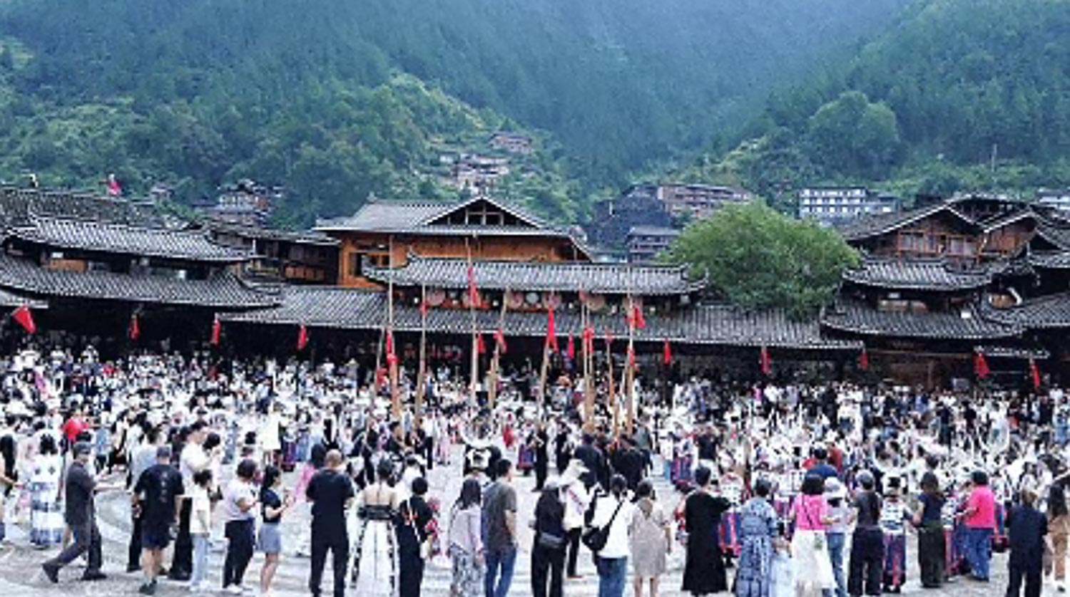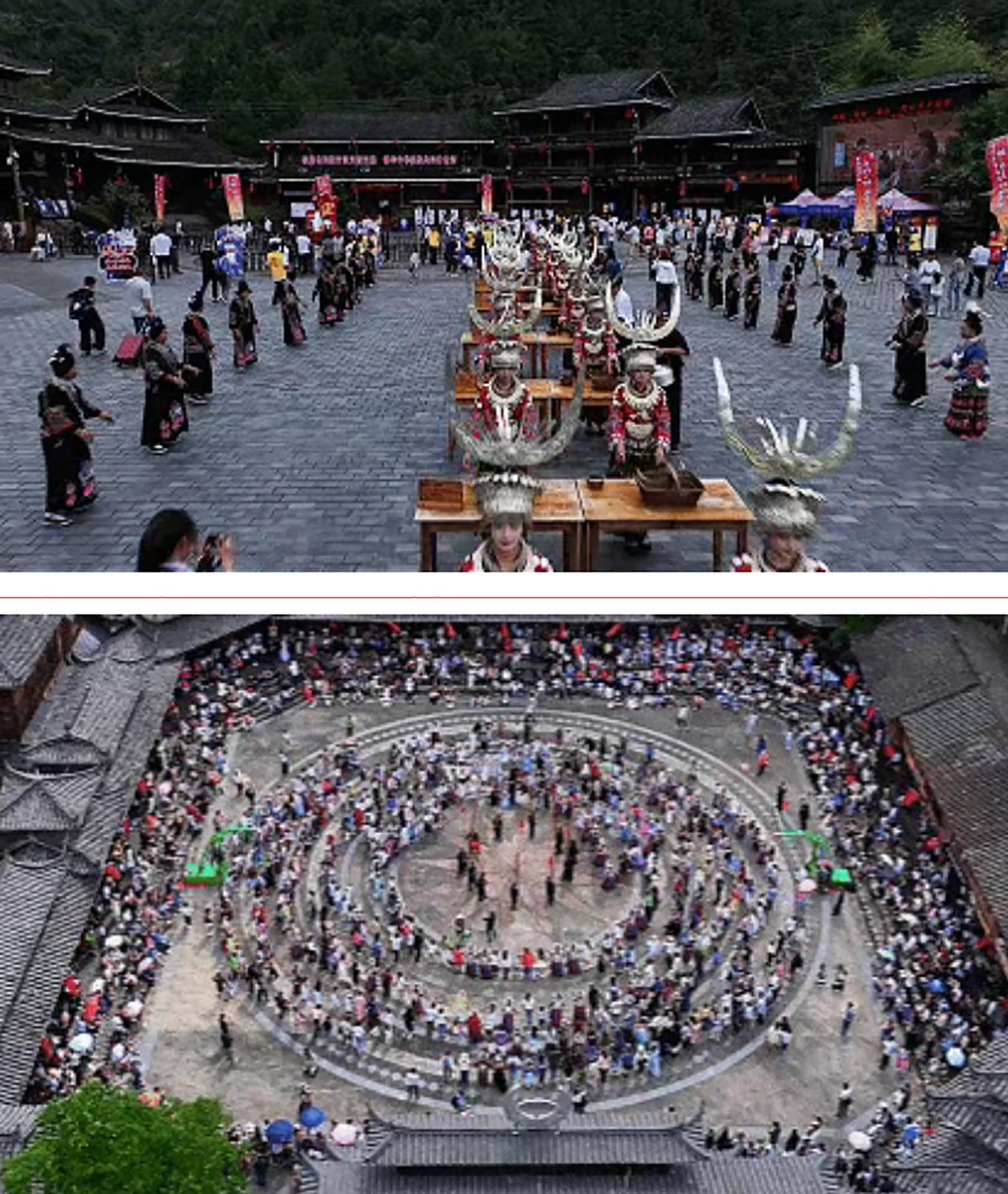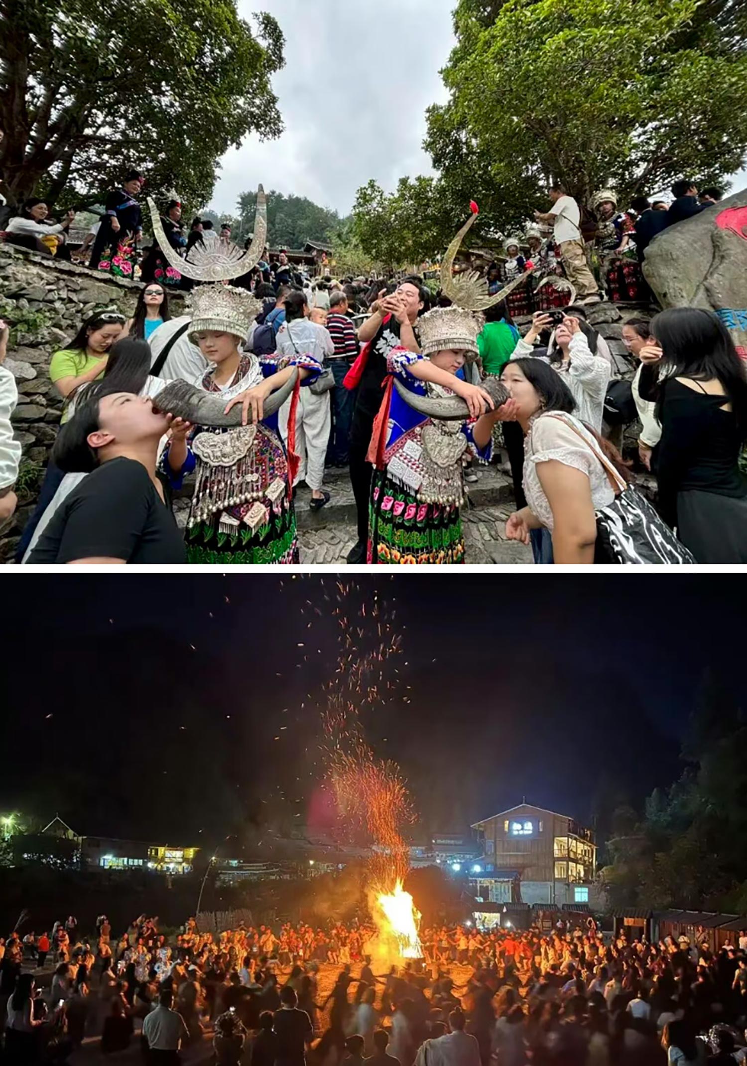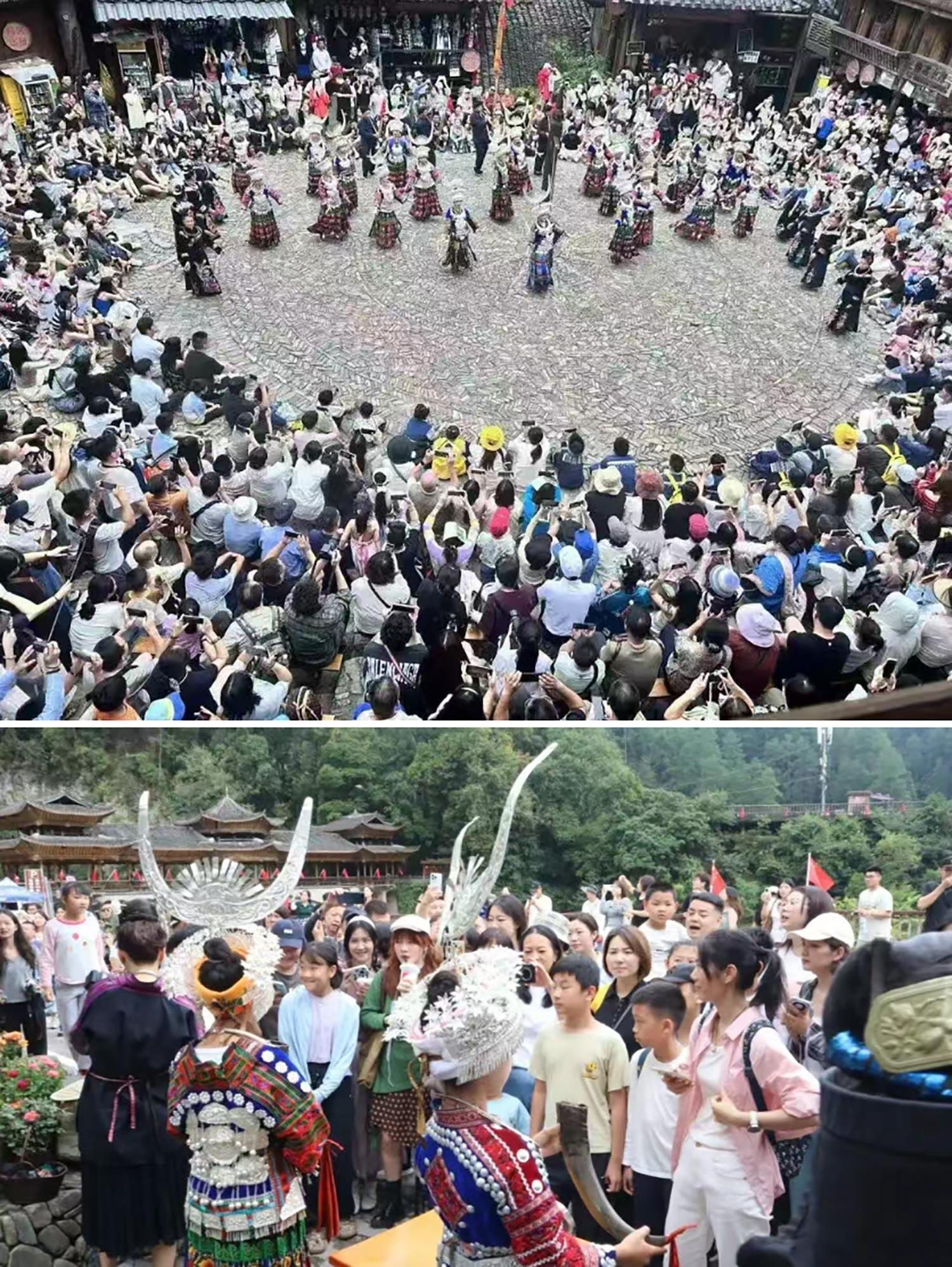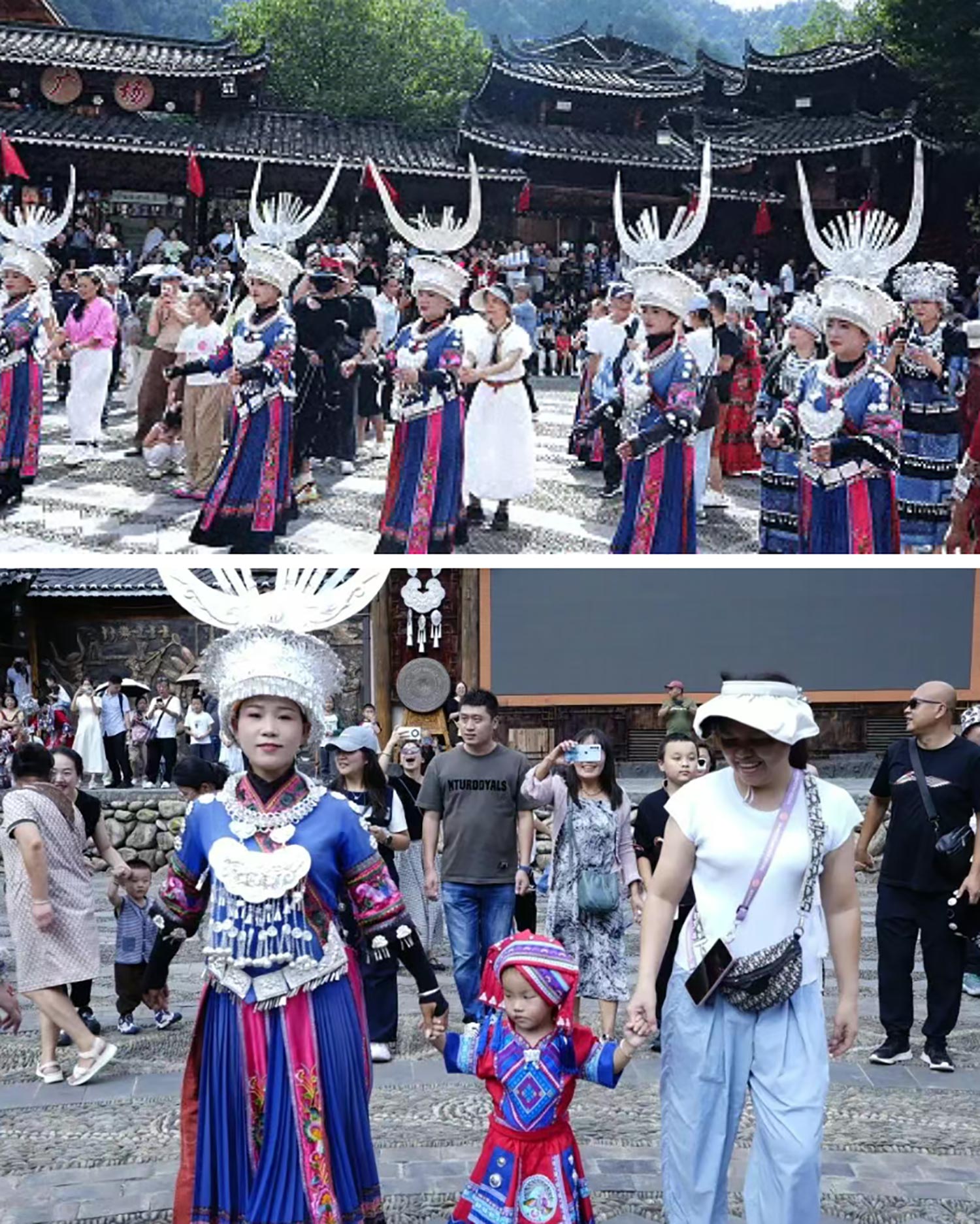 与此同时,郎德苗寨景区处处涌动着火热人气。