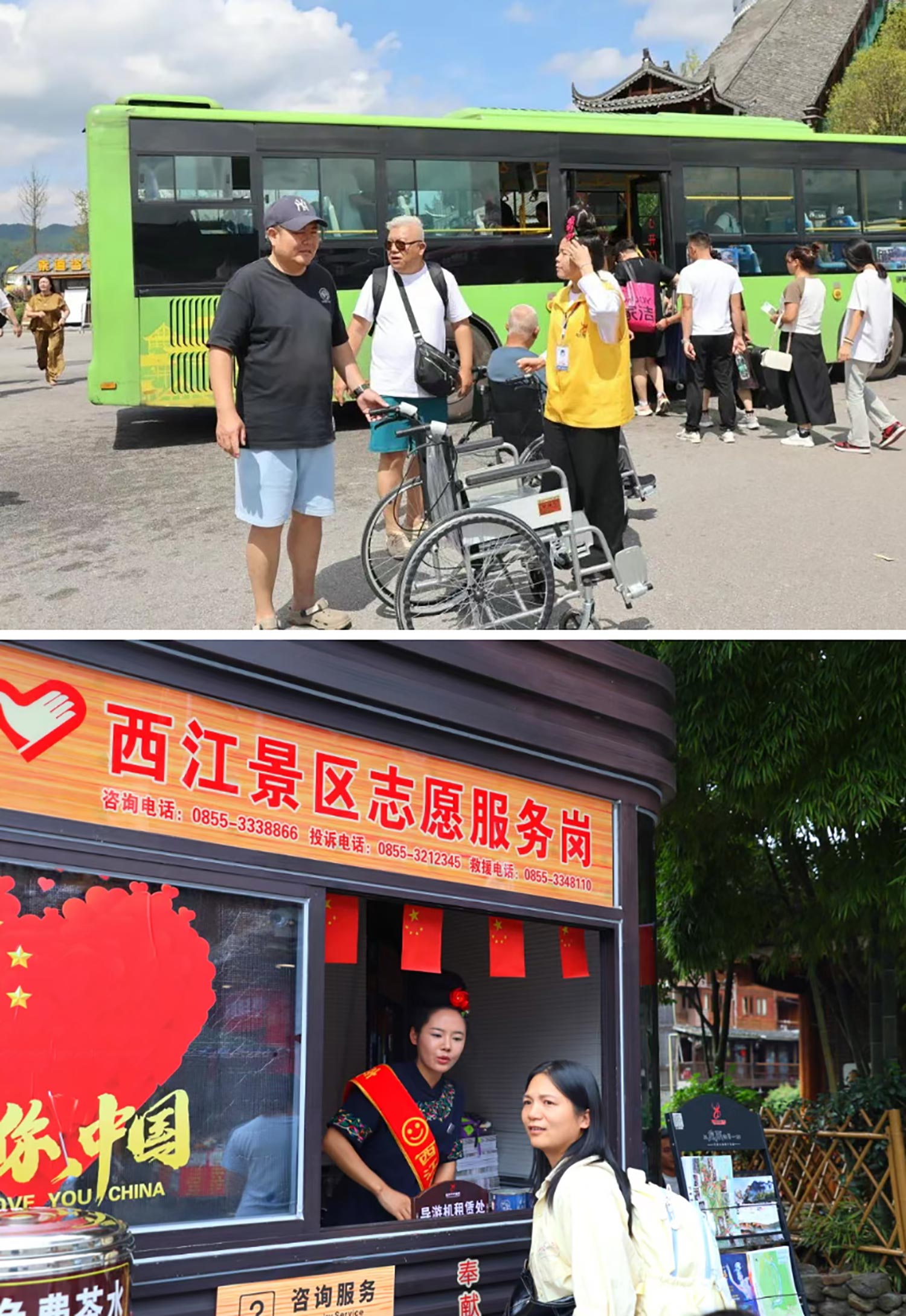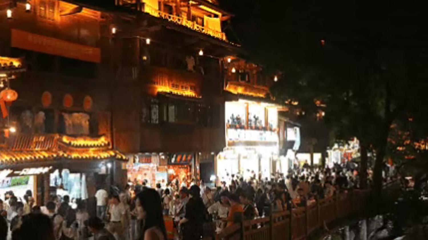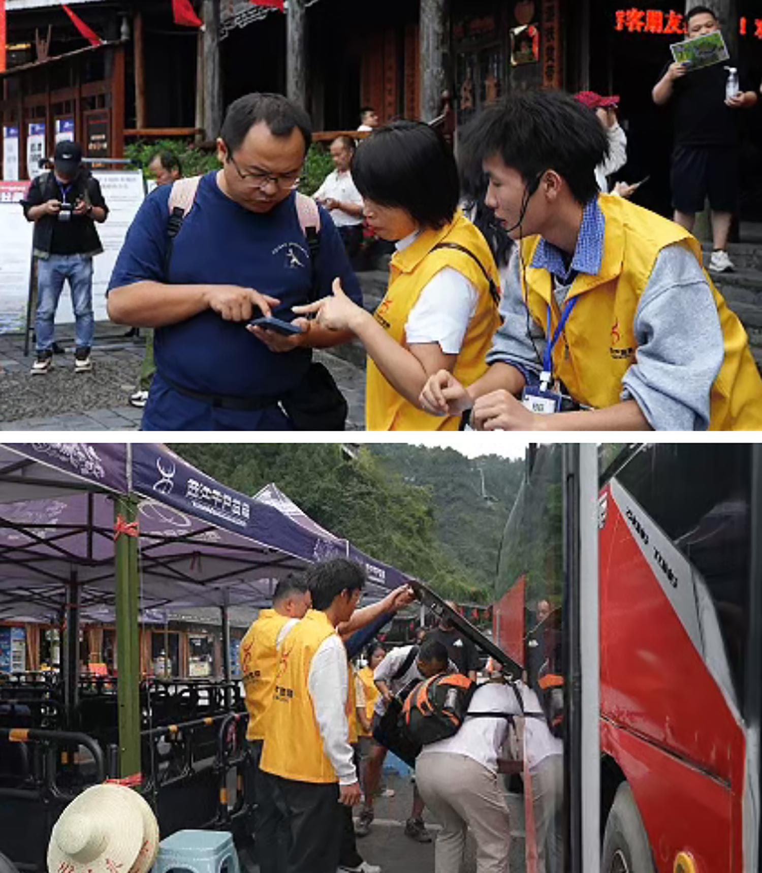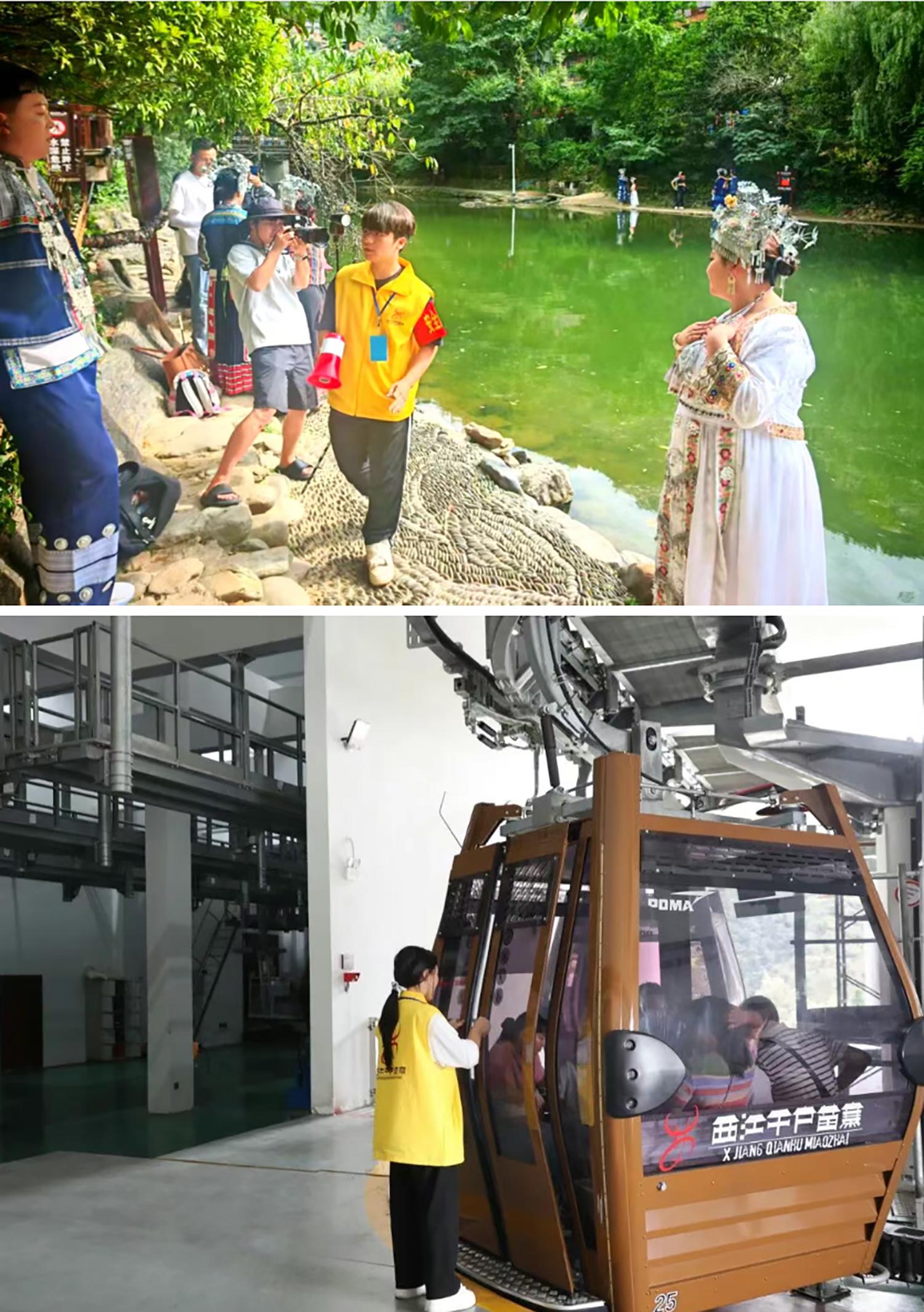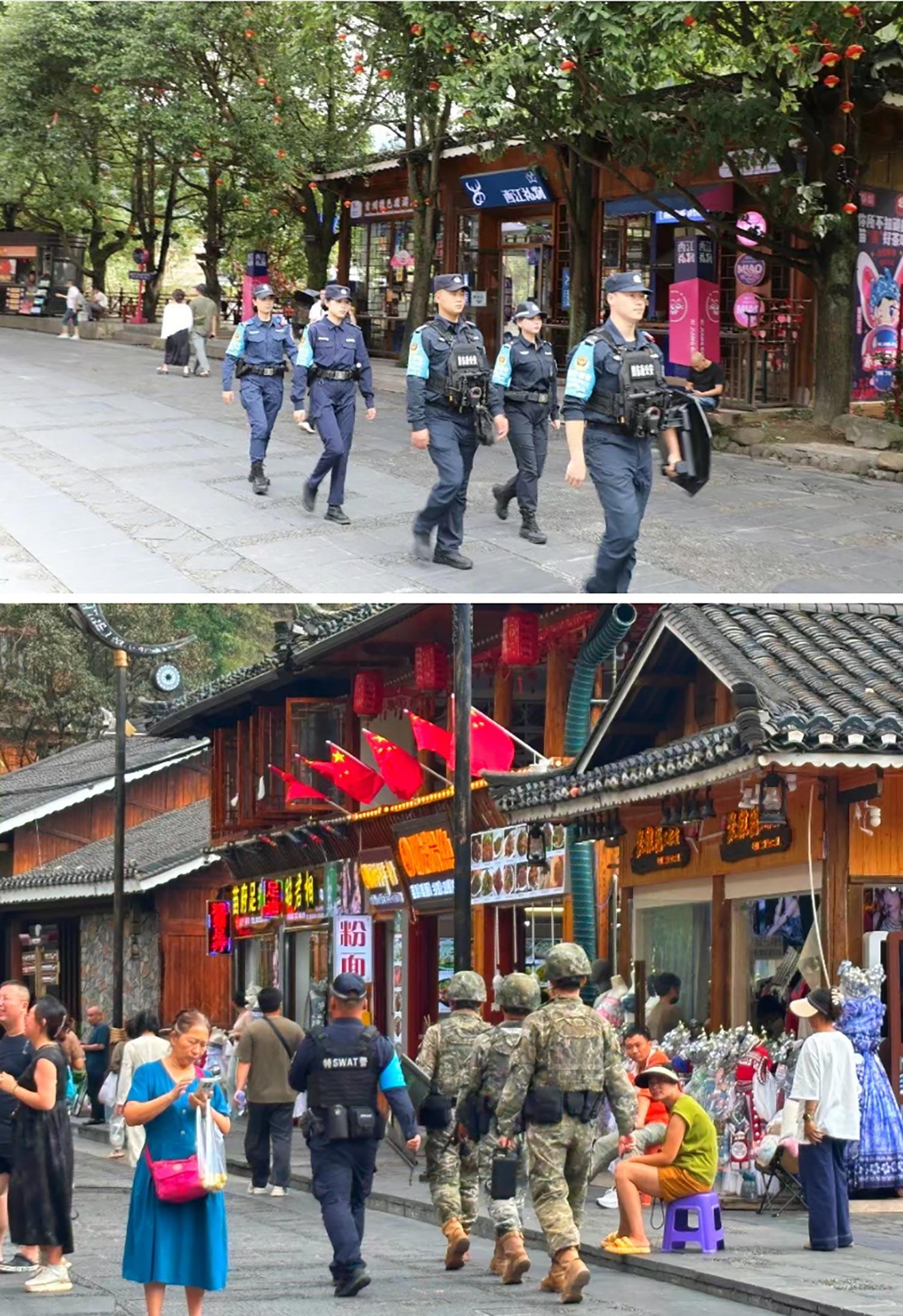面对涌动的客流,景区的保障服务始终在线。“黄马甲”引导员穿梭在人群中,以积极主动的行为、热情的态度,从白天到晚上守护游客的安心之旅。巡逻人员沿着步道来回走,提醒游客不要靠近涉水区域,看好随身物品,文明旅游。正是这些细致的守护,让满是人流的苗寨,始终透着踏实与顺畅。